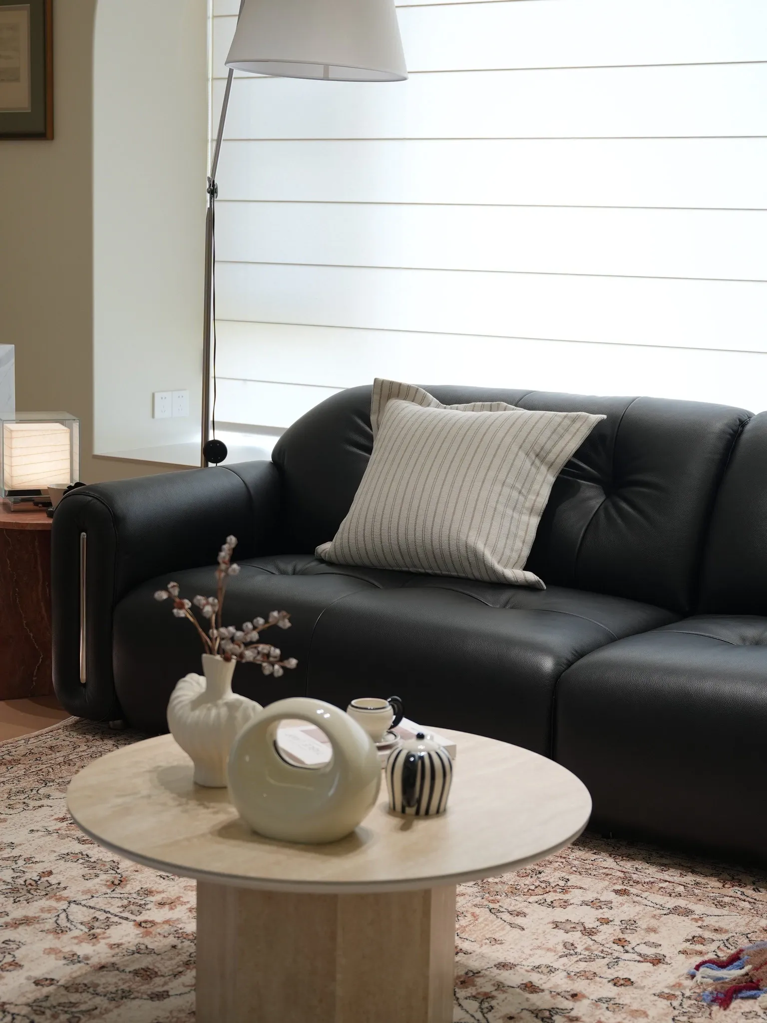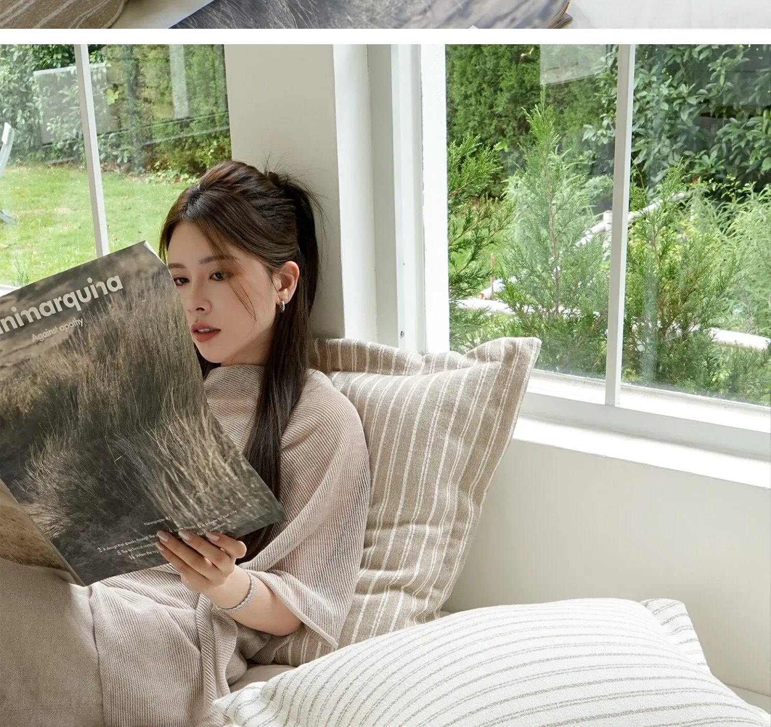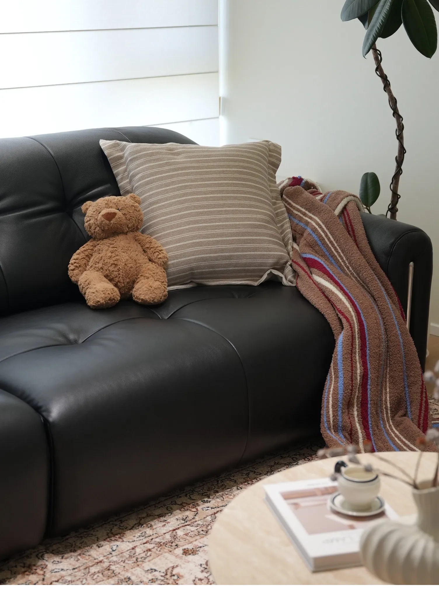 【フレンチストライプ大クッション | ミルクコーヒー】