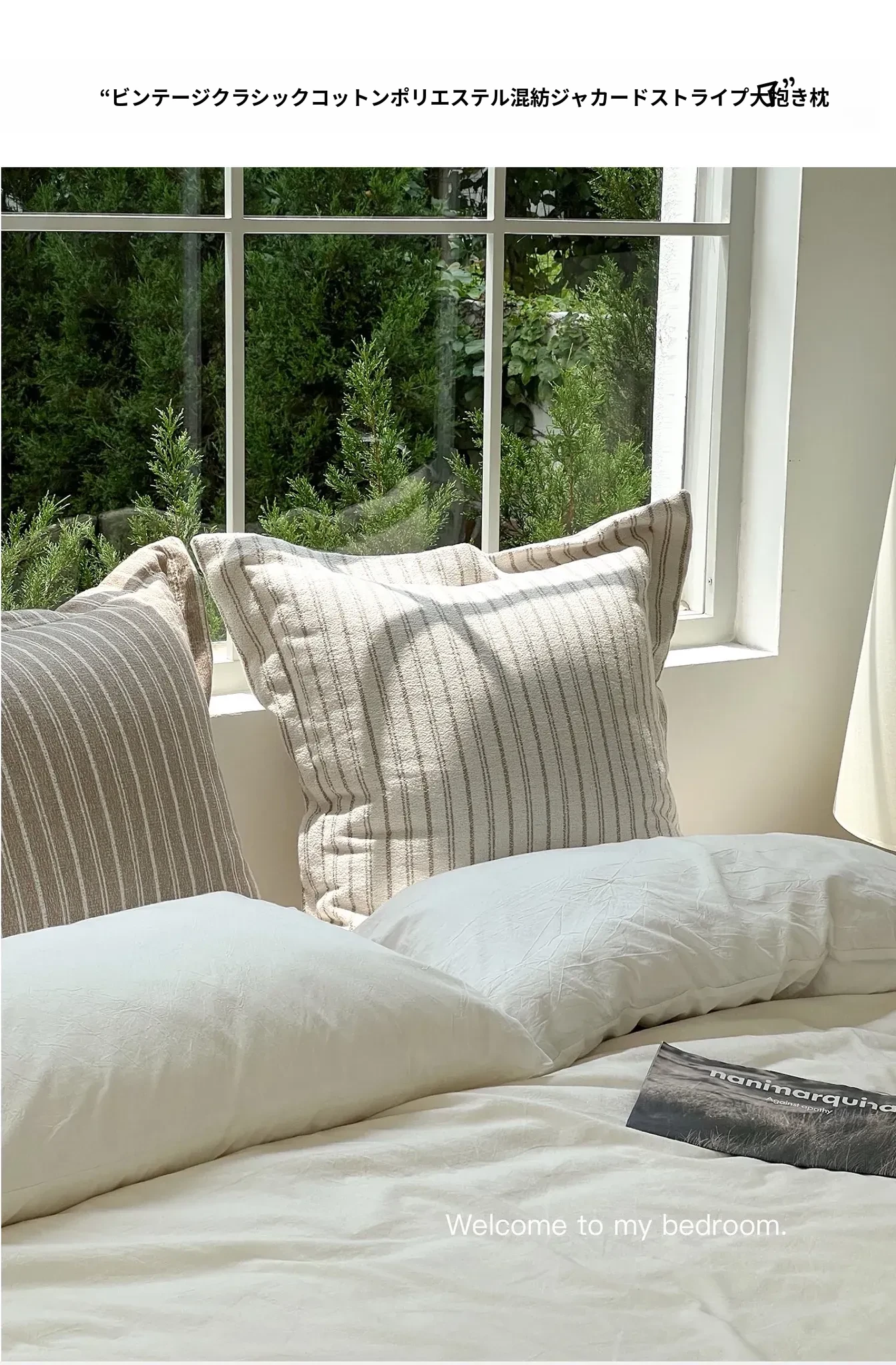 【フレンチストライプ大クッション | クリームホワイト】