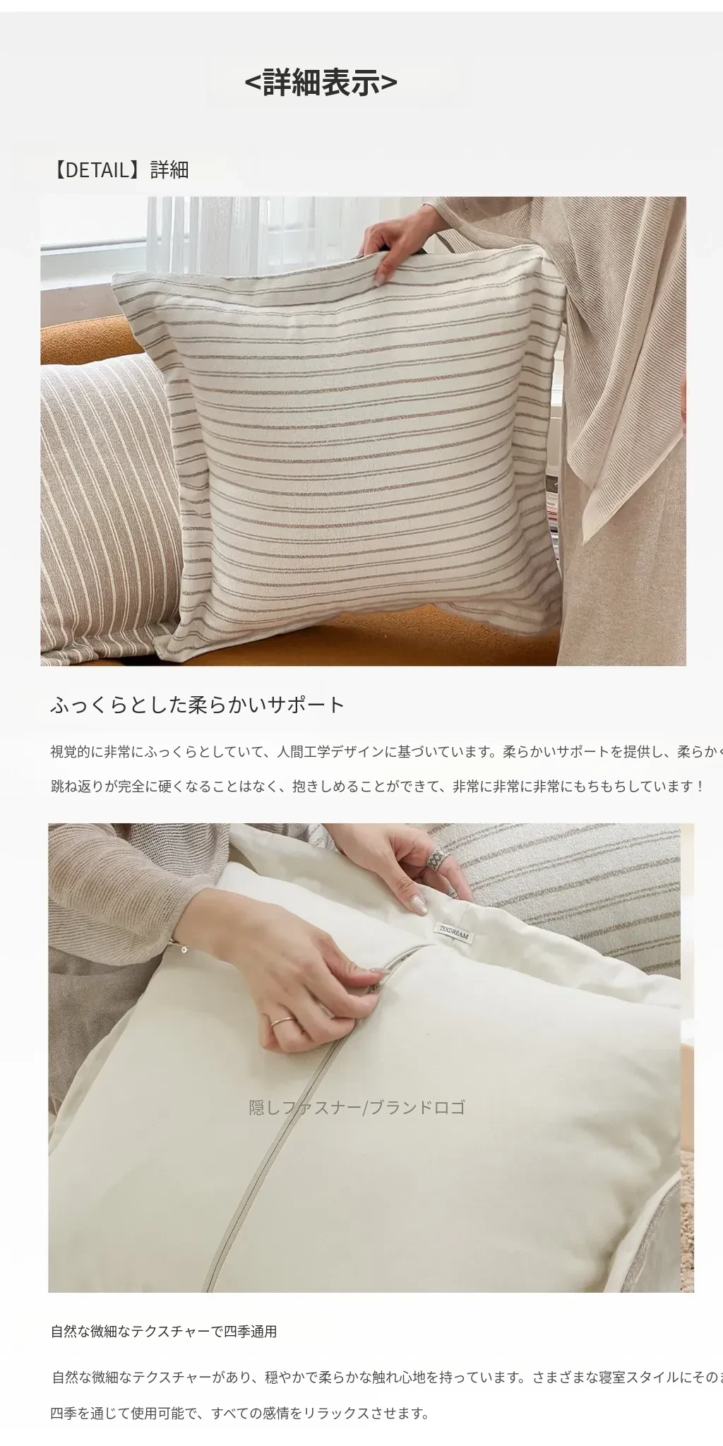 65*65cm【カバー+フェザーシルク枕芯】