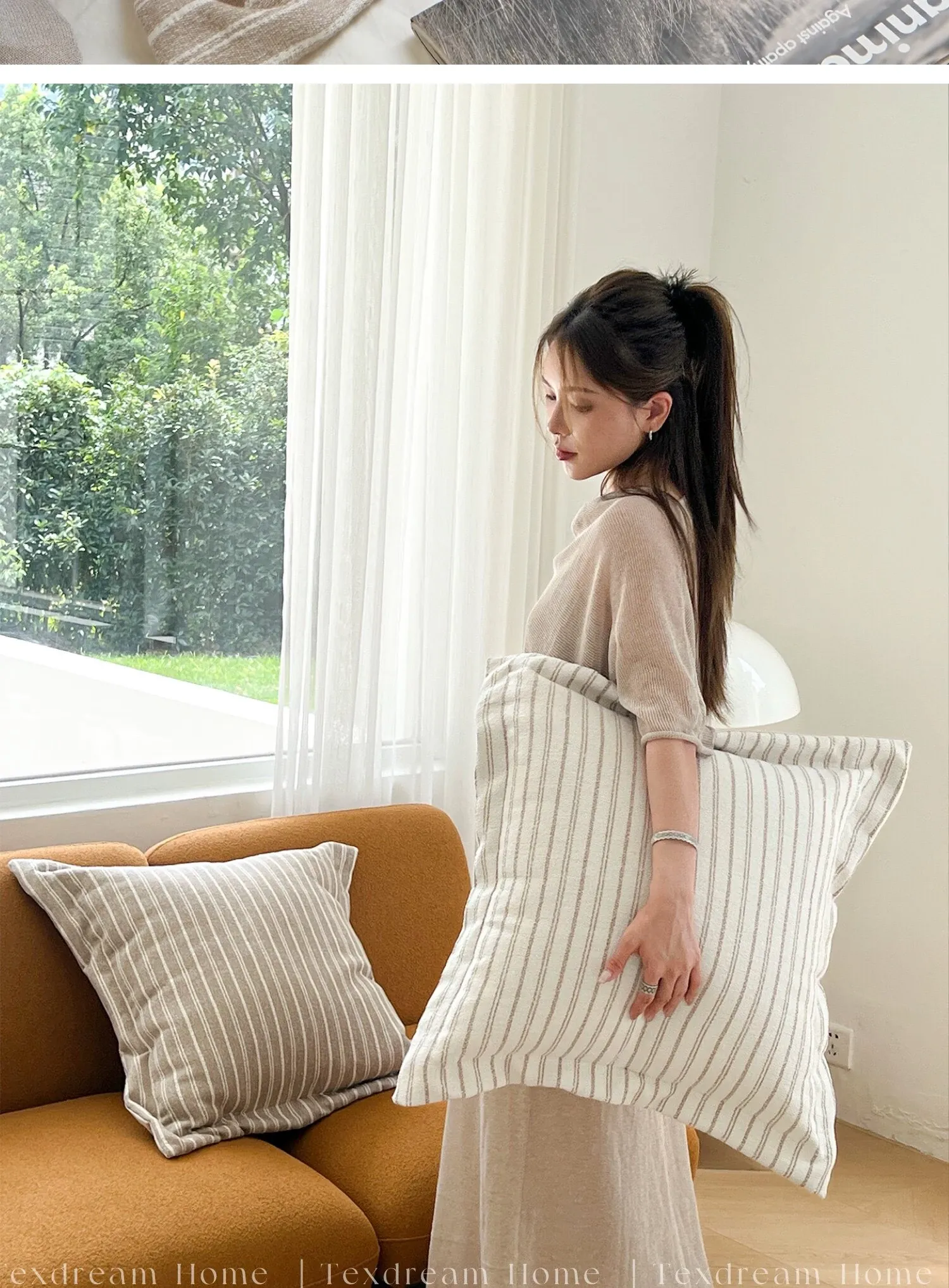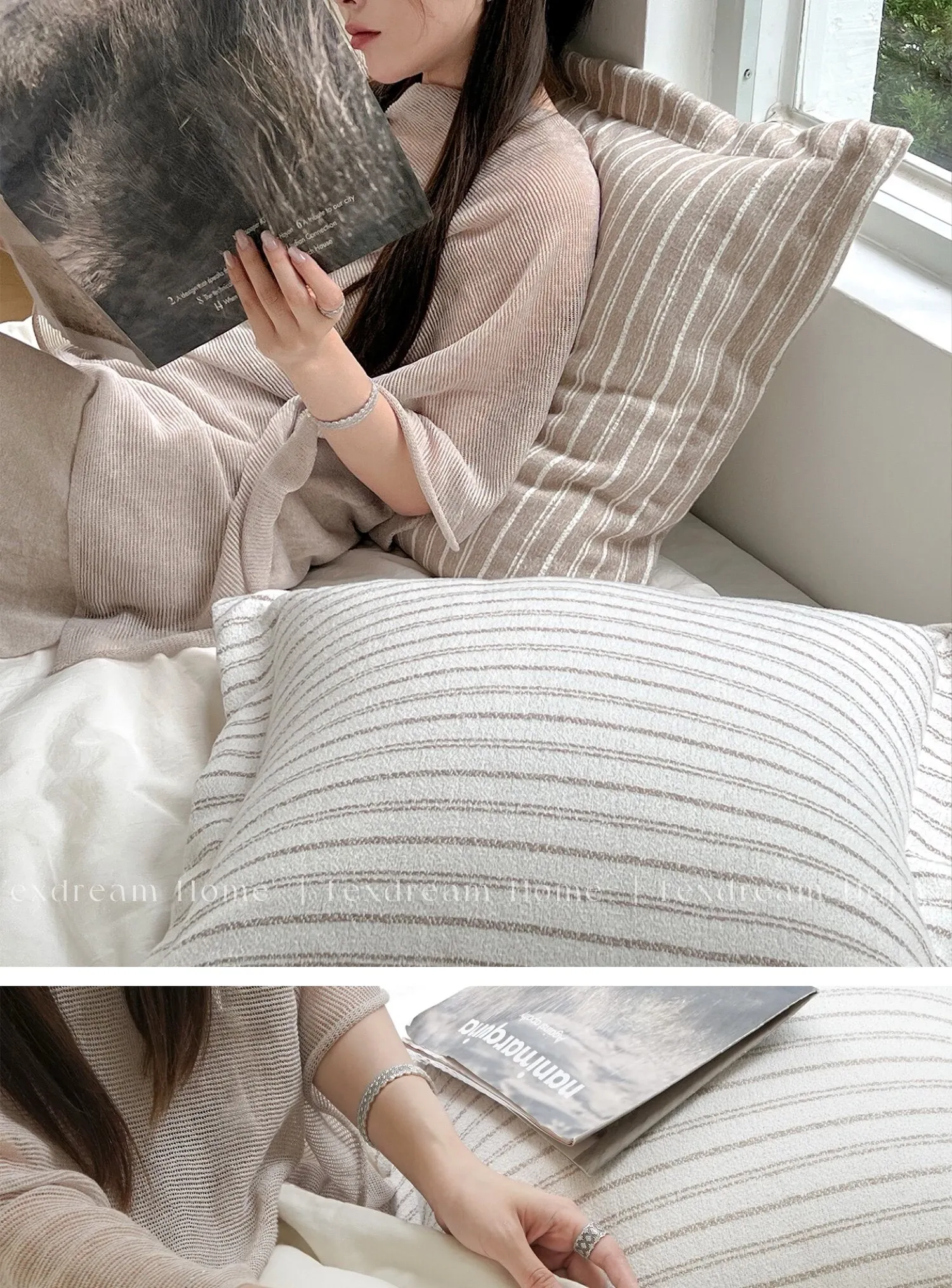TEXDREAM アティチュード フレンチストライプ 大クッションソファ用 超ソフトな抱き枕 寝室用ベッドヘッドクッション 大きなクッションパックで、快適なひとときをお届けします!