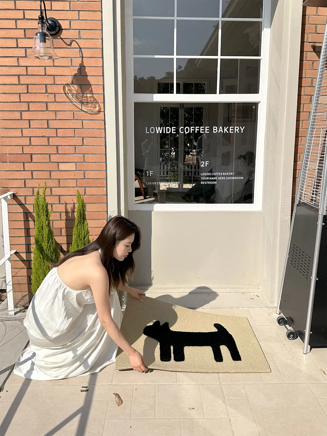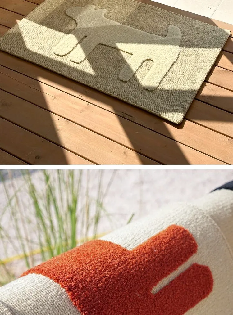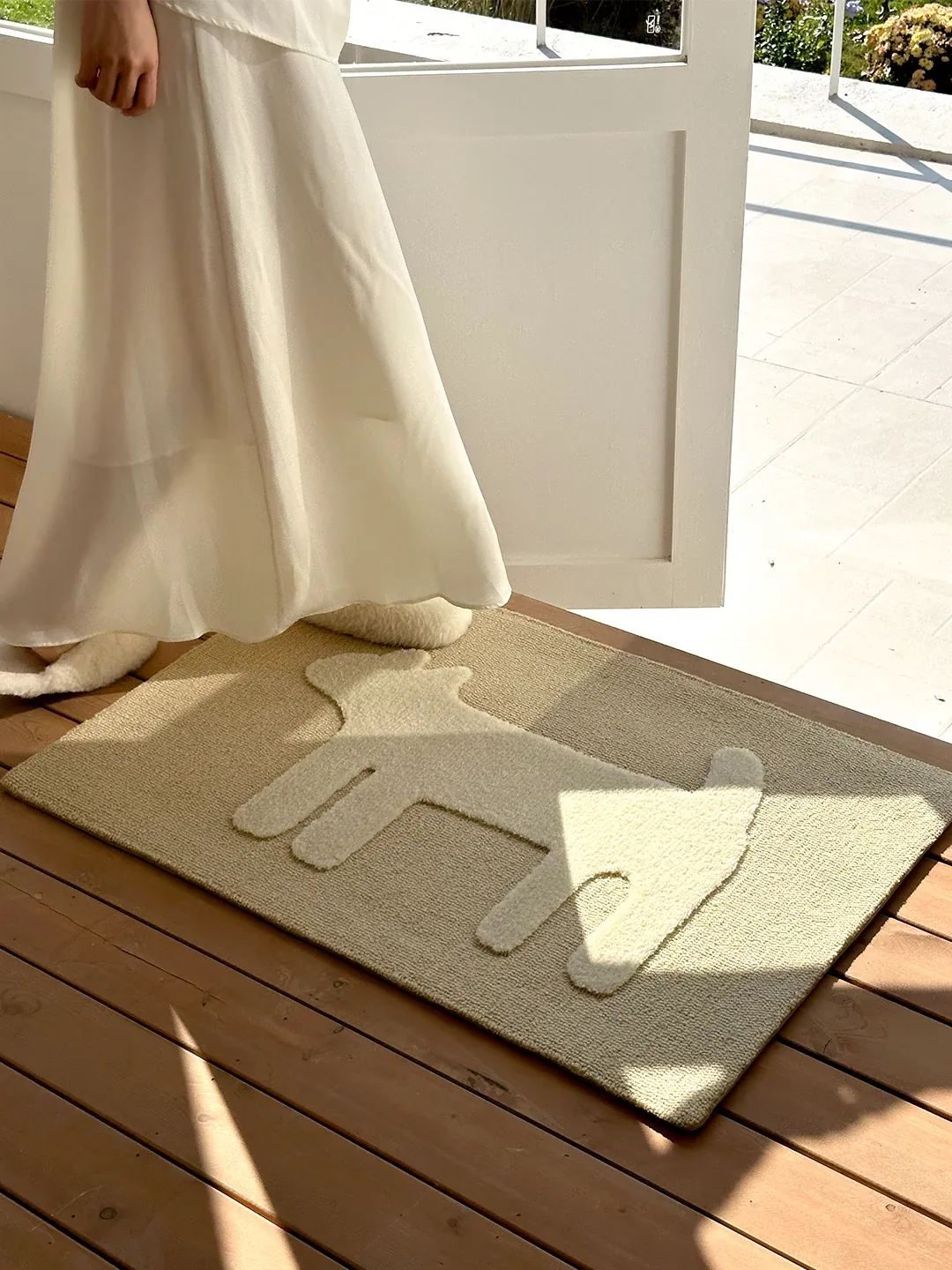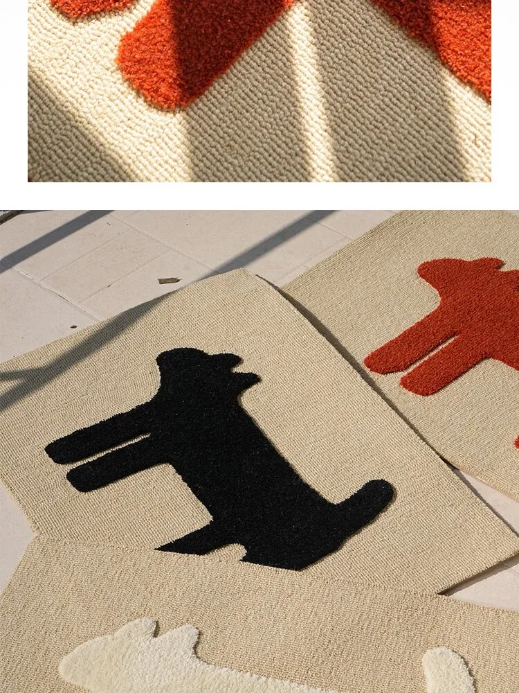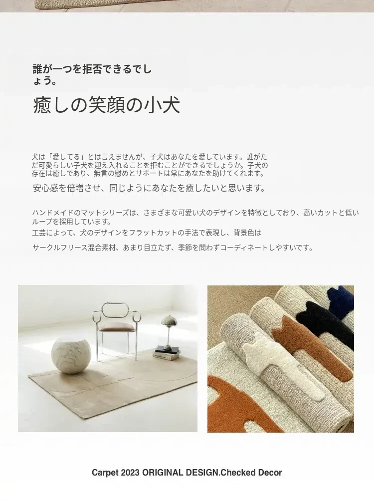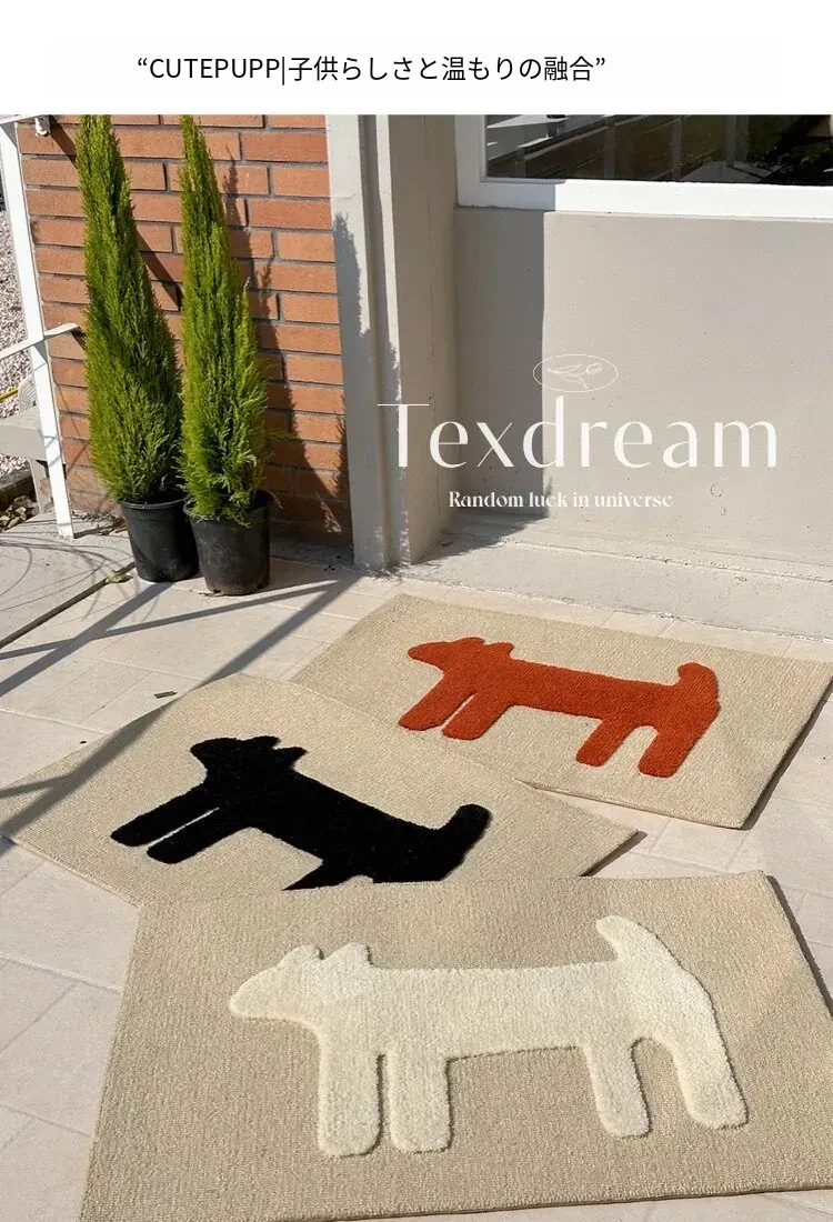 テックスドリームの態度!幸せな子犬デザインのウール入り玄関マット。おしゃれで可愛いクリーム風のベッドサイドラグ、インスタ映え間違いなし!あなたの部屋にぴったりのアイテムです。