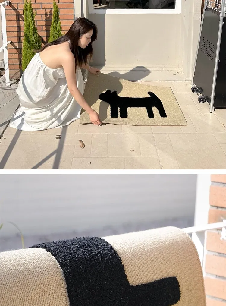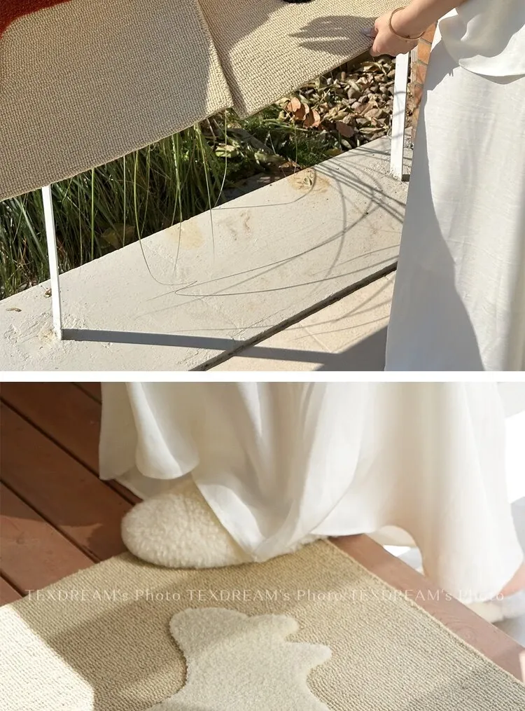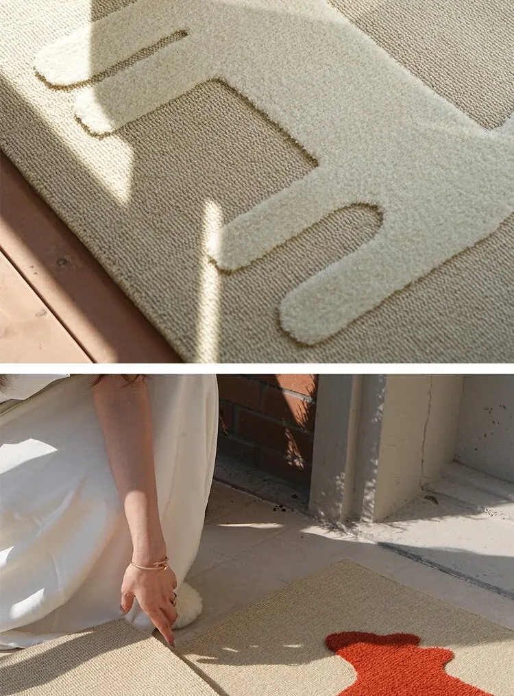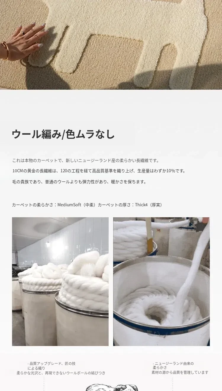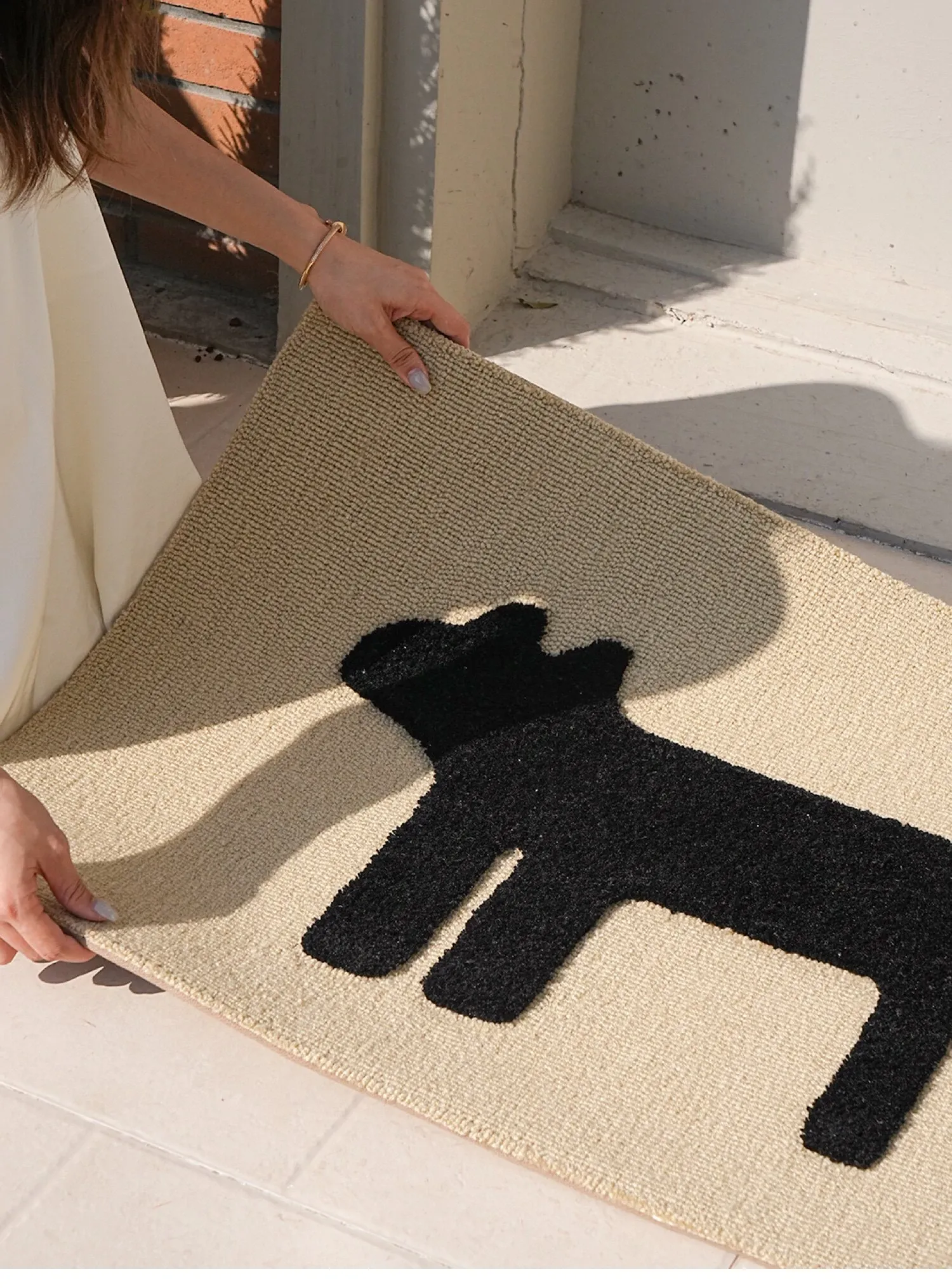 テックスドリームの態度!幸せな子犬デザインのウール入り玄関マット。おしゃれで可愛いクリーム風のベッドサイドラグ、インスタ映え間違いなし!あなたの部屋にぴったりのアイテムです。