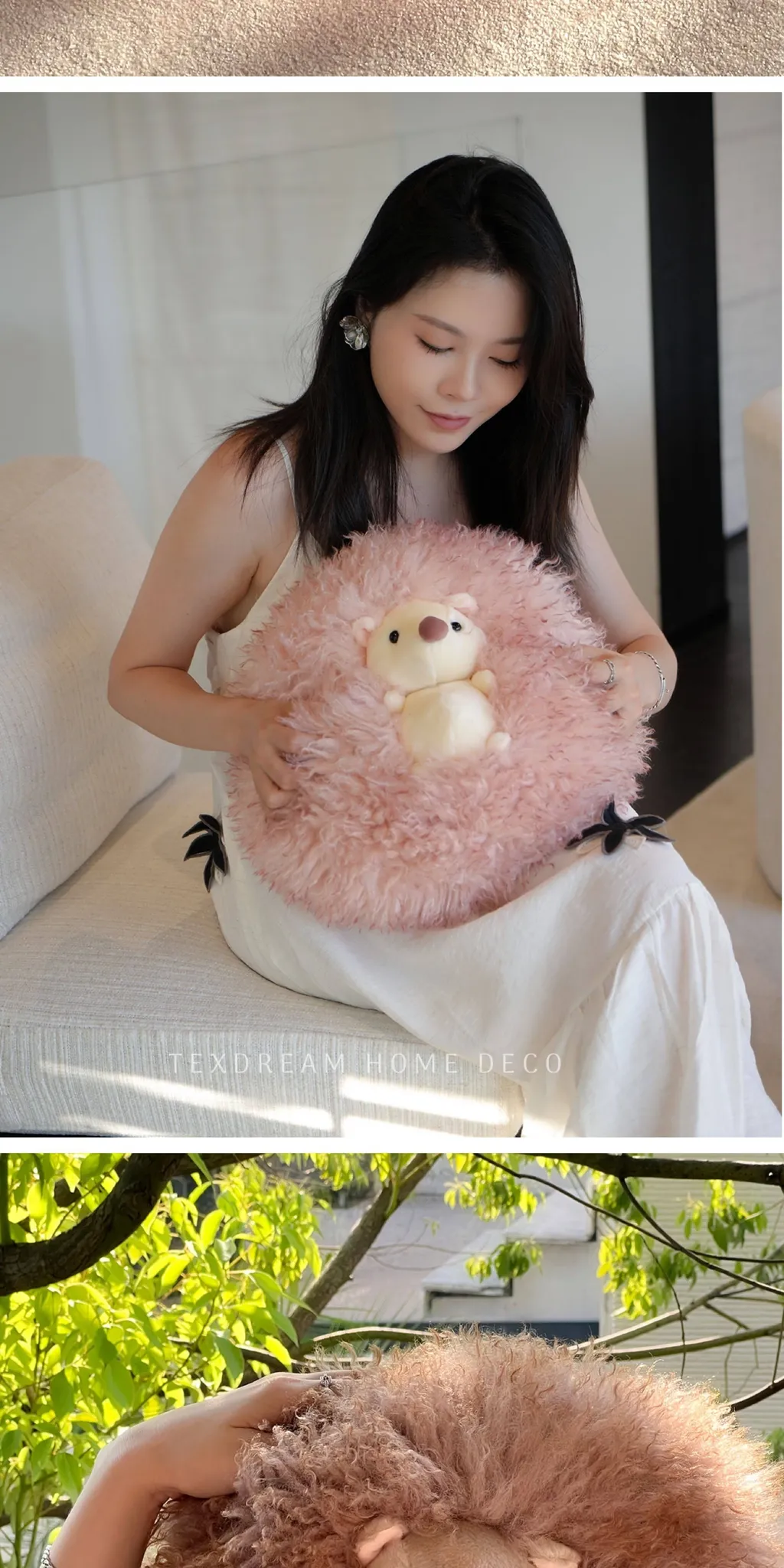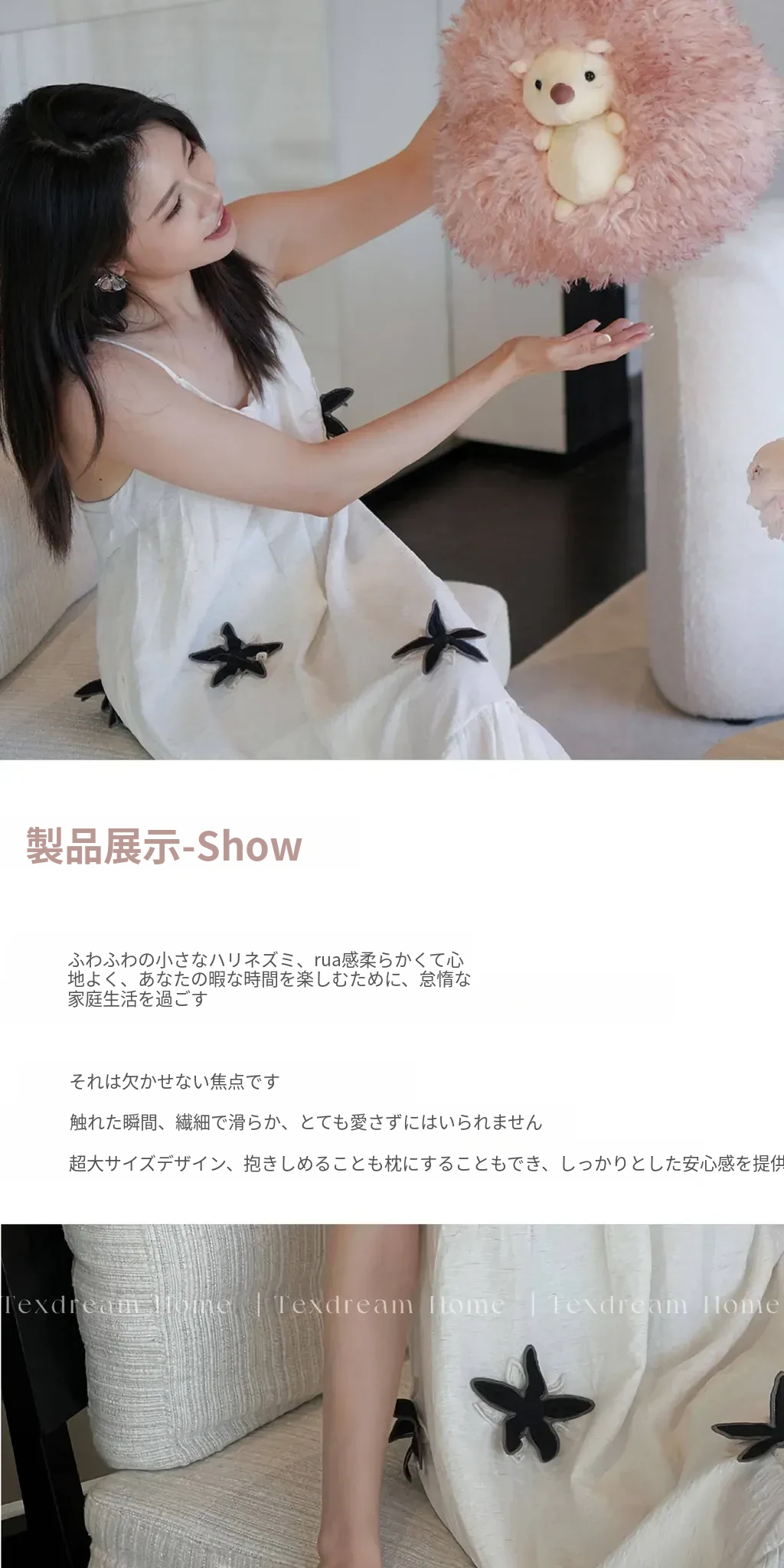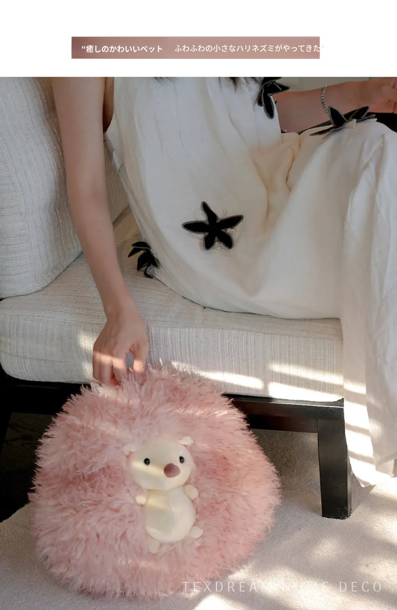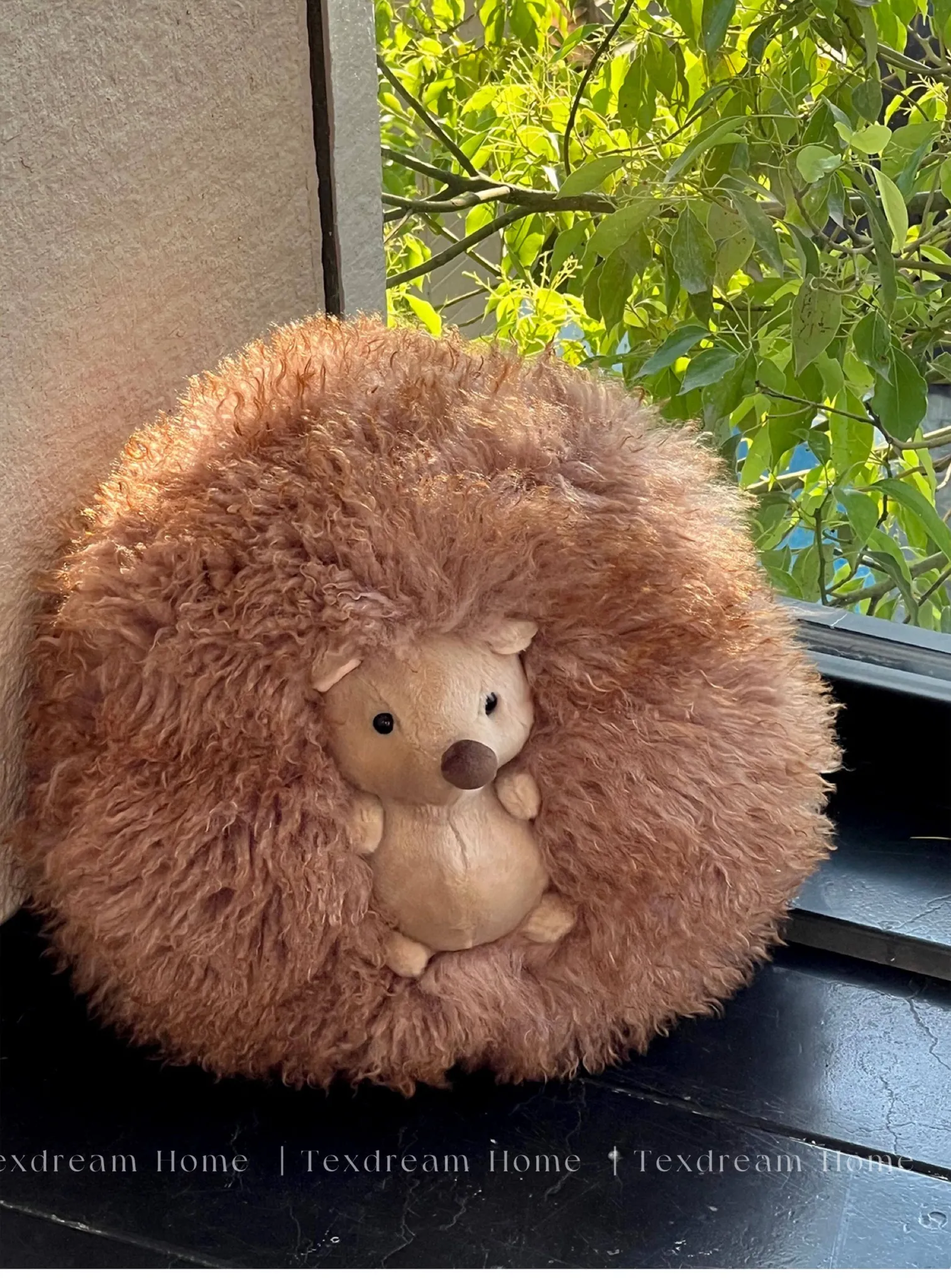 Texdreamの癒し系ハリネズミクッション - インスタで話題の可愛いぬいぐるみ!ふわふわの毛並みと愛らしいデザインで、あなたのソファやベッドをもっと素敵に。抱きしめたくなる癒しの存在をお届けします!