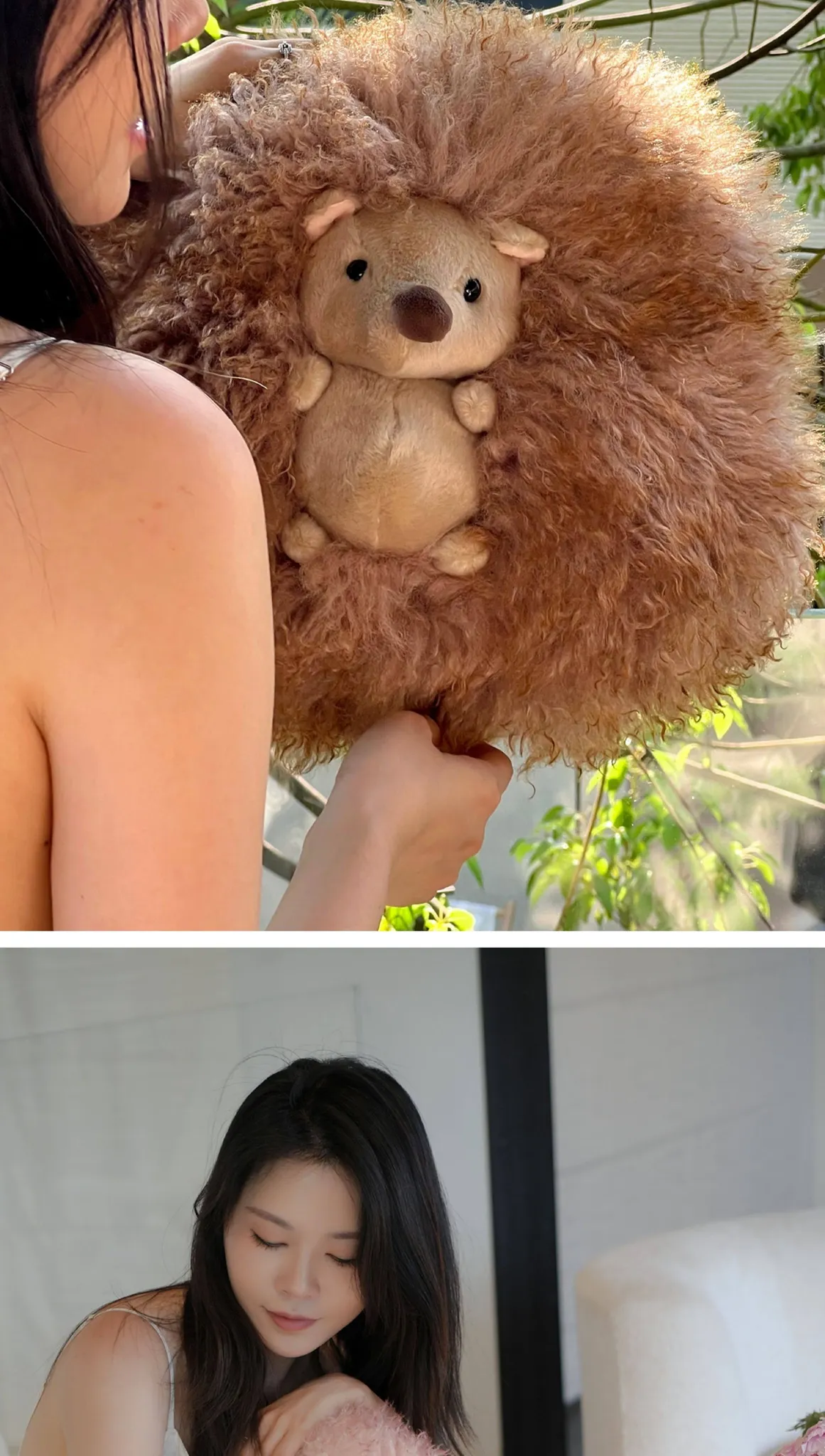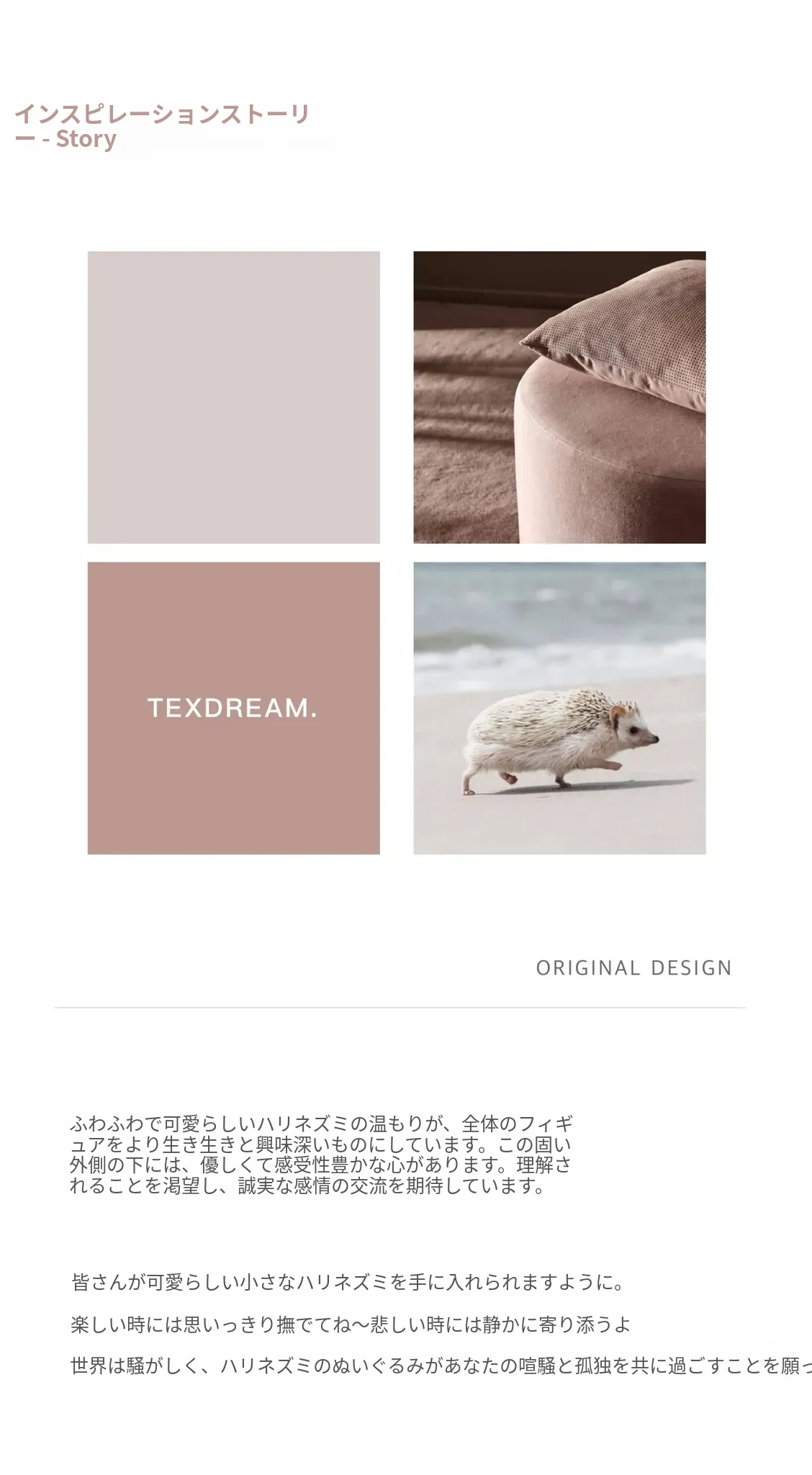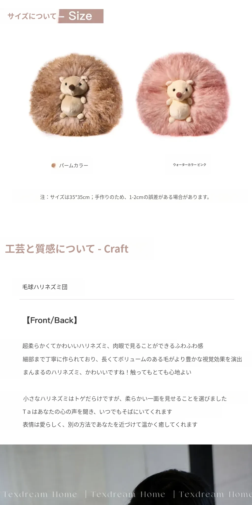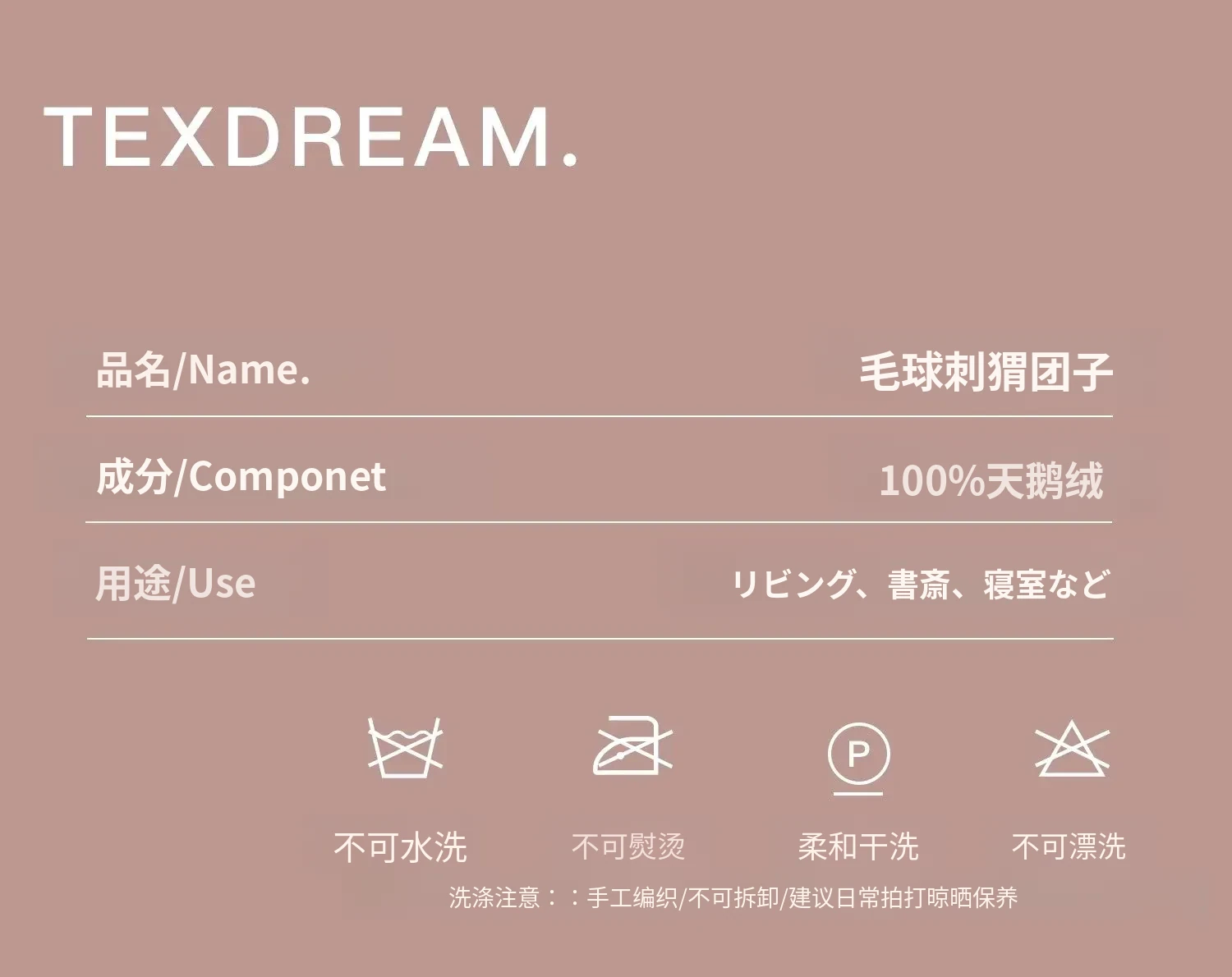 Texdreamの癒し系ハリネズミクッション - インスタで話題の可愛いぬいぐるみ!ふわふわの毛並みと愛らしいデザインで、あなたのソファやベッドをもっと素敵に。抱きしめたくなる癒しの存在をお届けします!