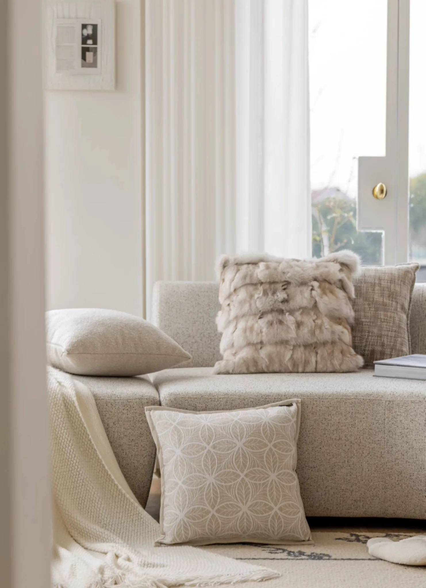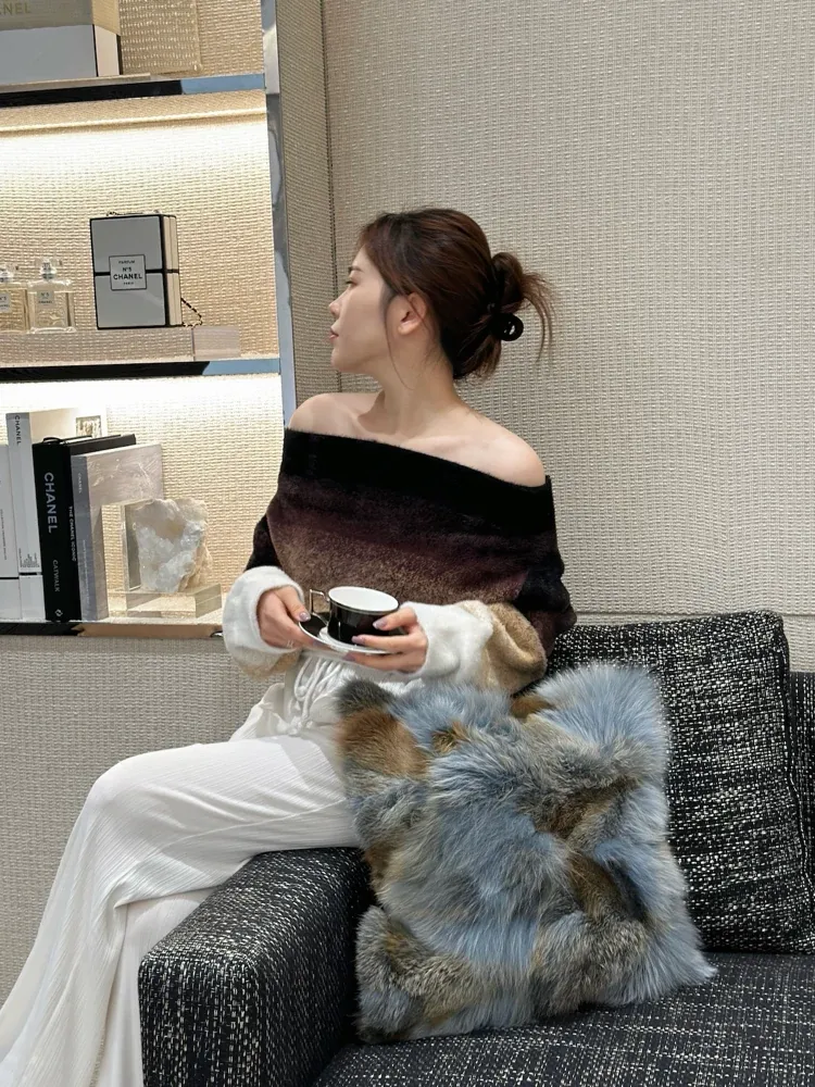 Texdreamのスタイリッシュなリアルフォックスファー抱き枕カバー - リビングやモデルルームにぴったりの豪華なクッション(クッション中身付き)