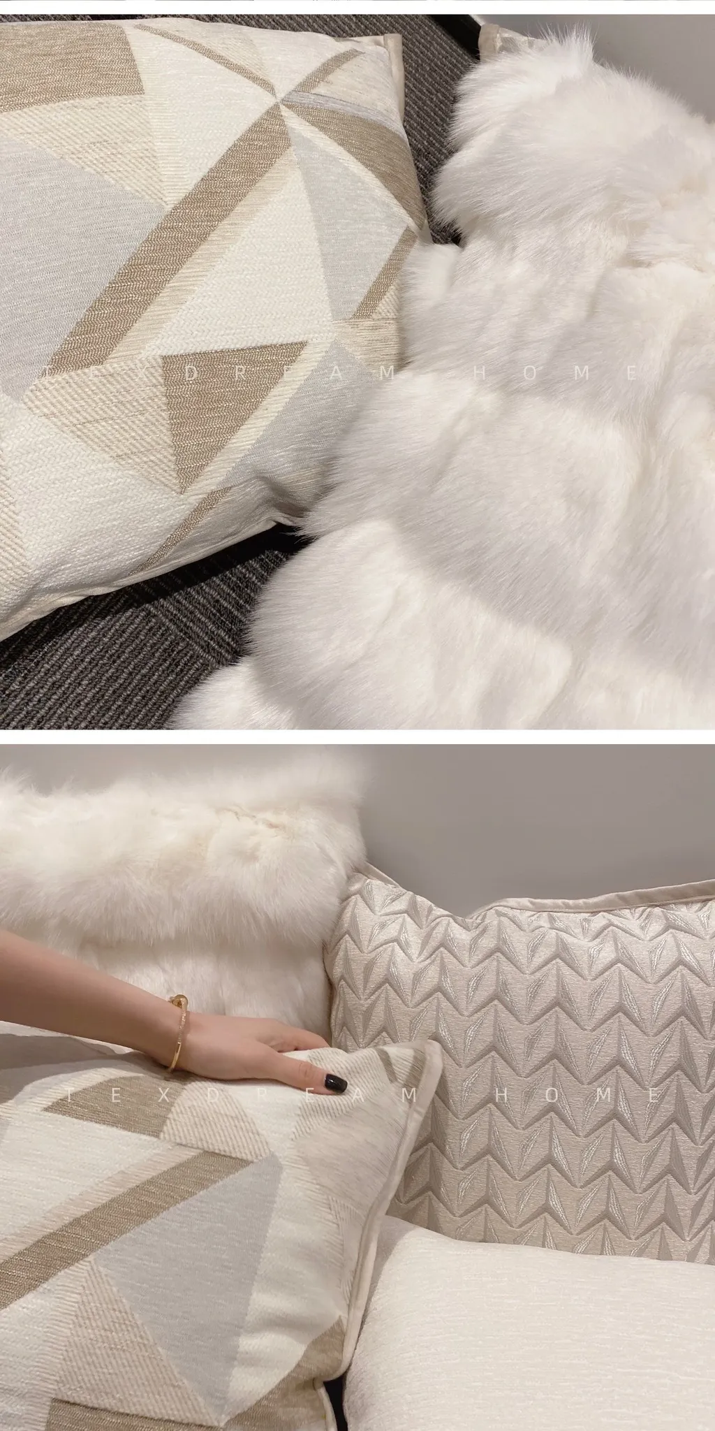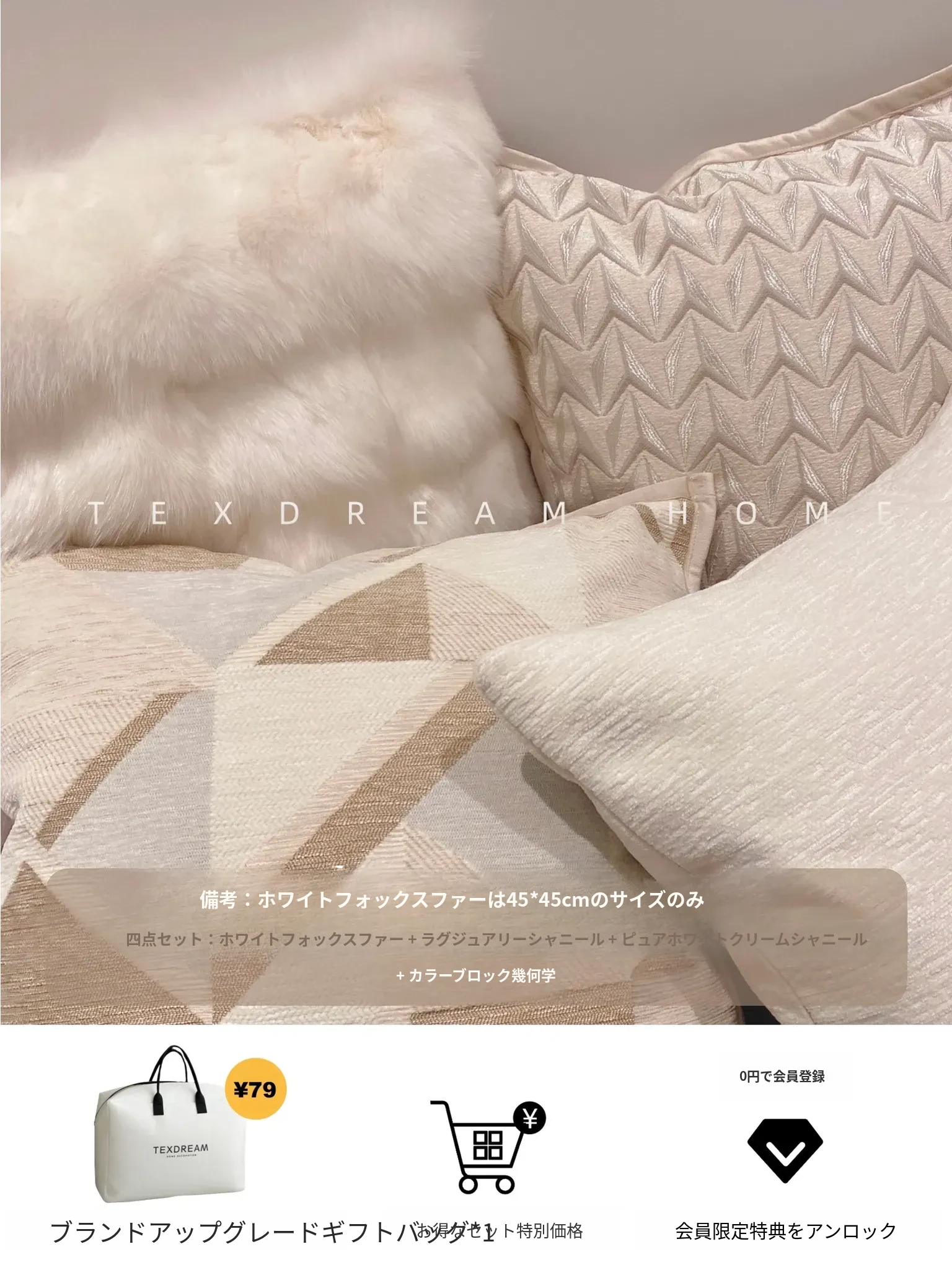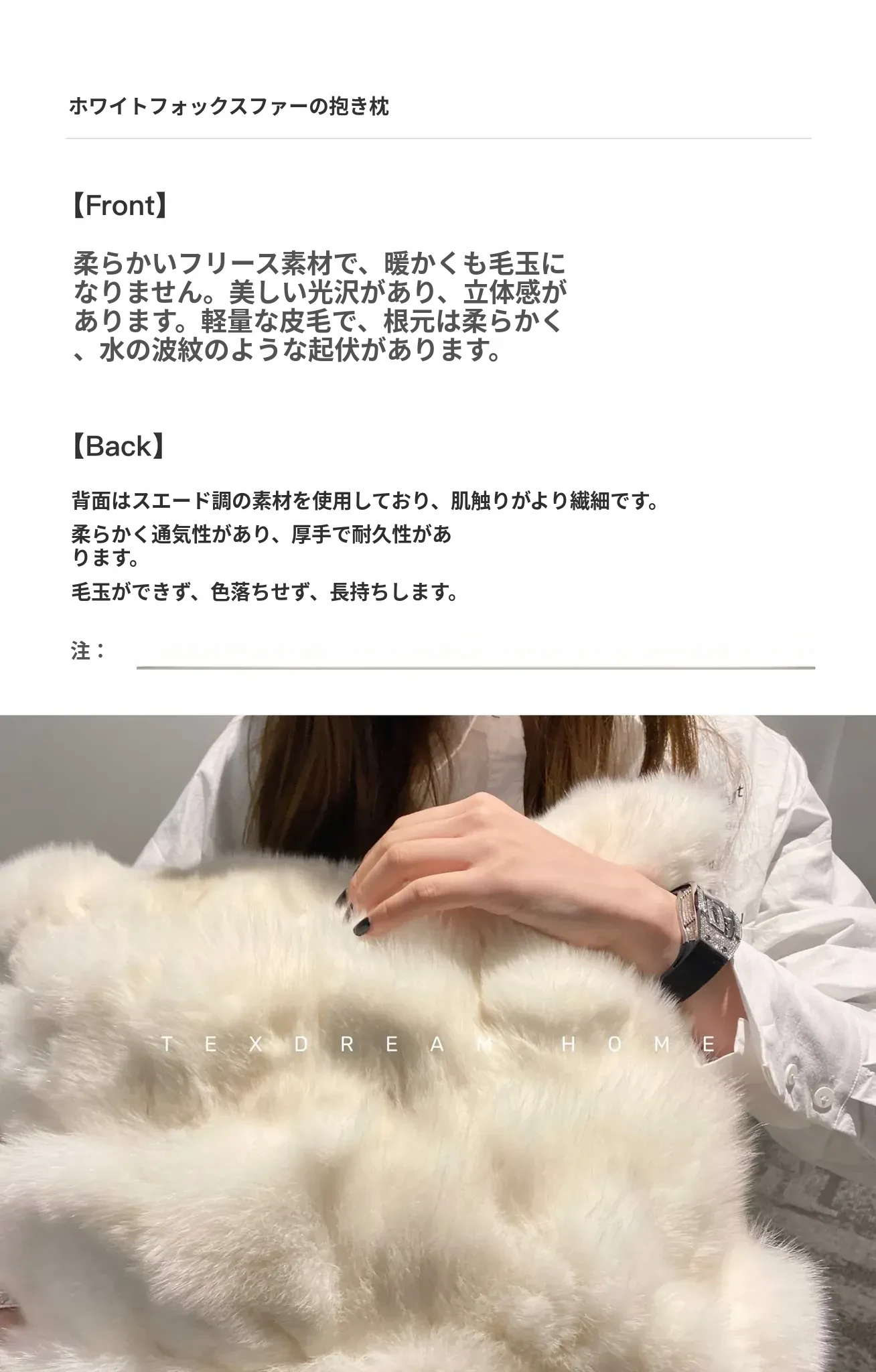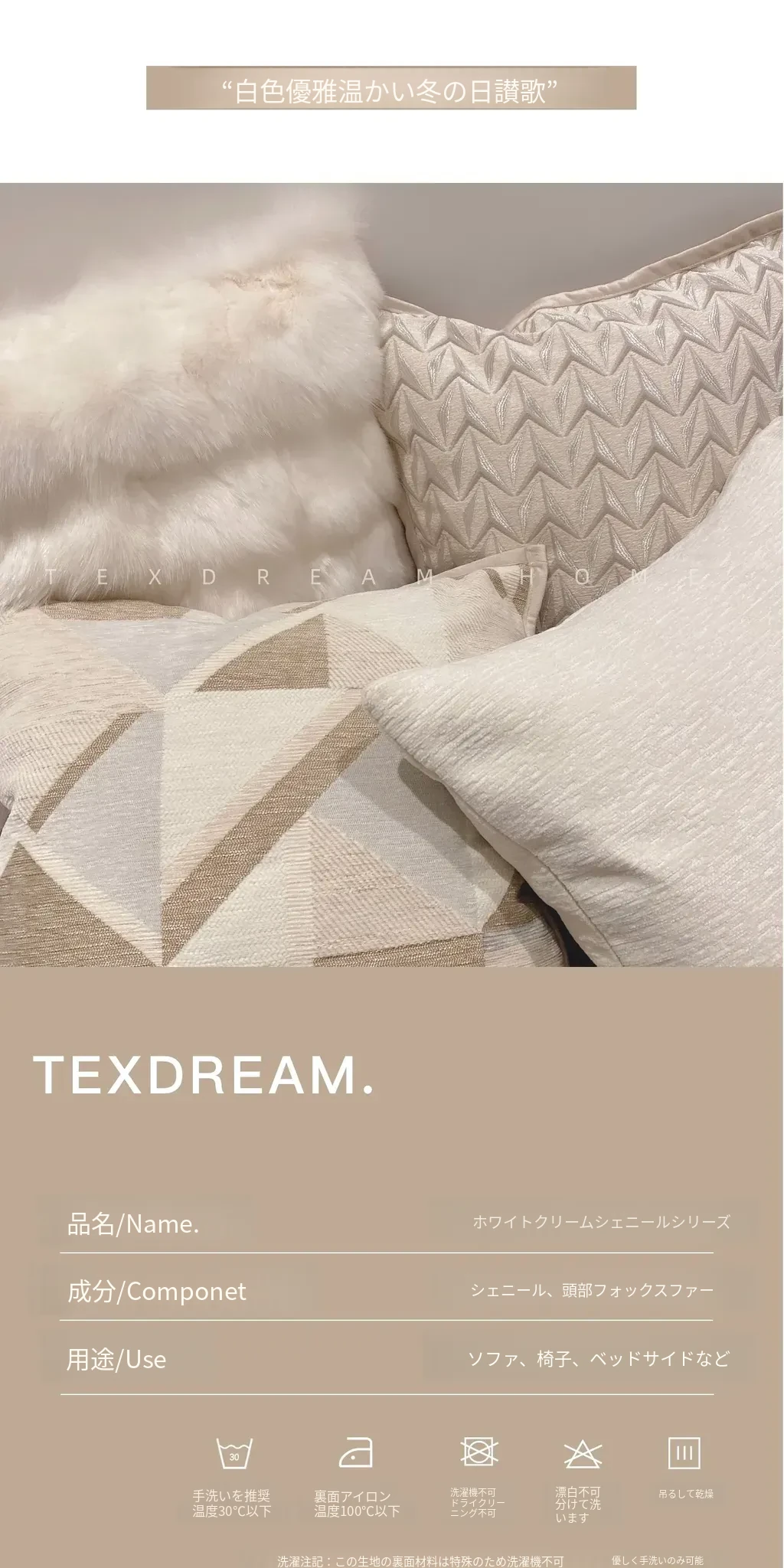 Texdreamのホワイトクリーム風フワフワフェイクファークッション - 高級感溢れるリビングソファ用抱き枕、心地よいふんわり感でくつろぎのひとときを!