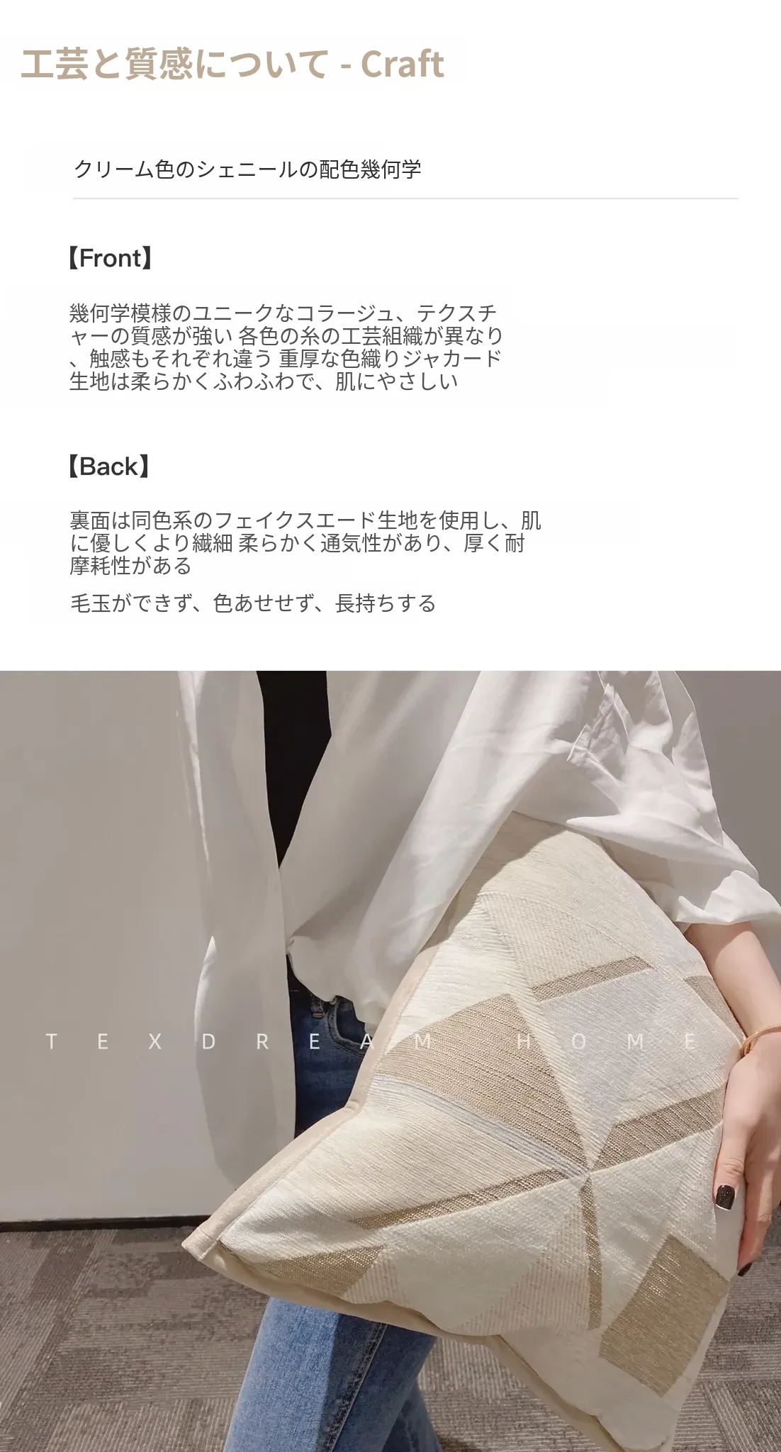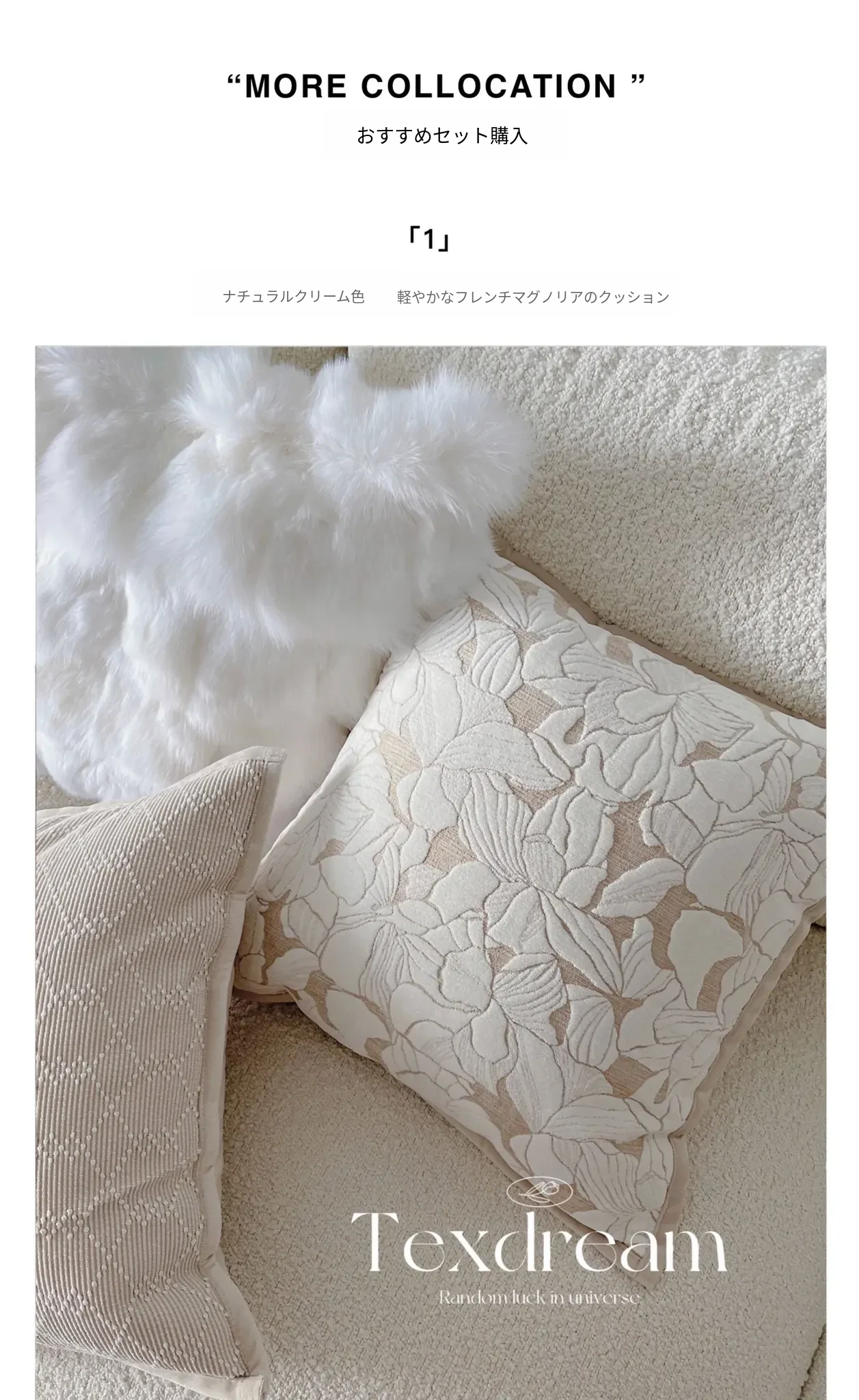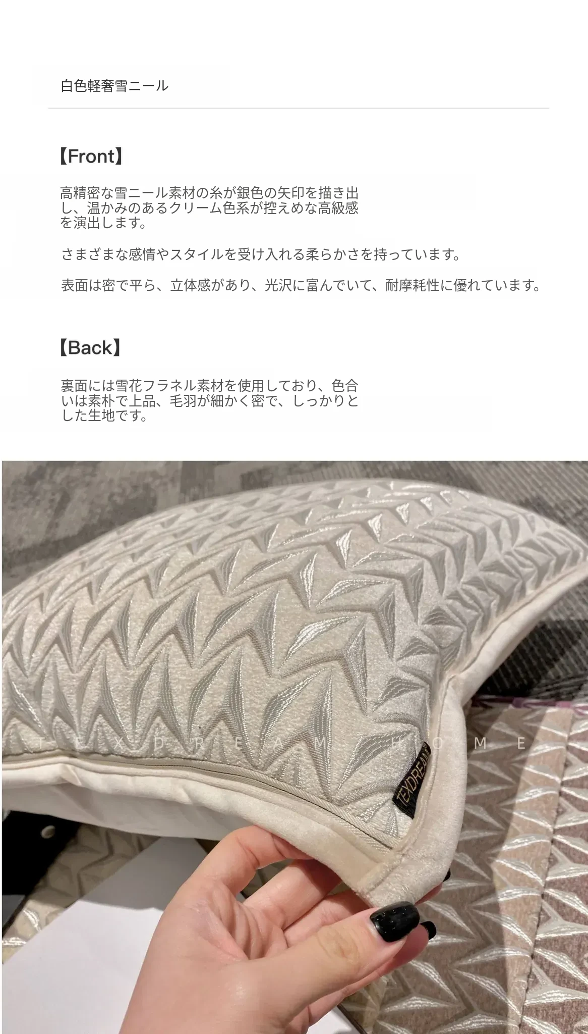 Texdreamのホワイトクリーム風フワフワフェイクファークッション - 高級感溢れるリビングソファ用抱き枕、心地よいふんわり感でくつろぎのひとときを!