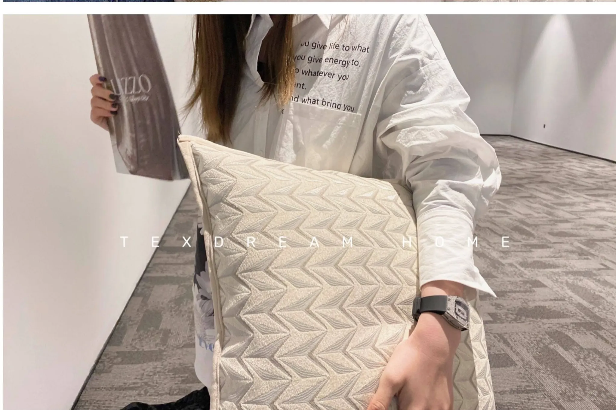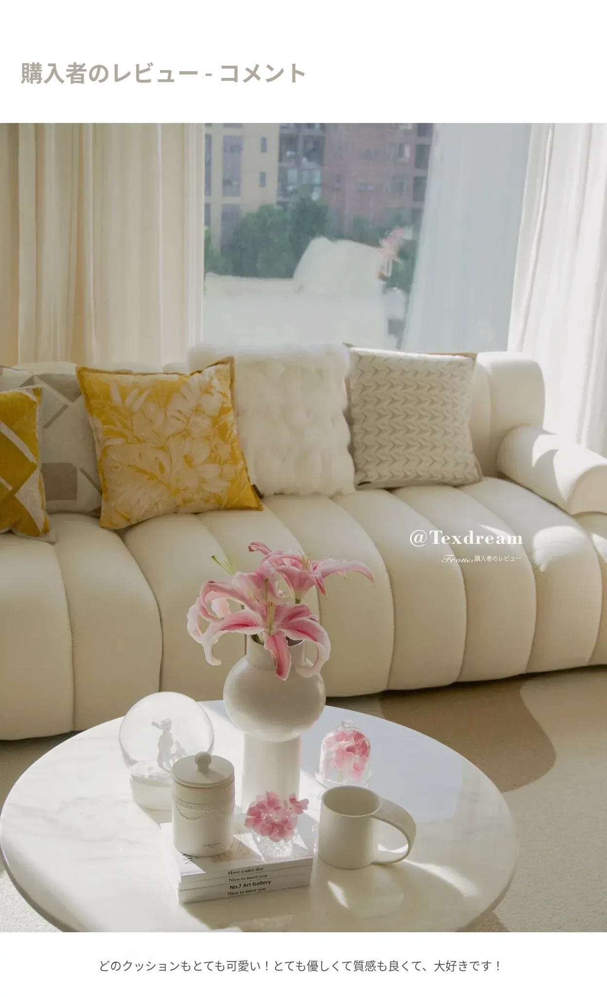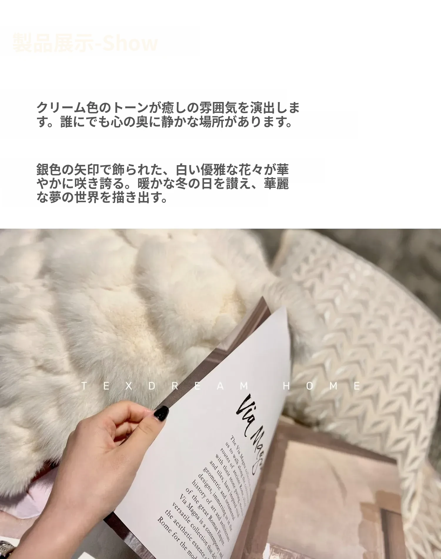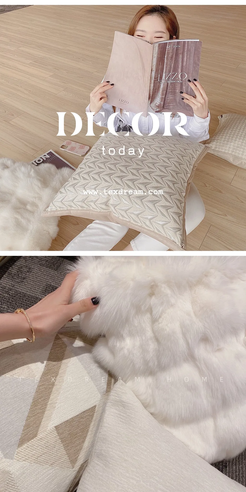 Texdreamのホワイトクリーム風フワフワフェイクファークッション - 高級感溢れるリビングソファ用抱き枕、心地よいふんわり感でくつろぎのひとときを!