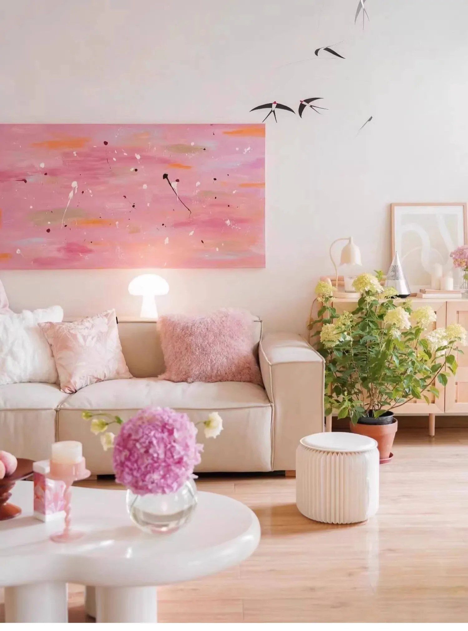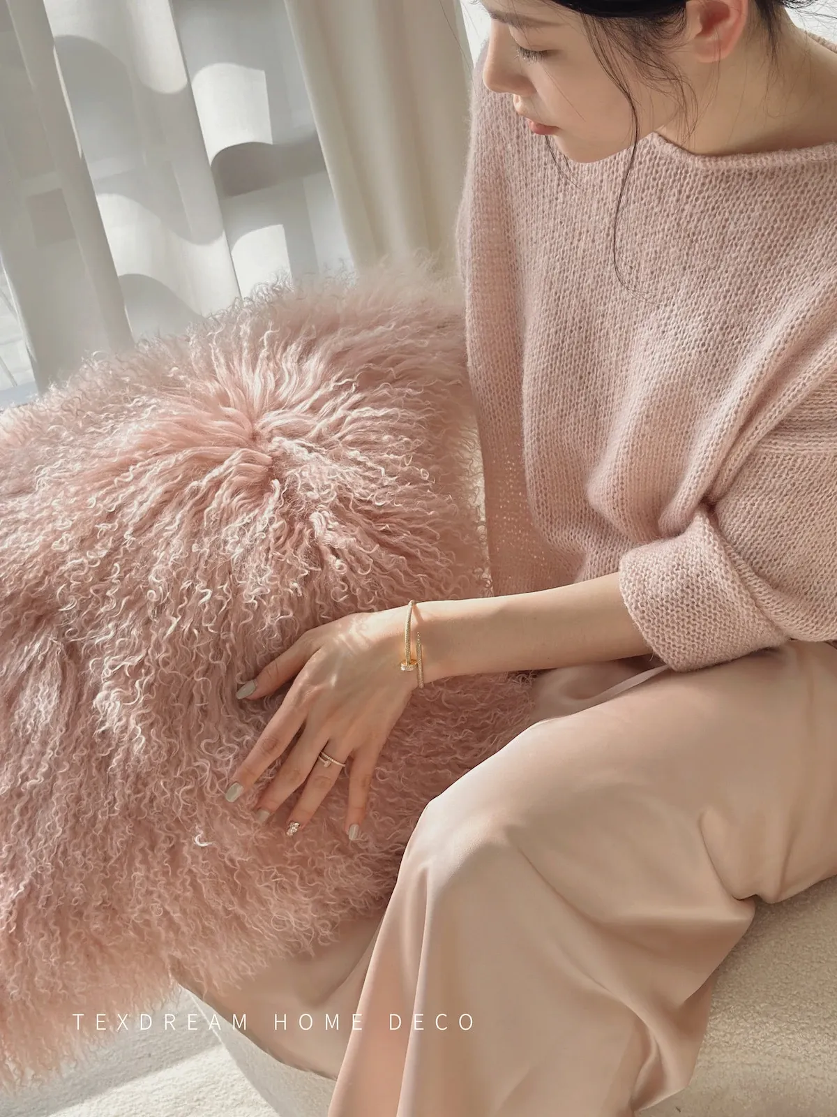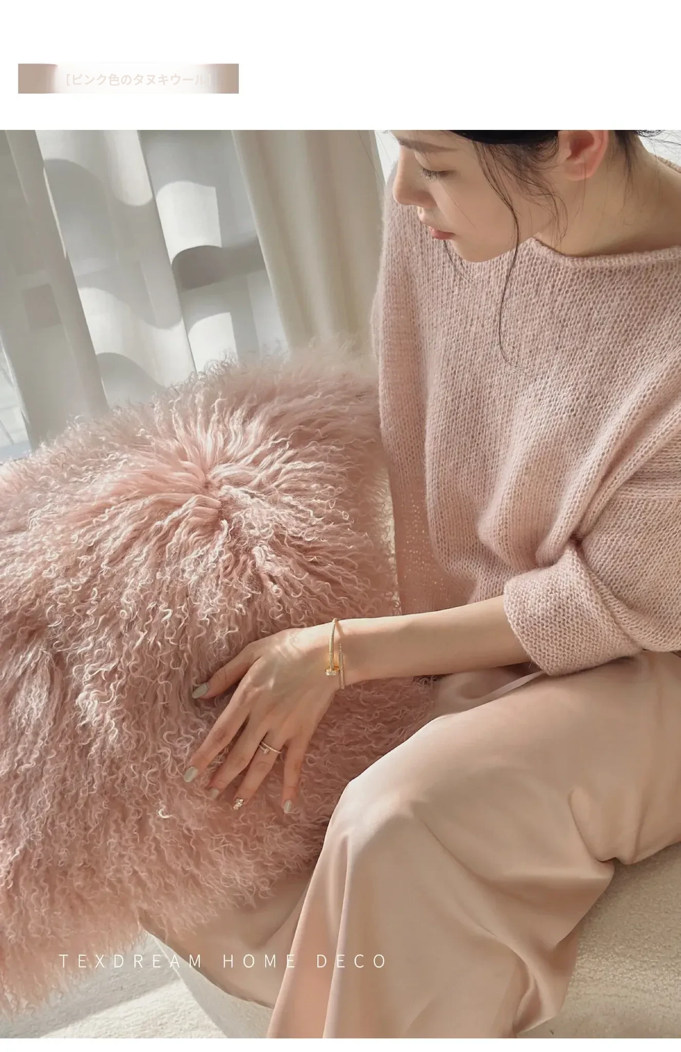 【ピンク| 単色のラムウールクッション】