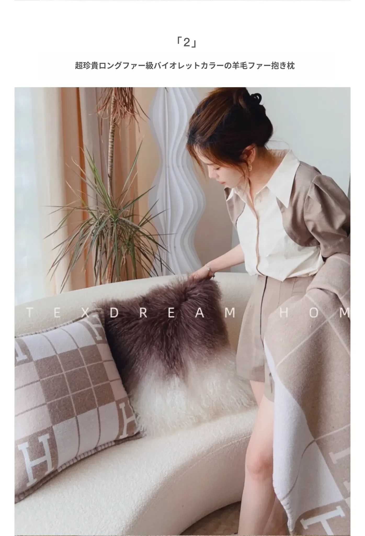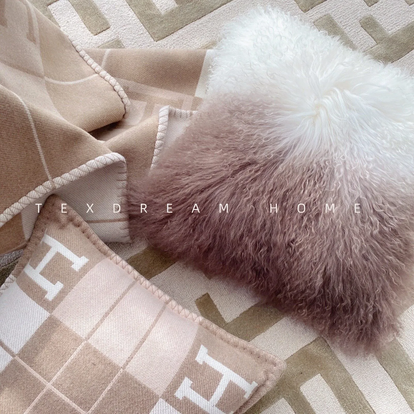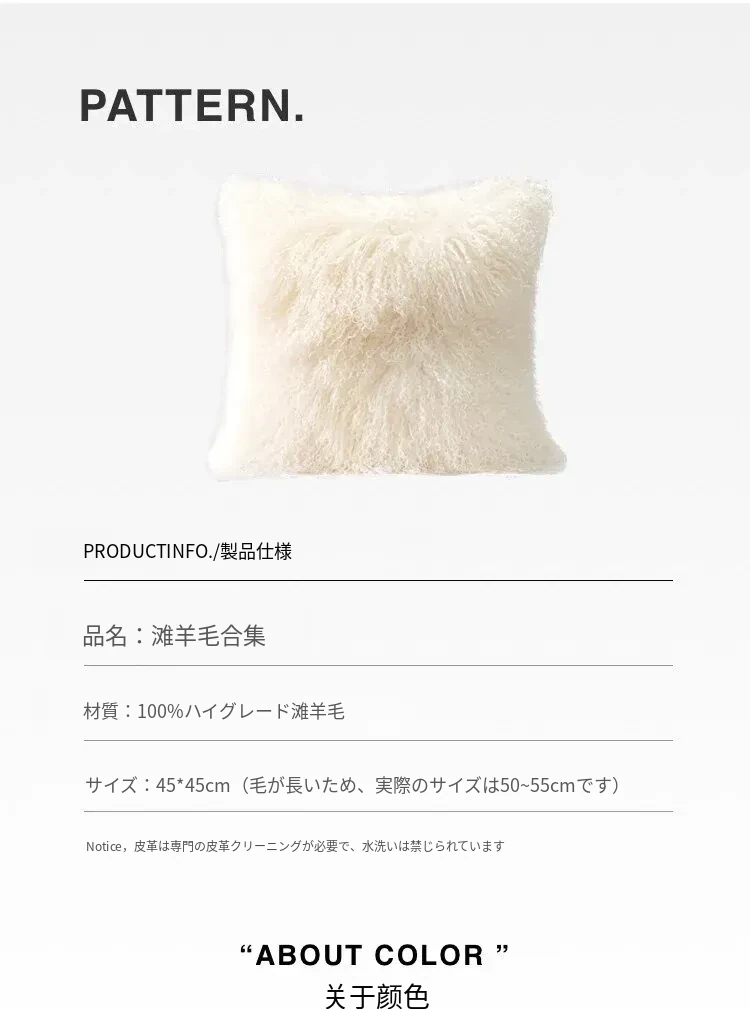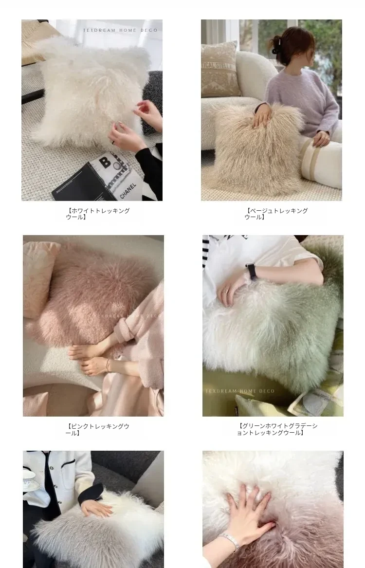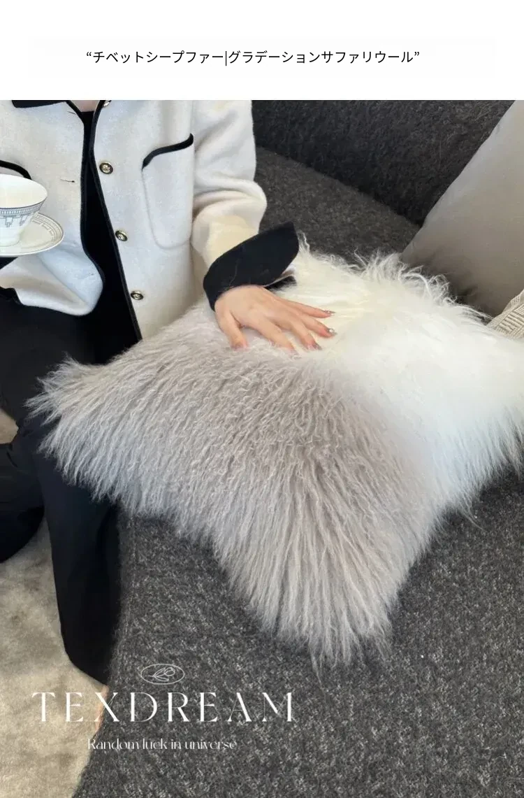 Texdreamのスタイル 羊毛レザー製クッションカバー|インテリアにぴったりのラグジュアリー感!高級感あふれるサンプルルームやソファ、ベッドヘッドに最適なアイテムです。