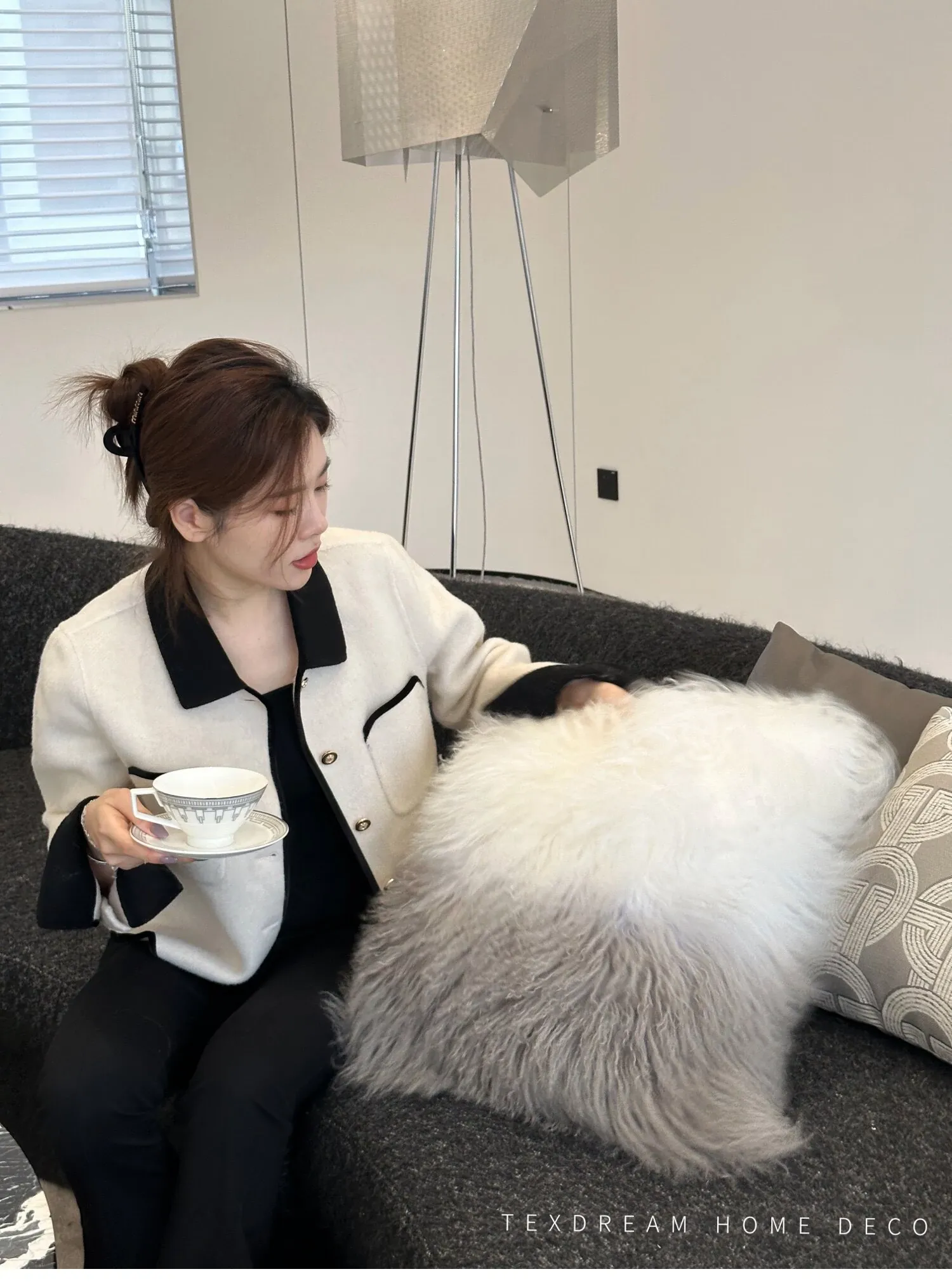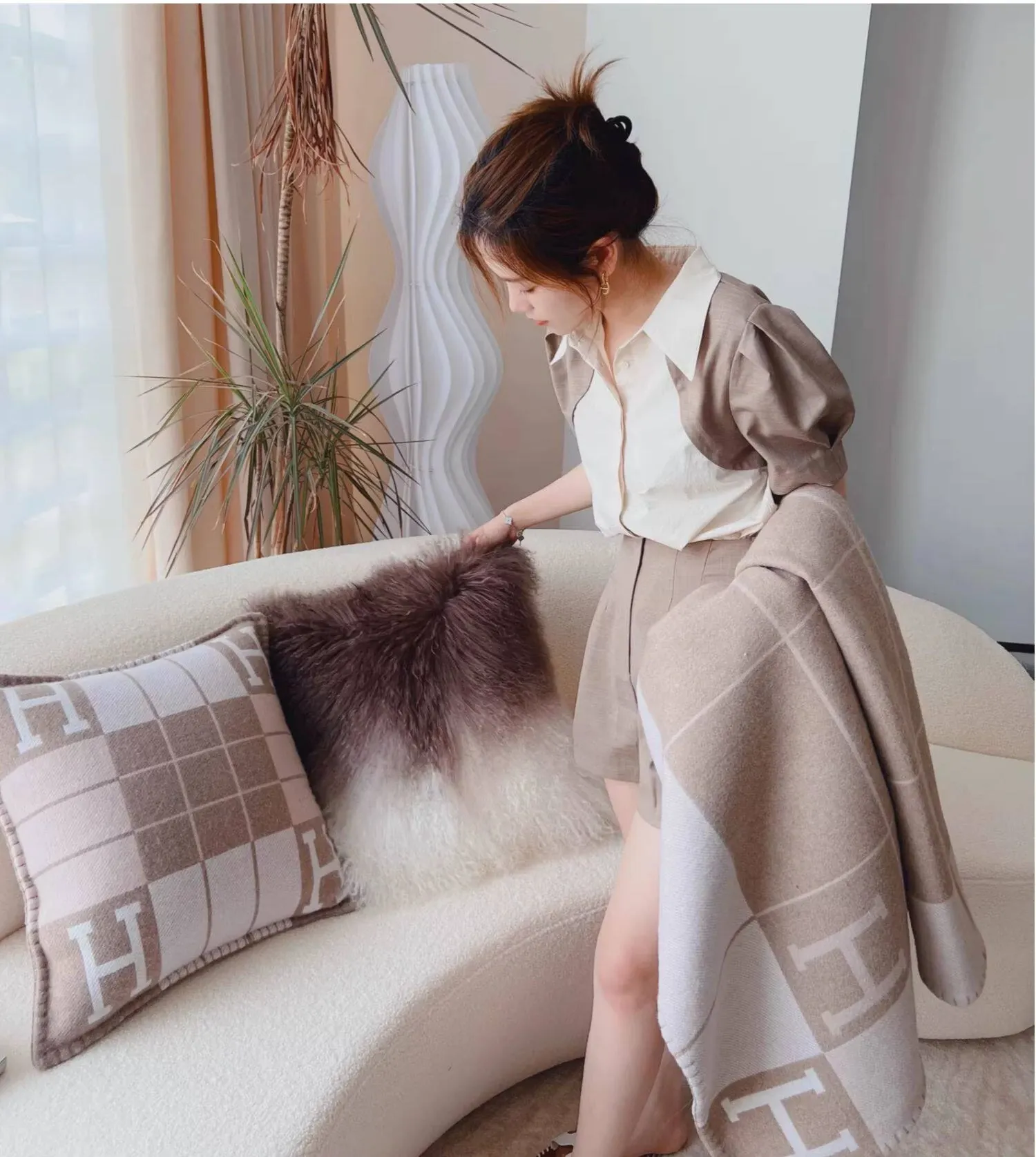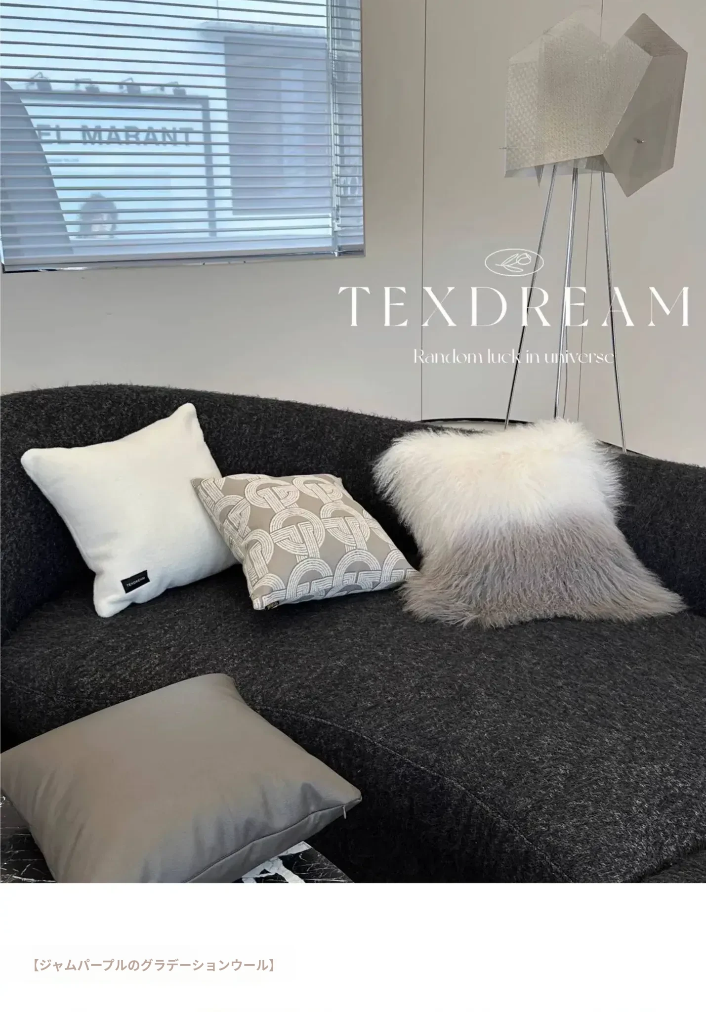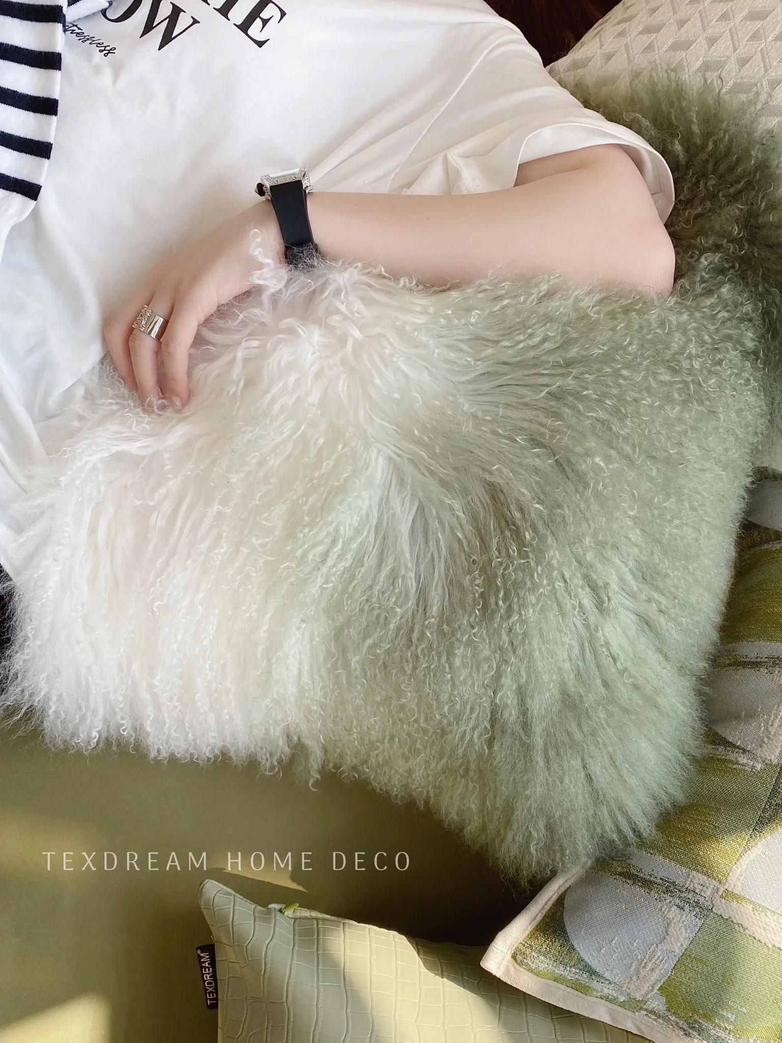 Texdreamのスタイル 羊毛レザー製クッションカバー|インテリアにぴったりのラグジュアリー感!高級感あふれるサンプルルームやソファ、ベッドヘッドに最適なアイテムです。