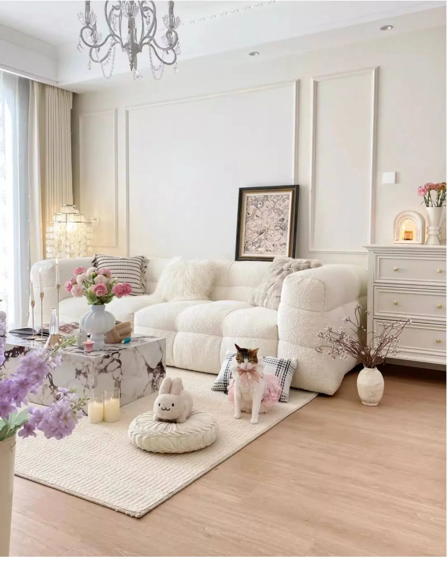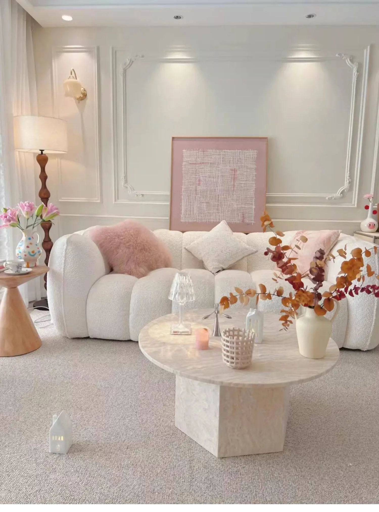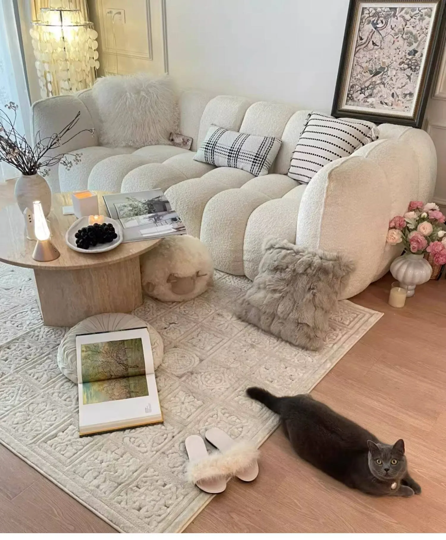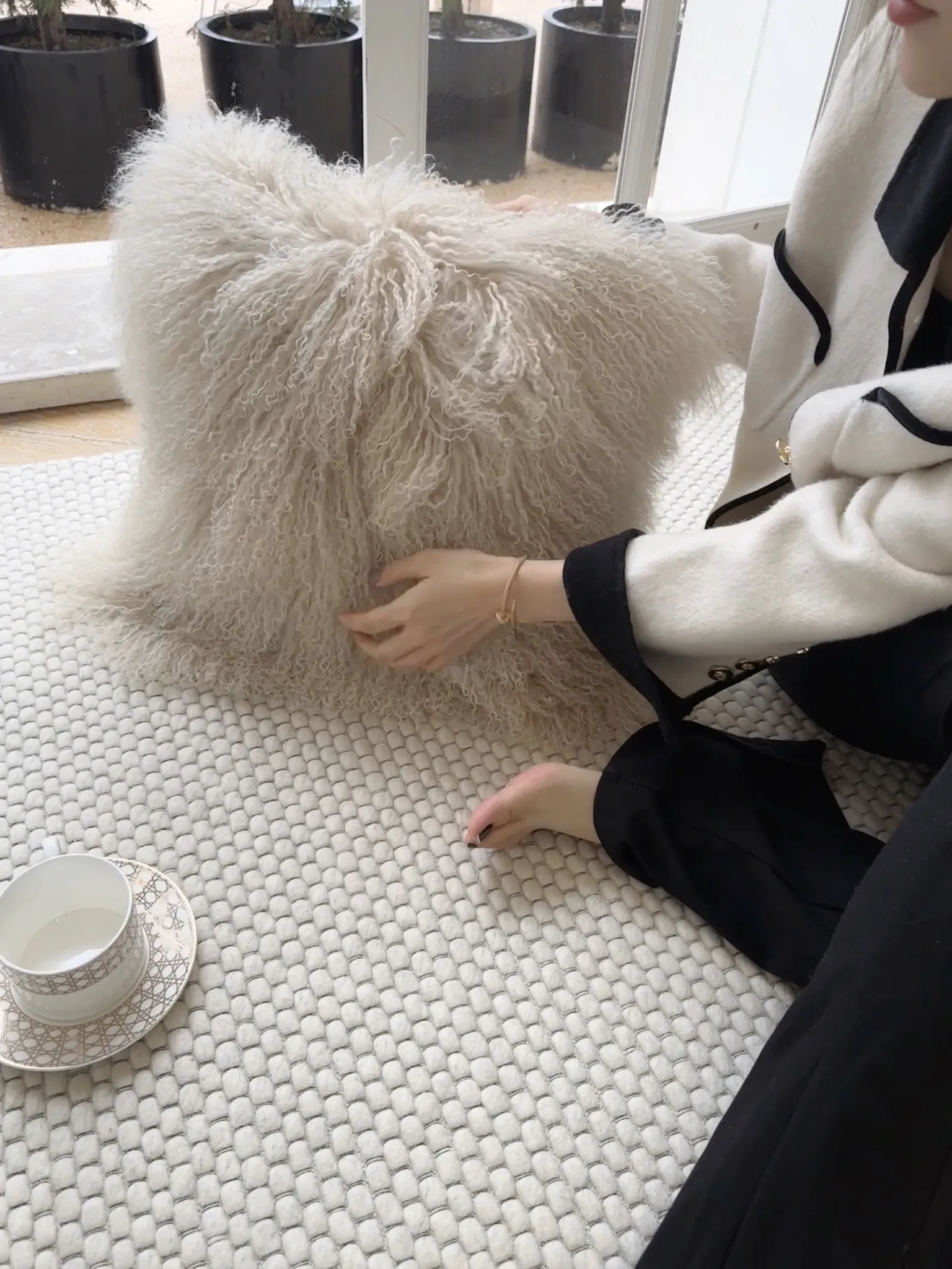 【ホワイト| 単色のラムウールクッション】