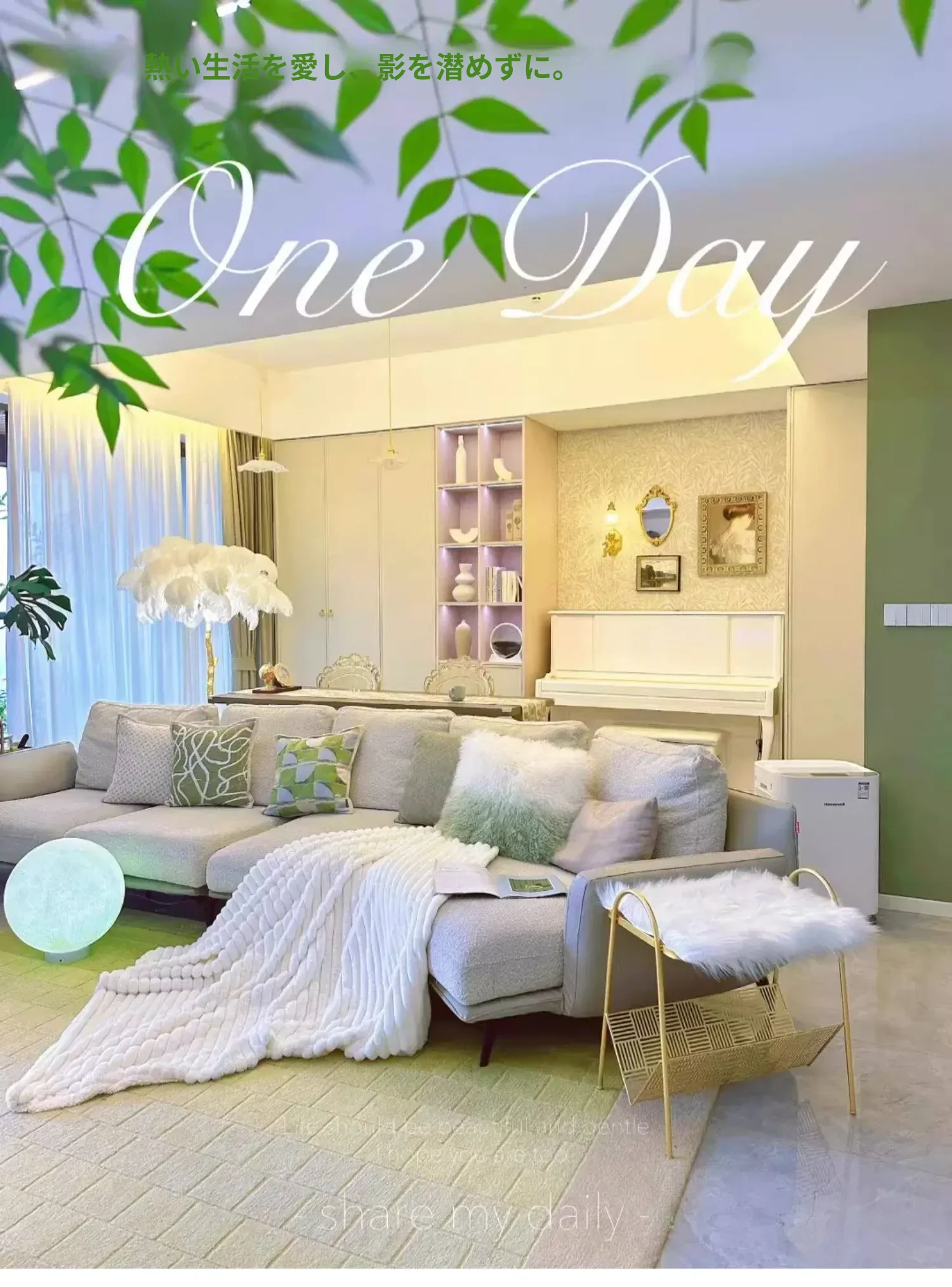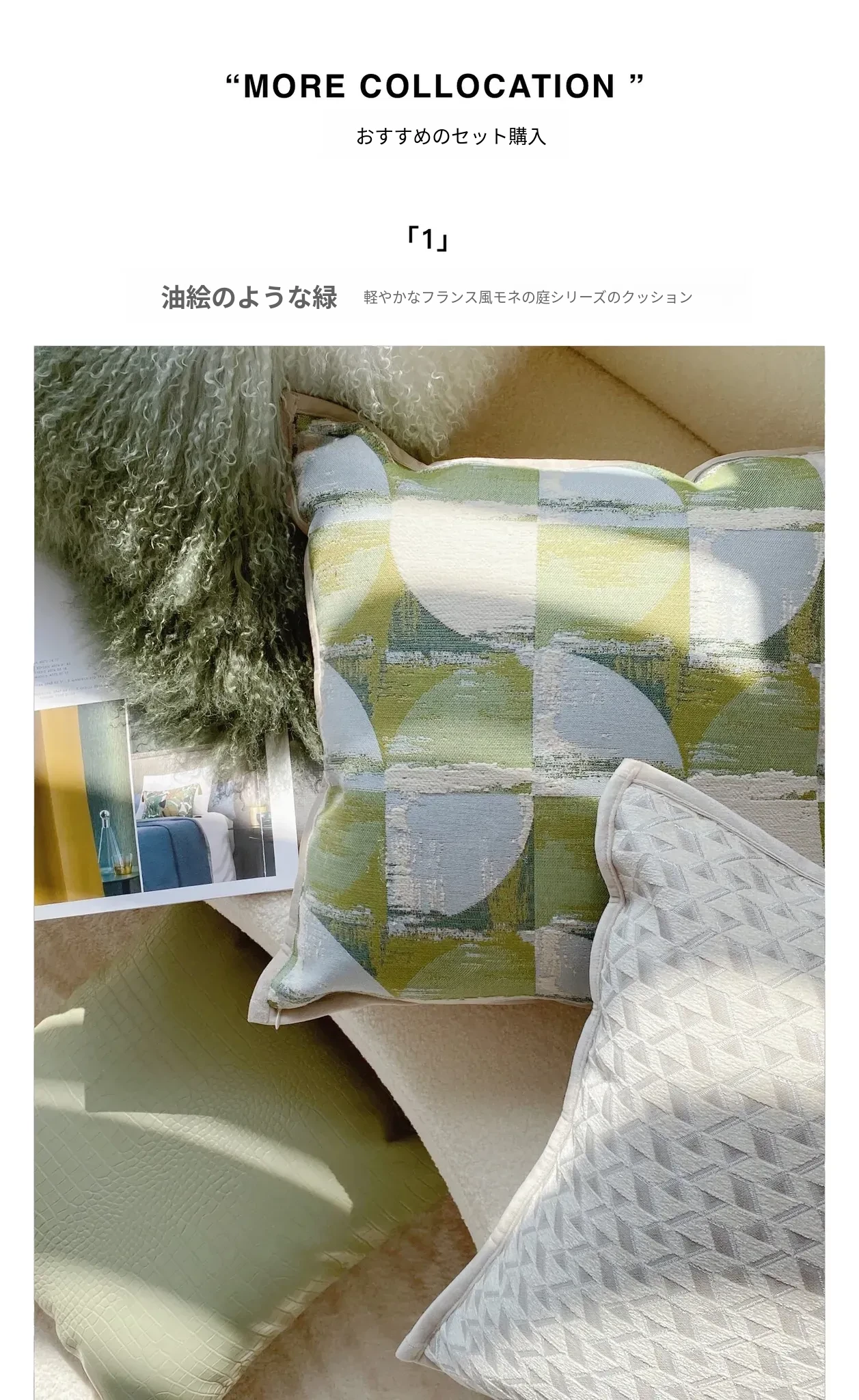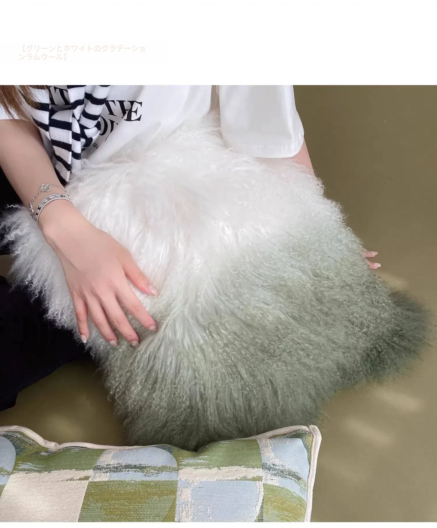 【グリーンと白| グラデーションのラムウールクッション】