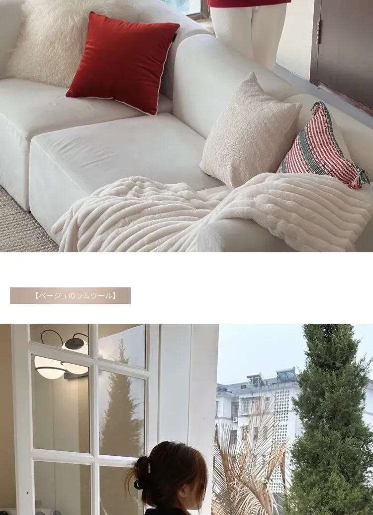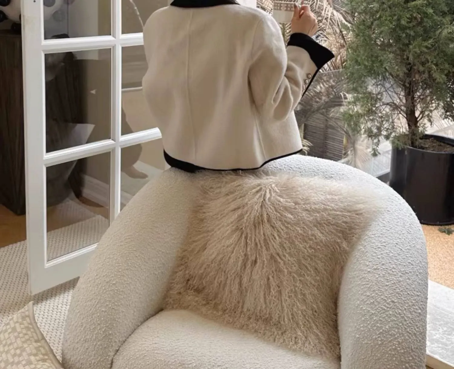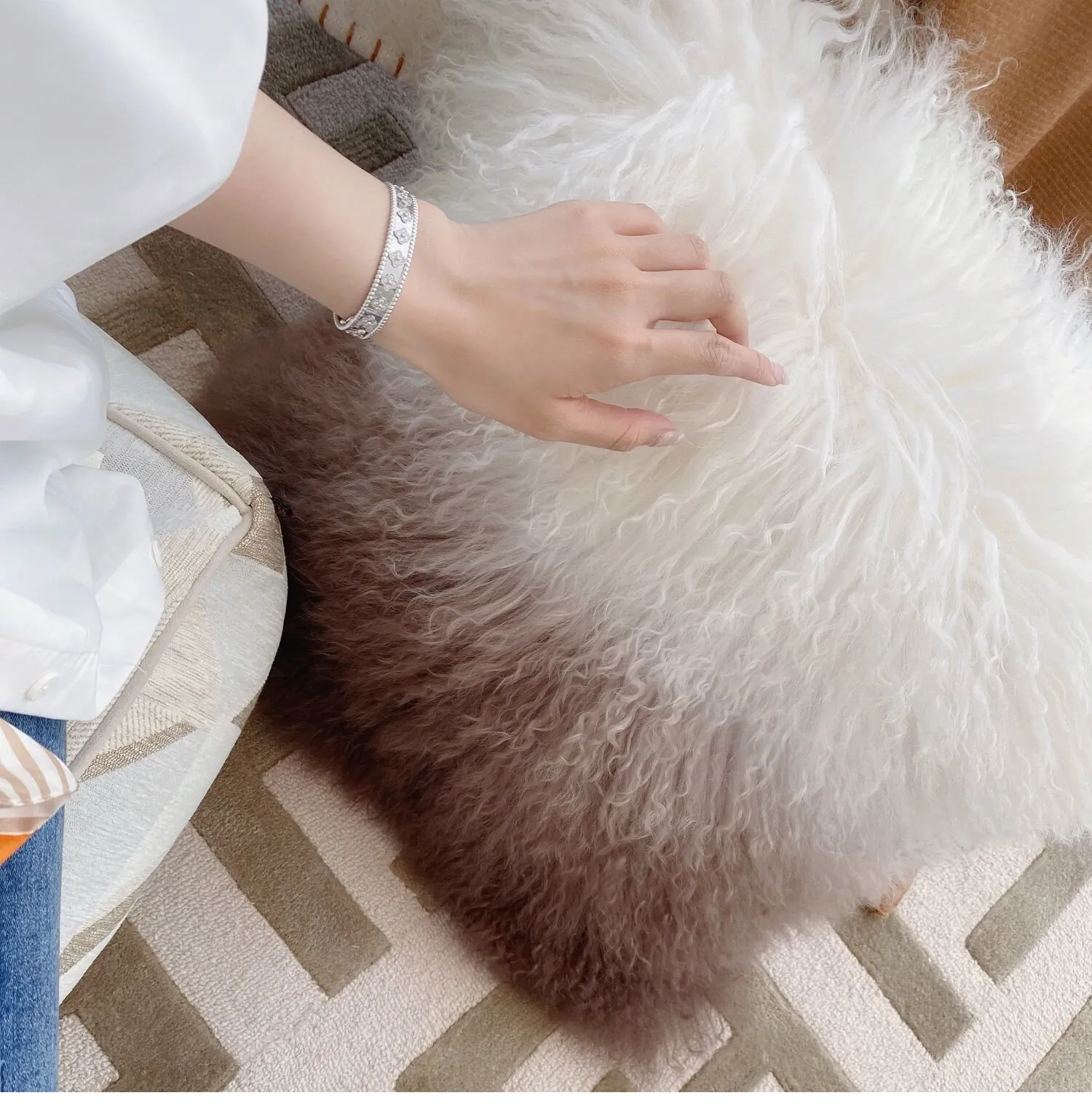 【ベージュ| 単色のラムウールクッション】