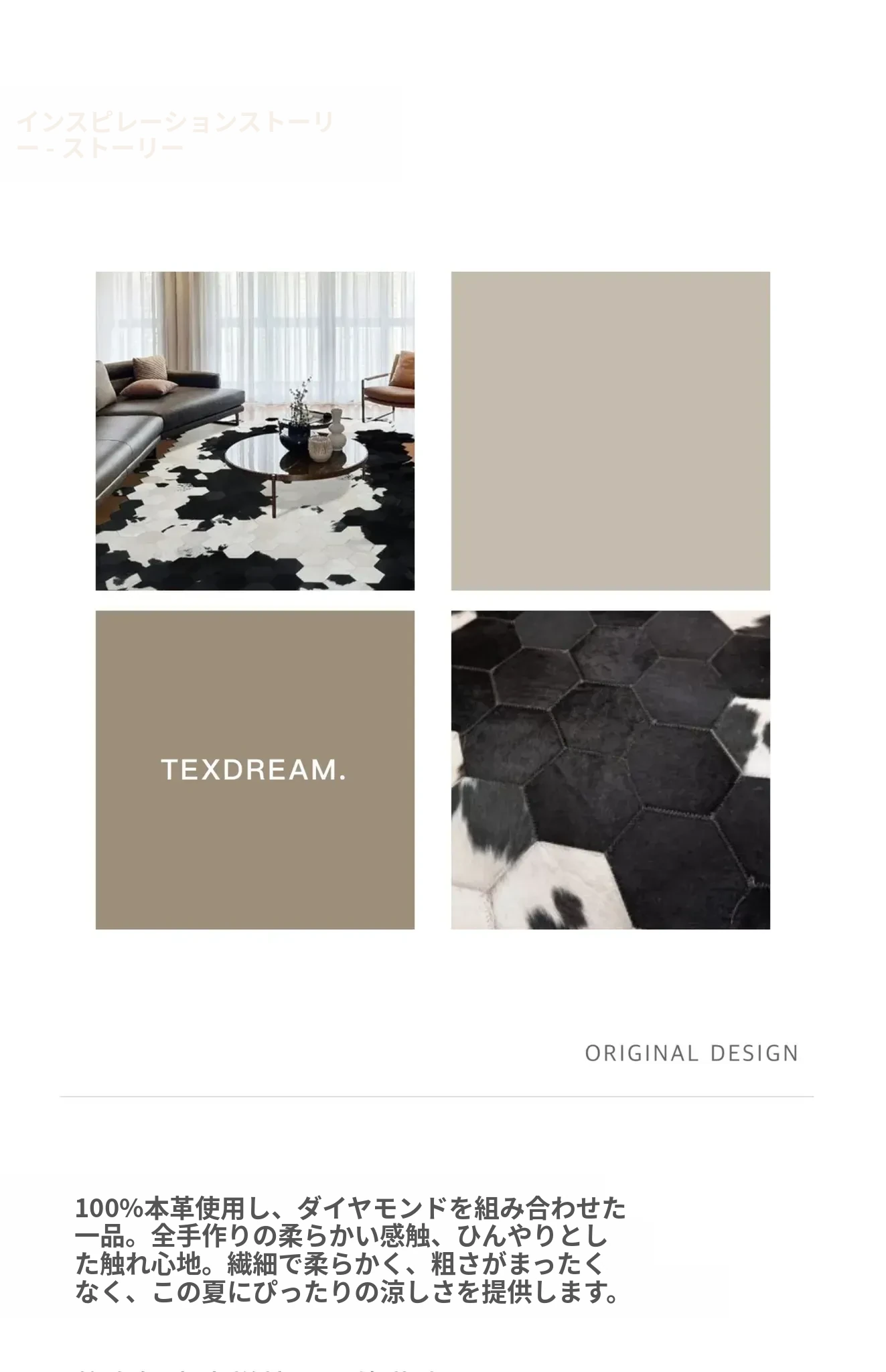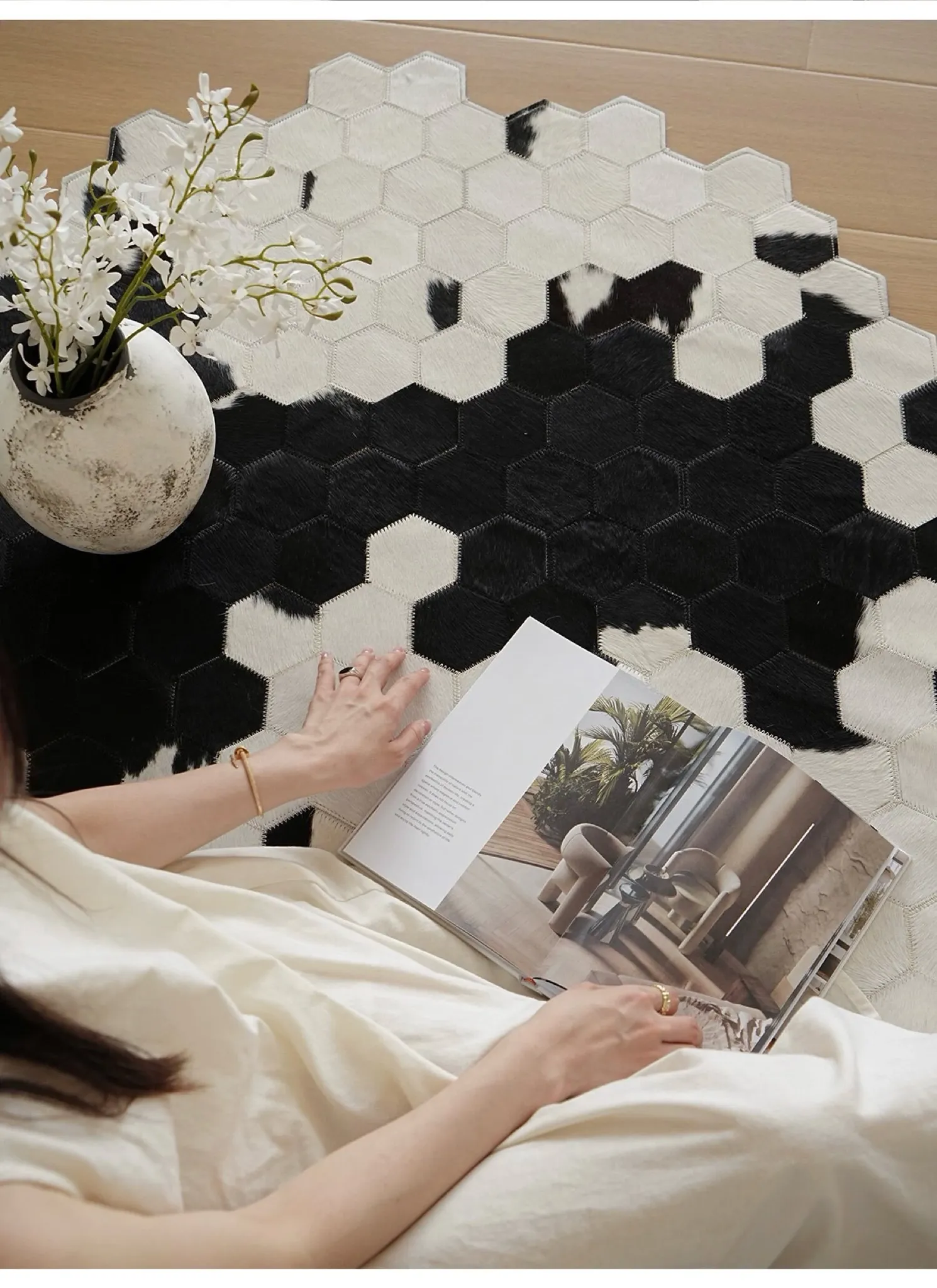 Texdreamのモダンラグジュアリー本革カーペット - ソファやコーヒーテーブルにぴったり!衣装部屋やベッドサイドでの贅沢なひとときを演出します。あなたの空間に洗練された雰囲気をプラス!