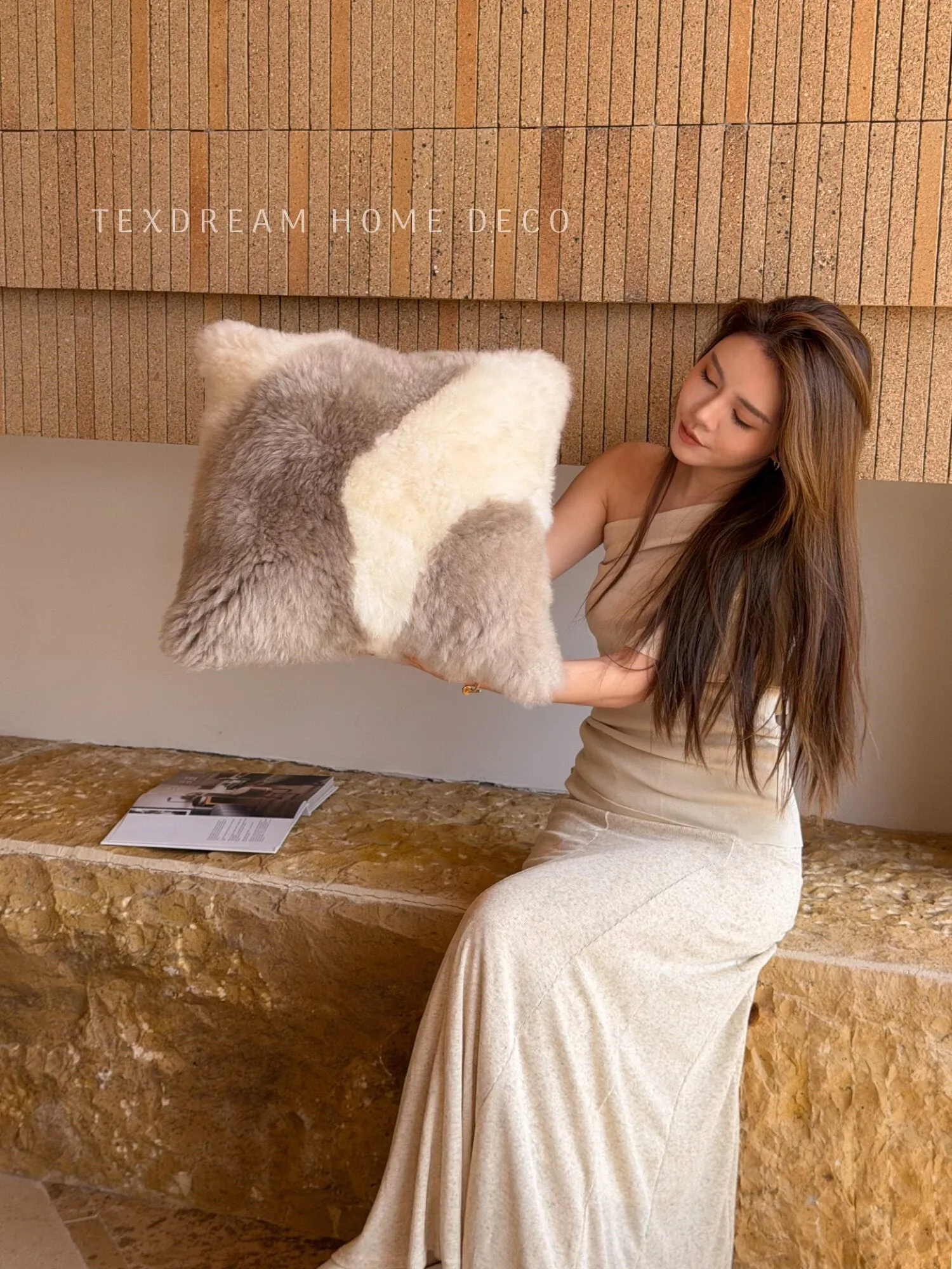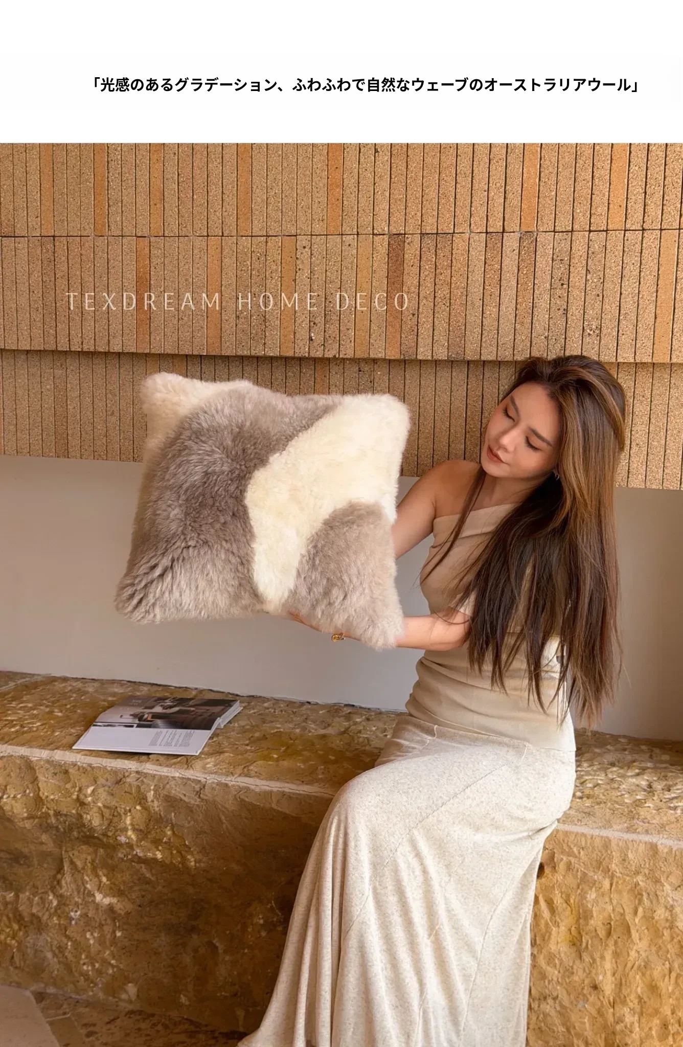 【45*45cm | オーストラリアンショートウールのリバーシブルクッション】