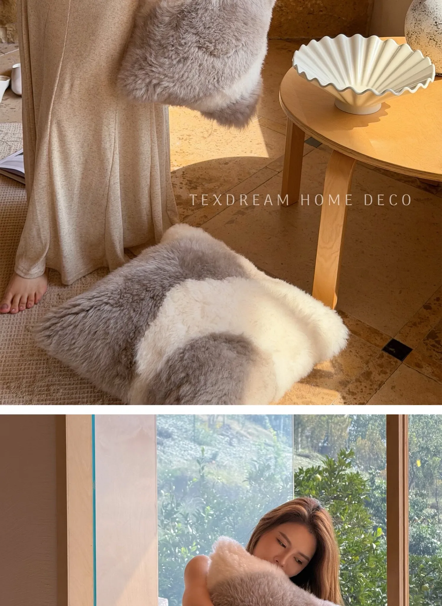 【30*50cm | オーストラリアンショートウールのリバーシブルクッション】