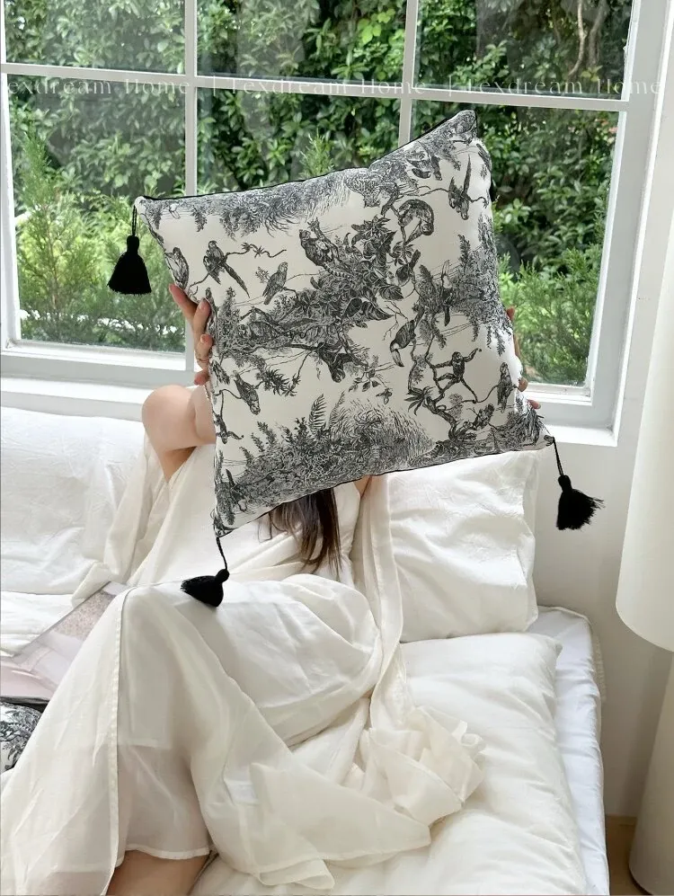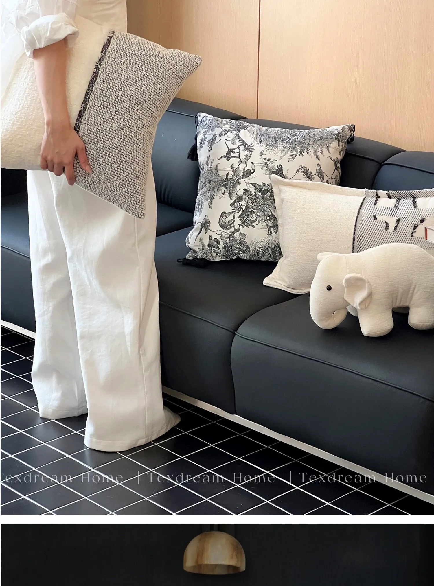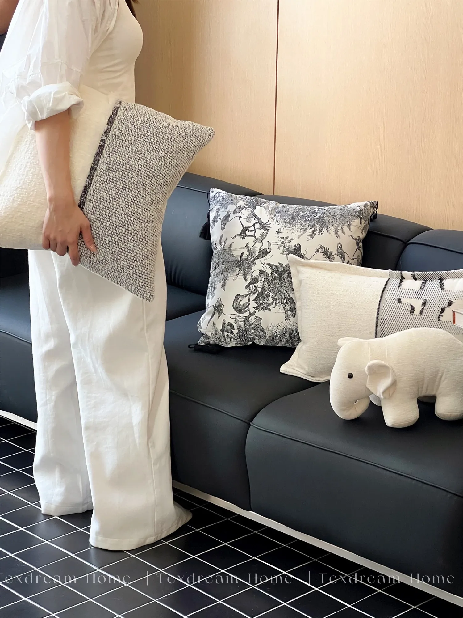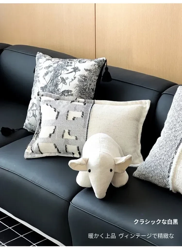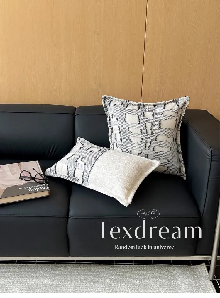 TEXDREAMの現代的でラグジュアリーなブラック&ホワイトソファクッションカバー|高級ホテルやゲストハウスにぴったり!中材付きで、快適な寝心地を提供します。
