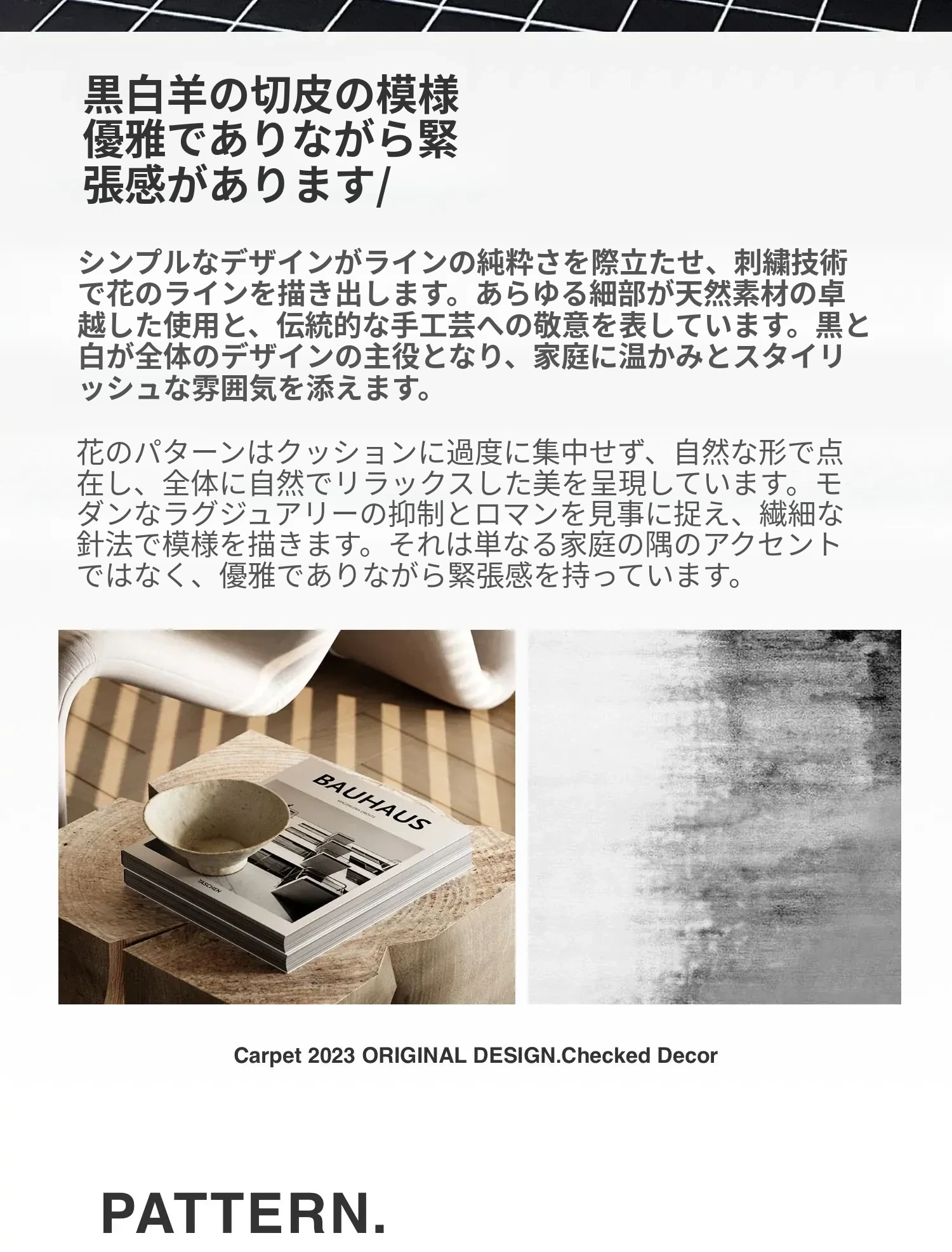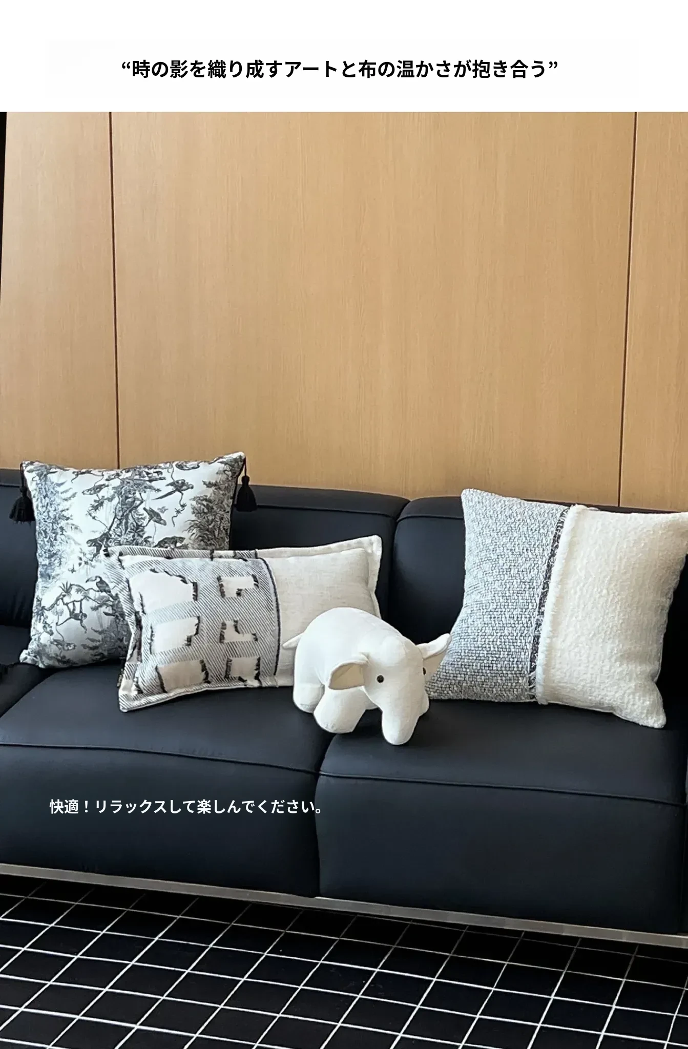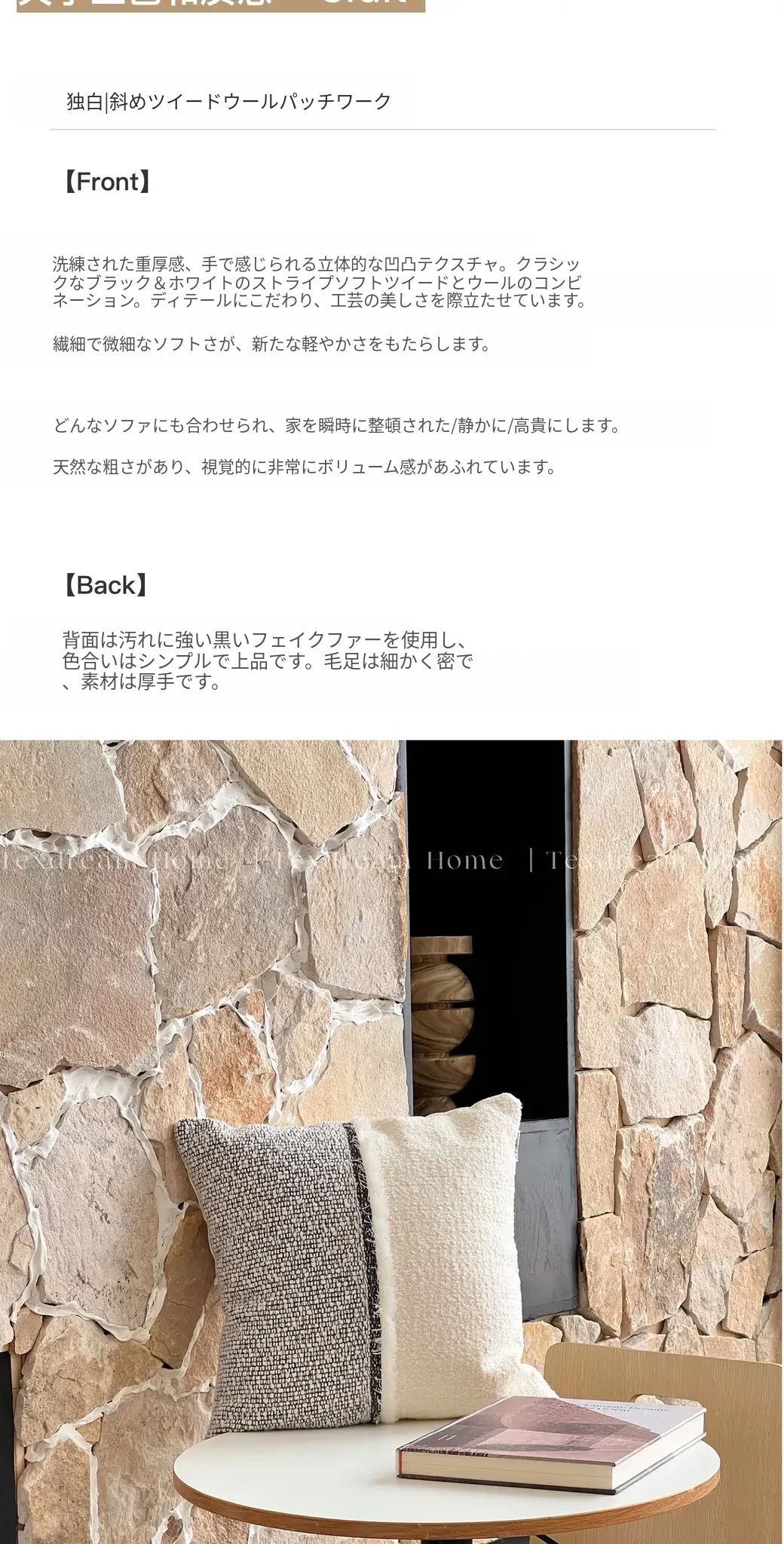 小香風ウールクッション | ブラックホワイトコラージュ