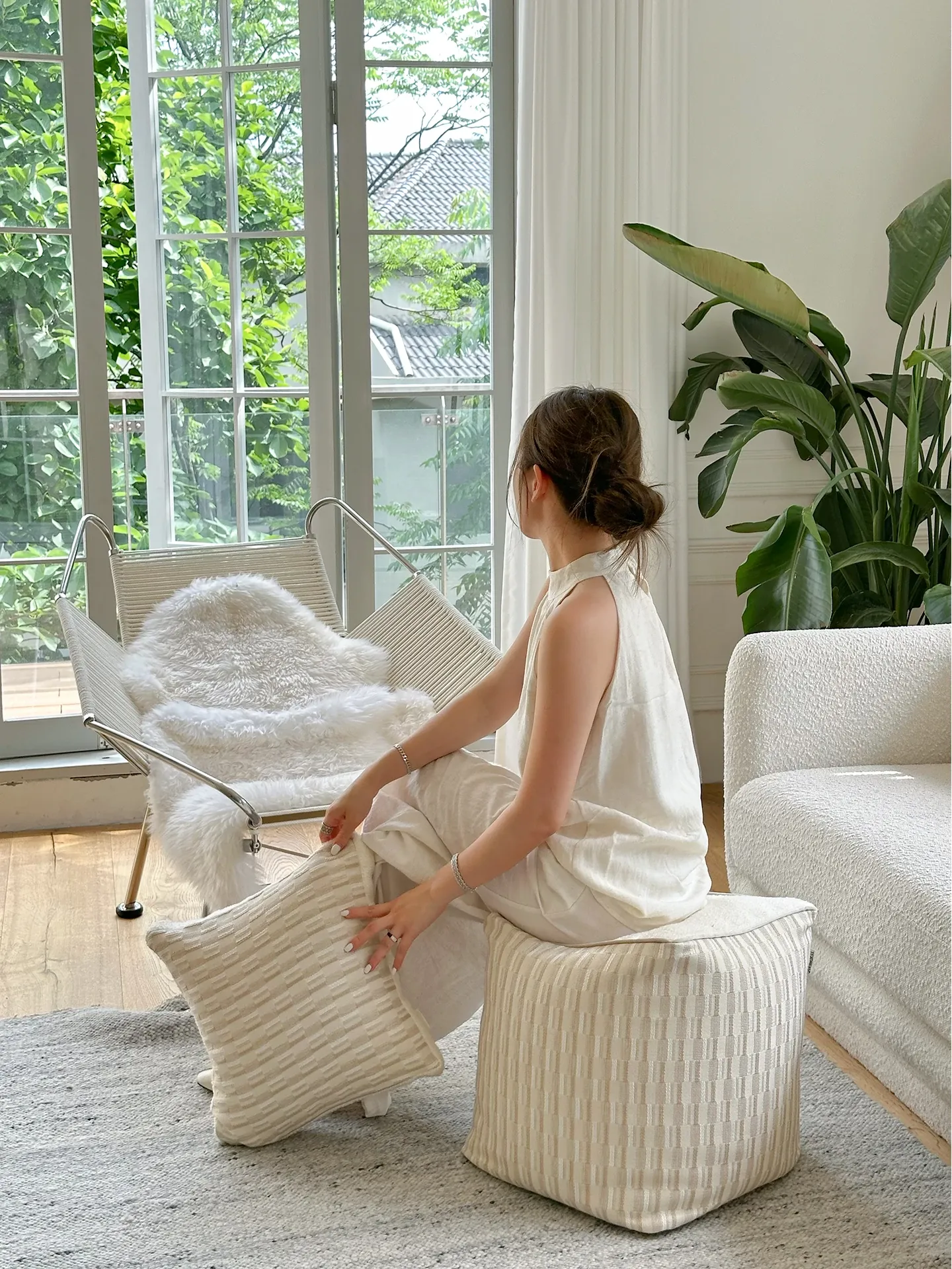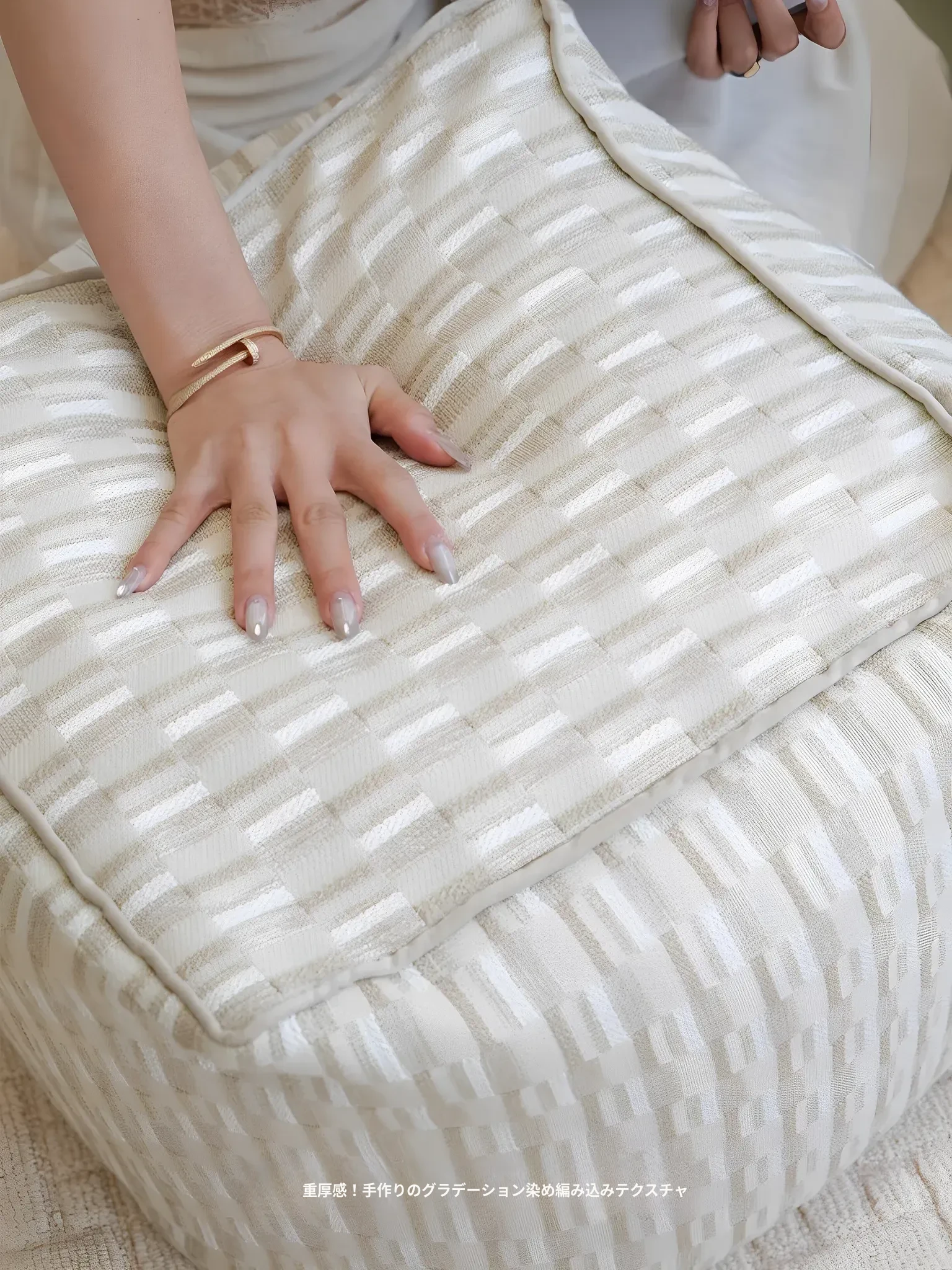 【ベージュチェックのスツール | 雪山テクスチャ】