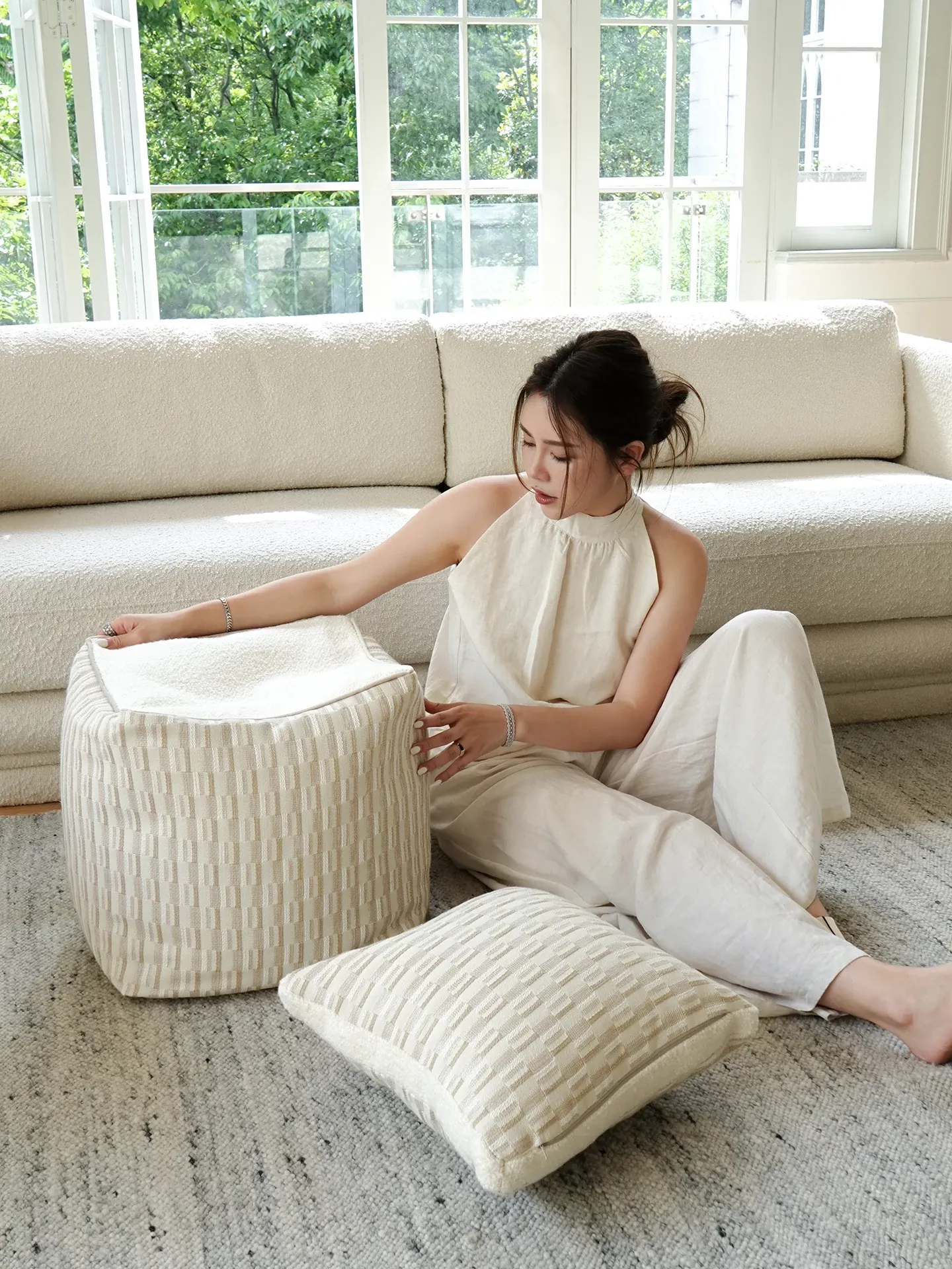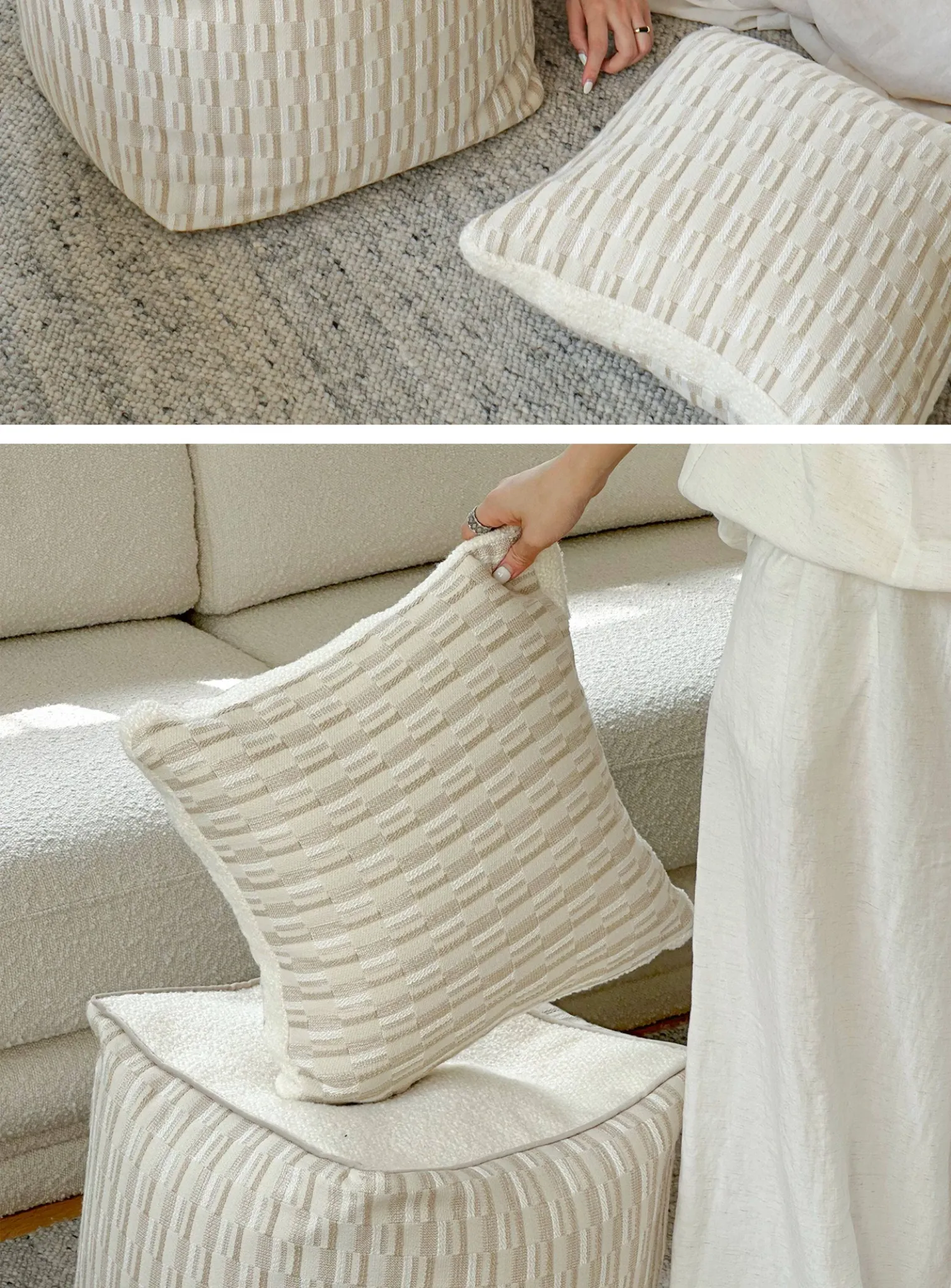 【ベージュチェックのスツール | カラフル同色】