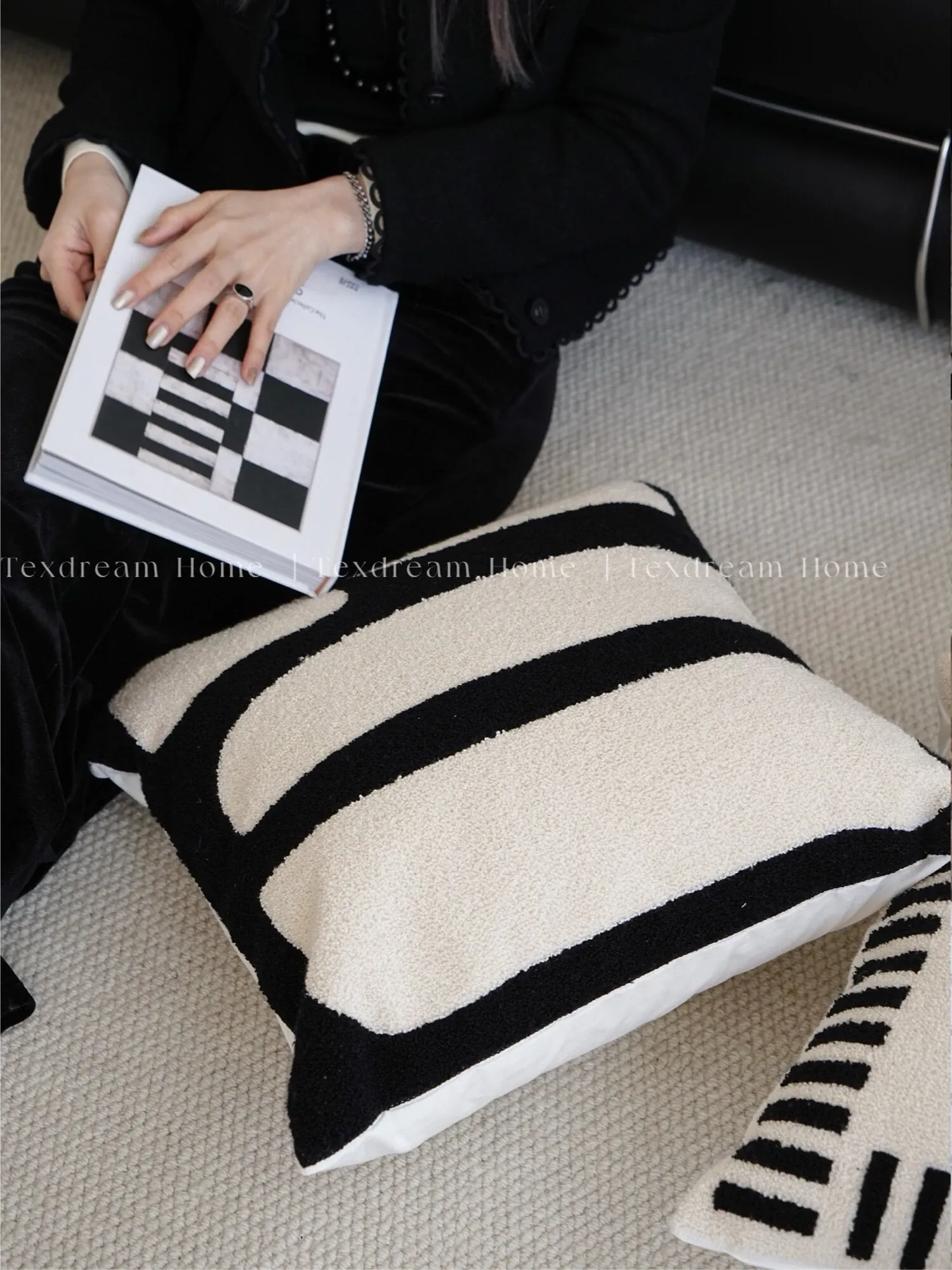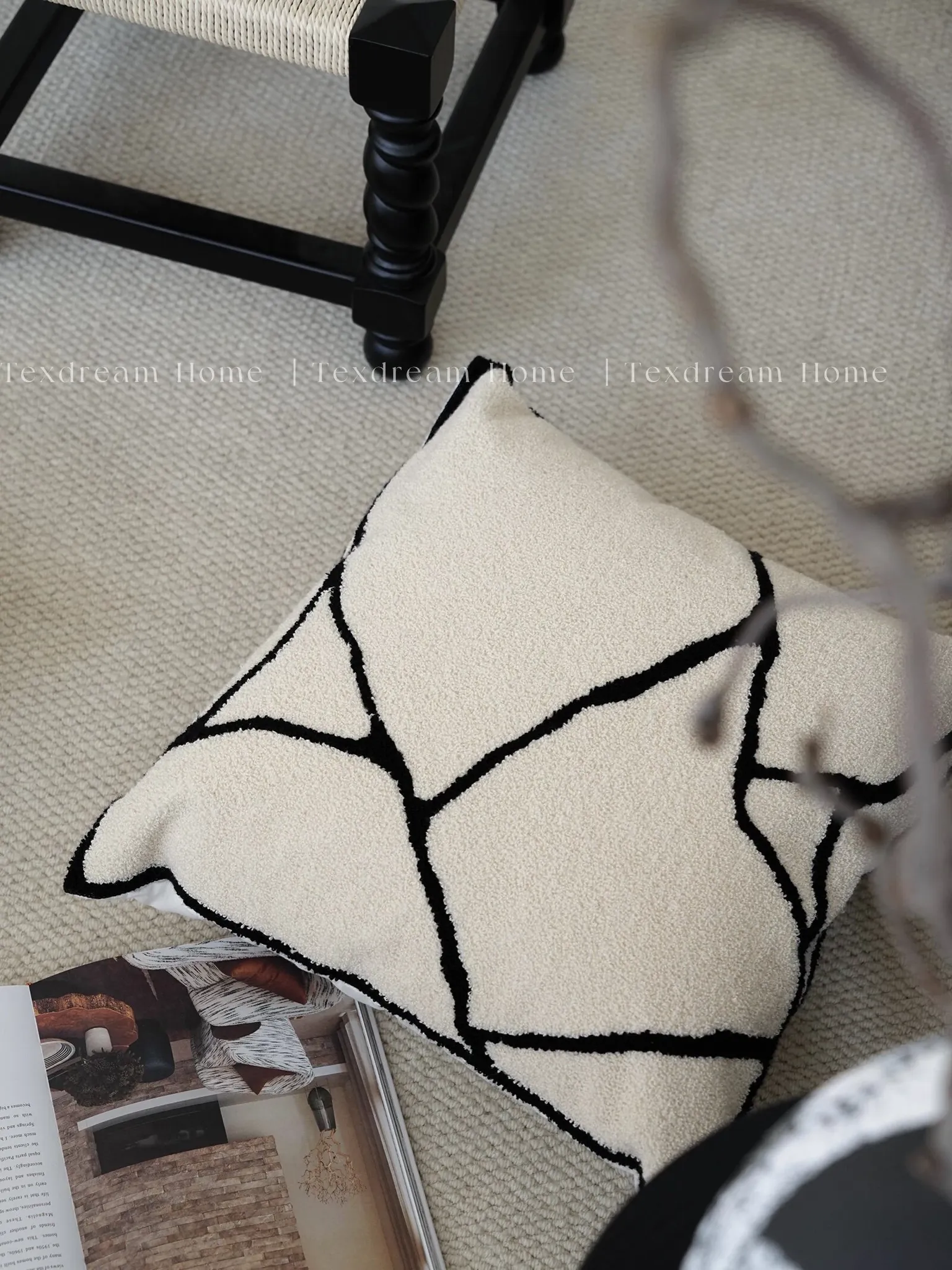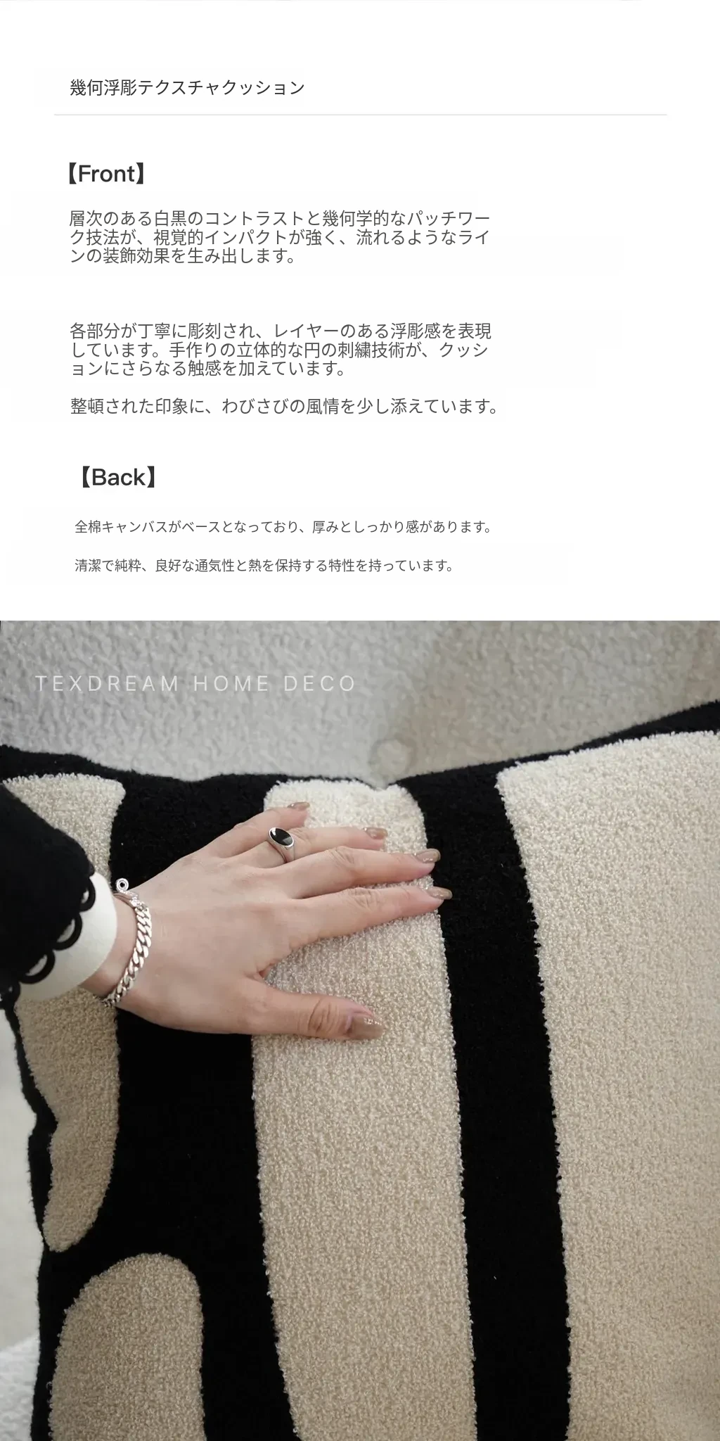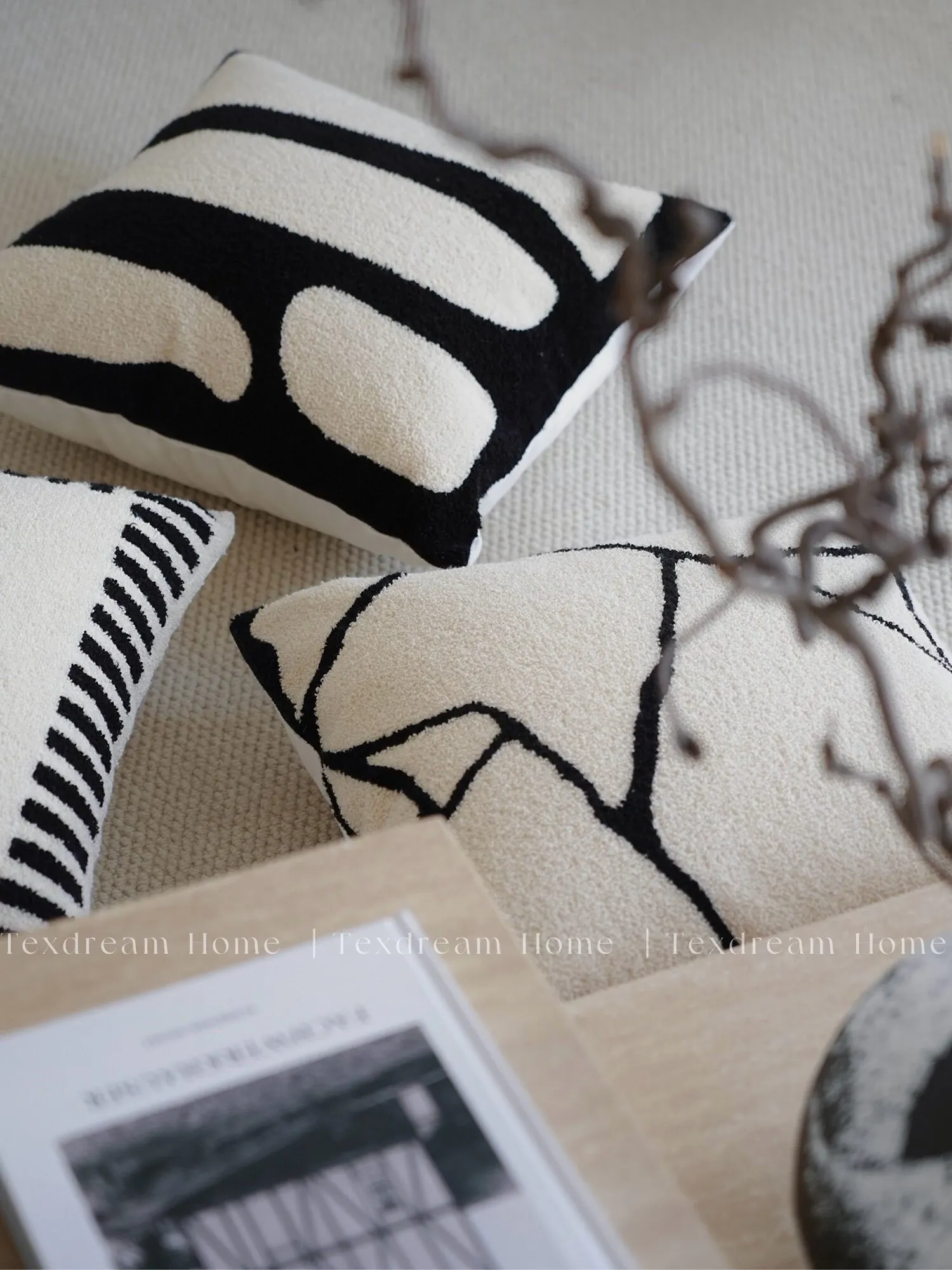 Texdreamの自然な風合いを楽しむ刺繍クッションカバー - シンプルで洗練された侘寂デザインのコットンリネン製、リビングやソファにぴったりのスタイリッシュなアクセント。