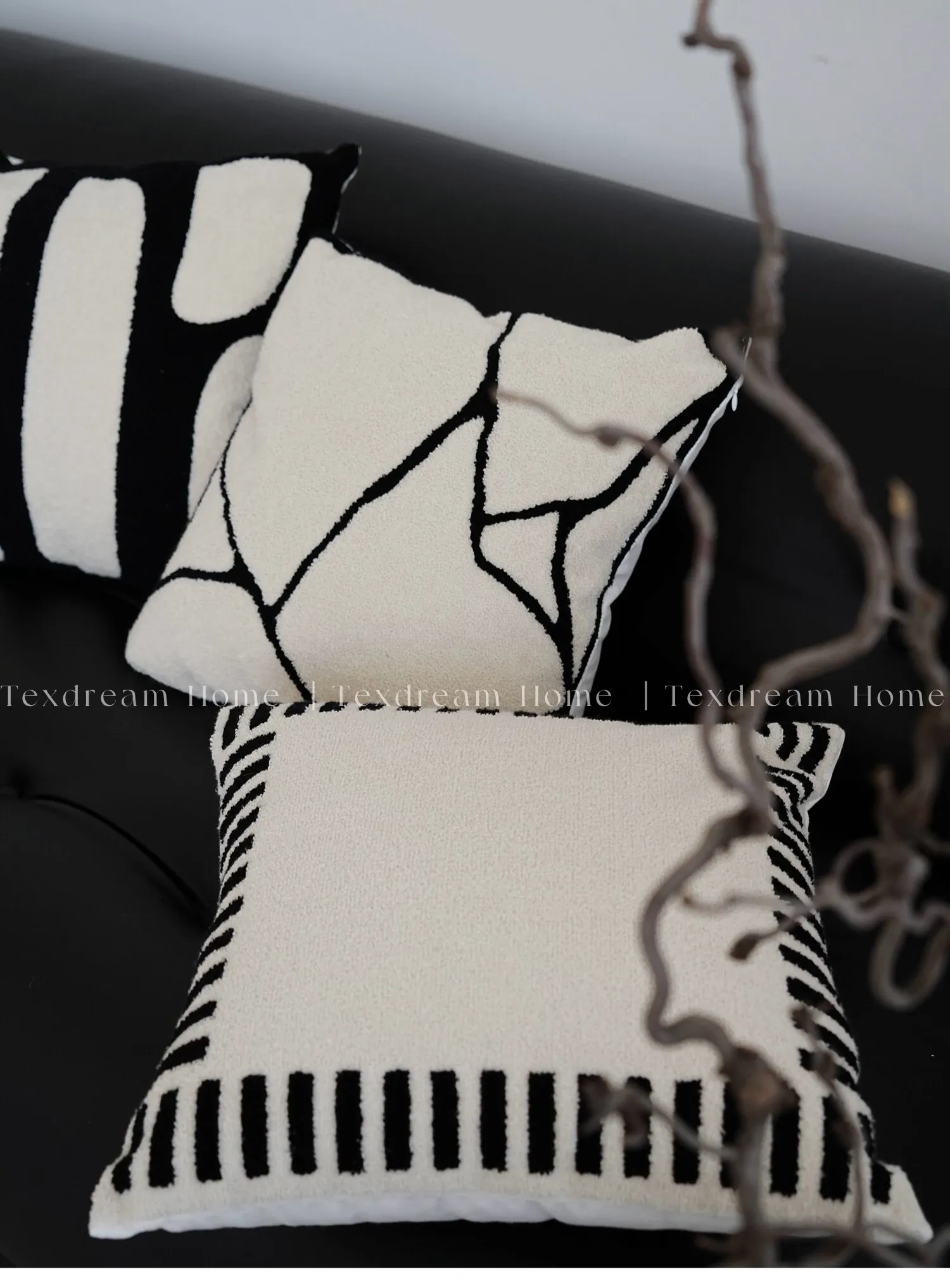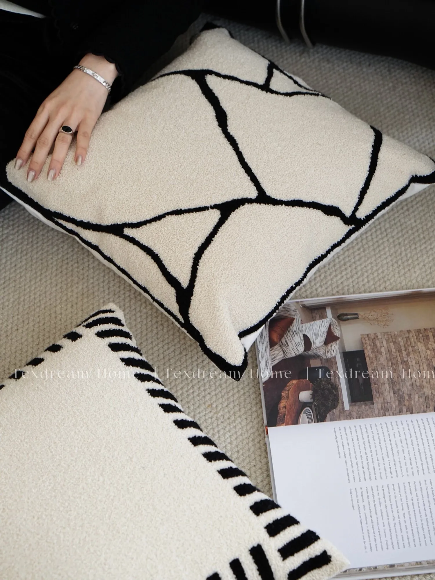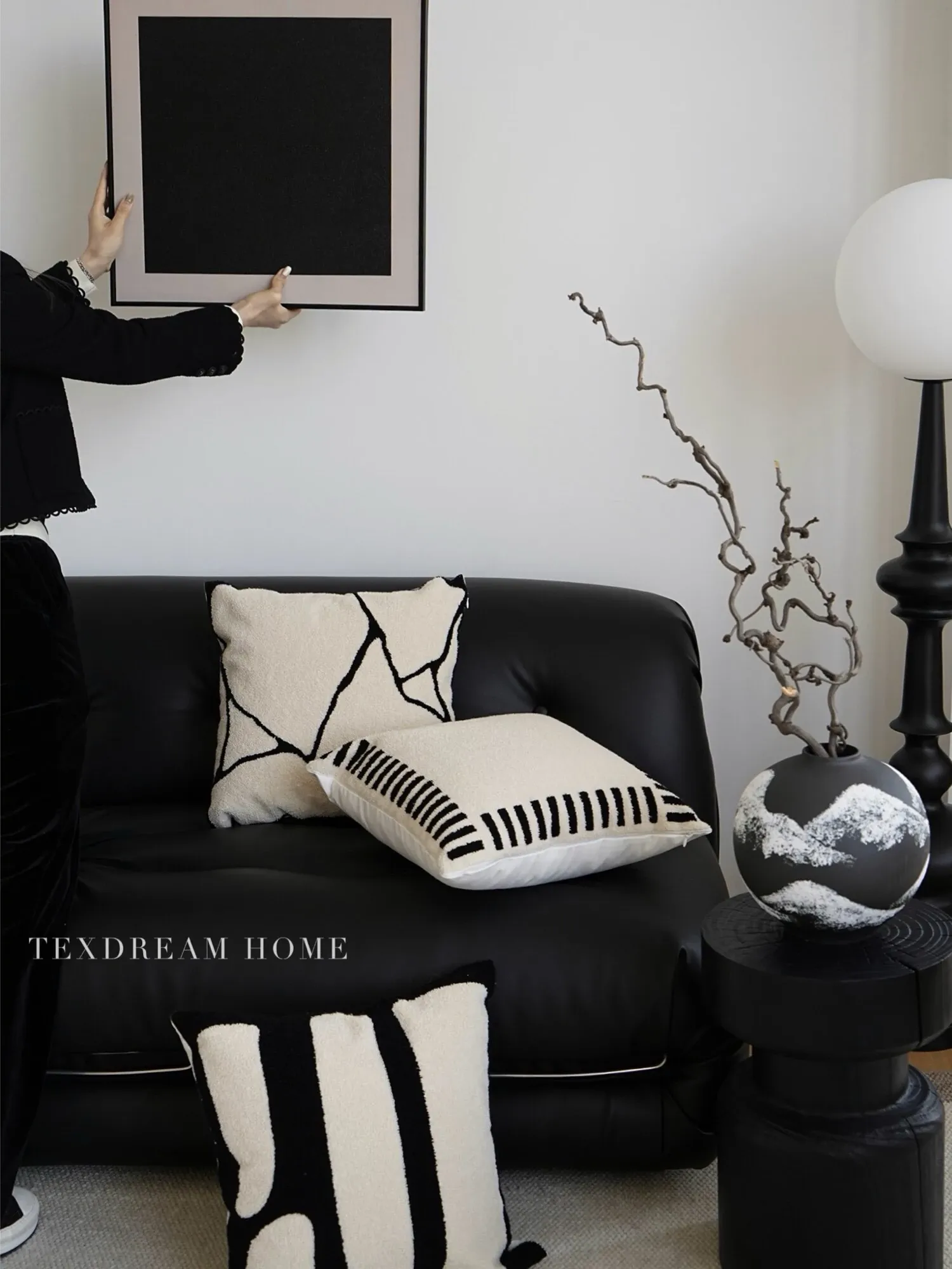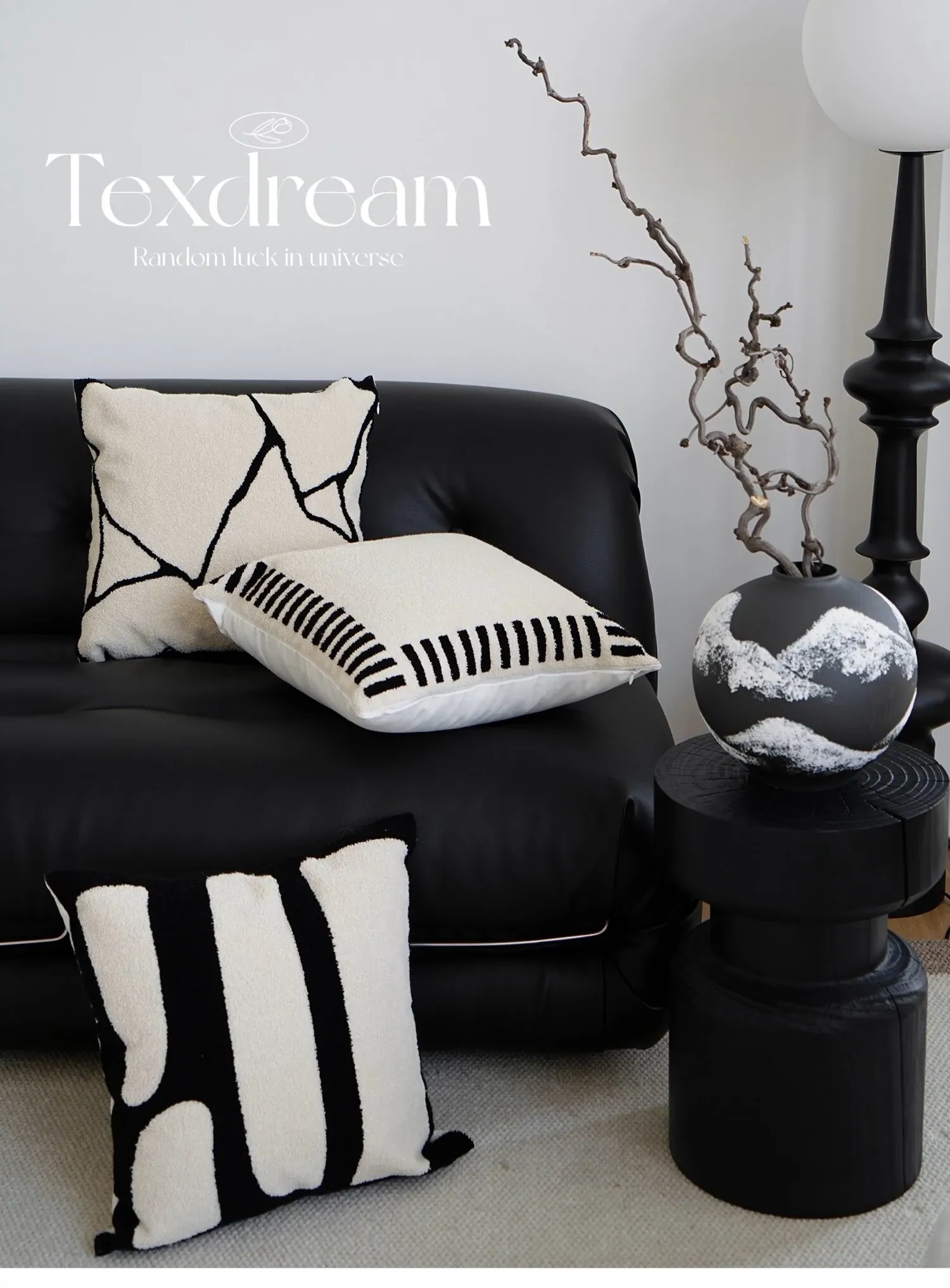 Texdreamの自然な風合いを楽しむ刺繍クッションカバー - シンプルで洗練された侘寂デザインのコットンリネン製、リビングやソファにぴったりのスタイリッシュなアクセント。