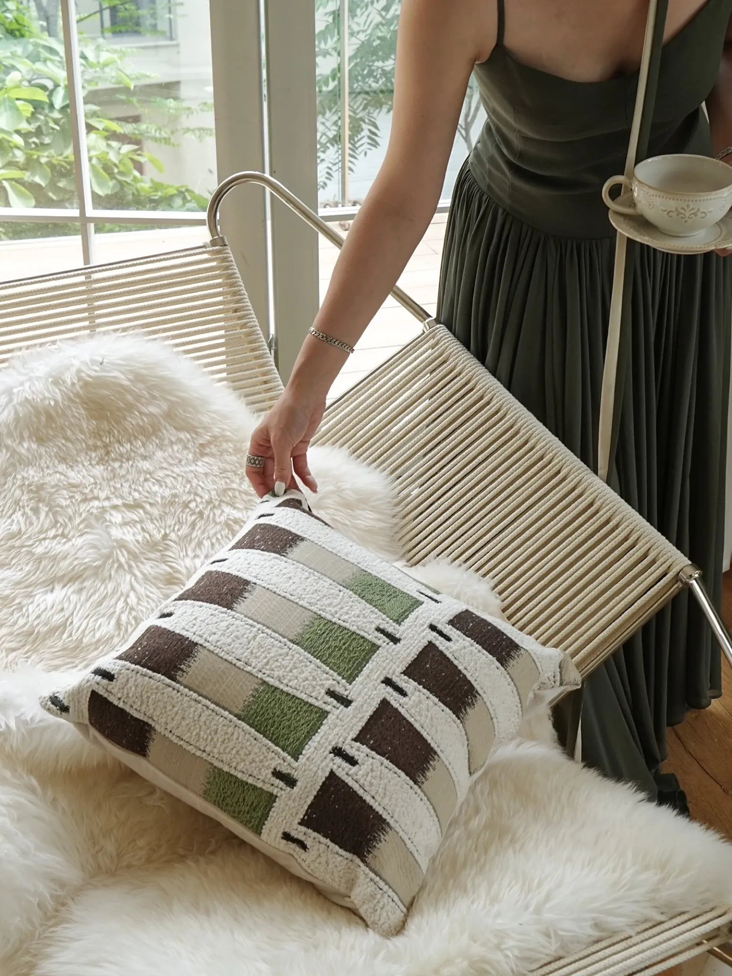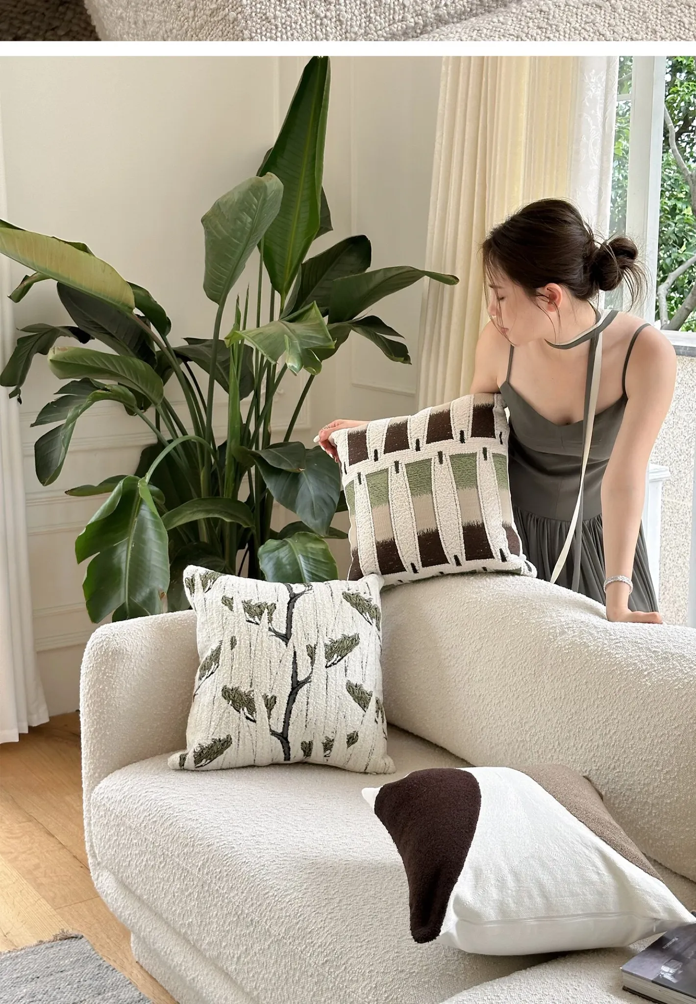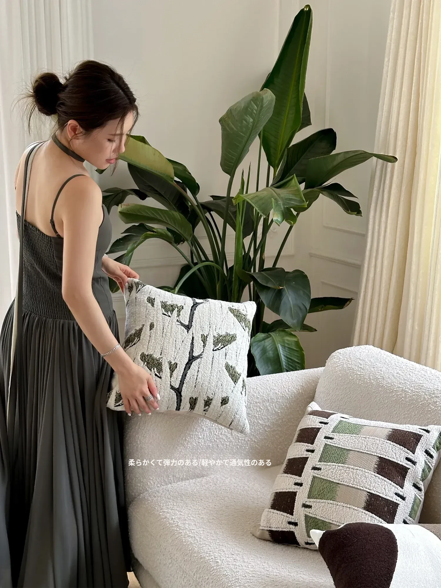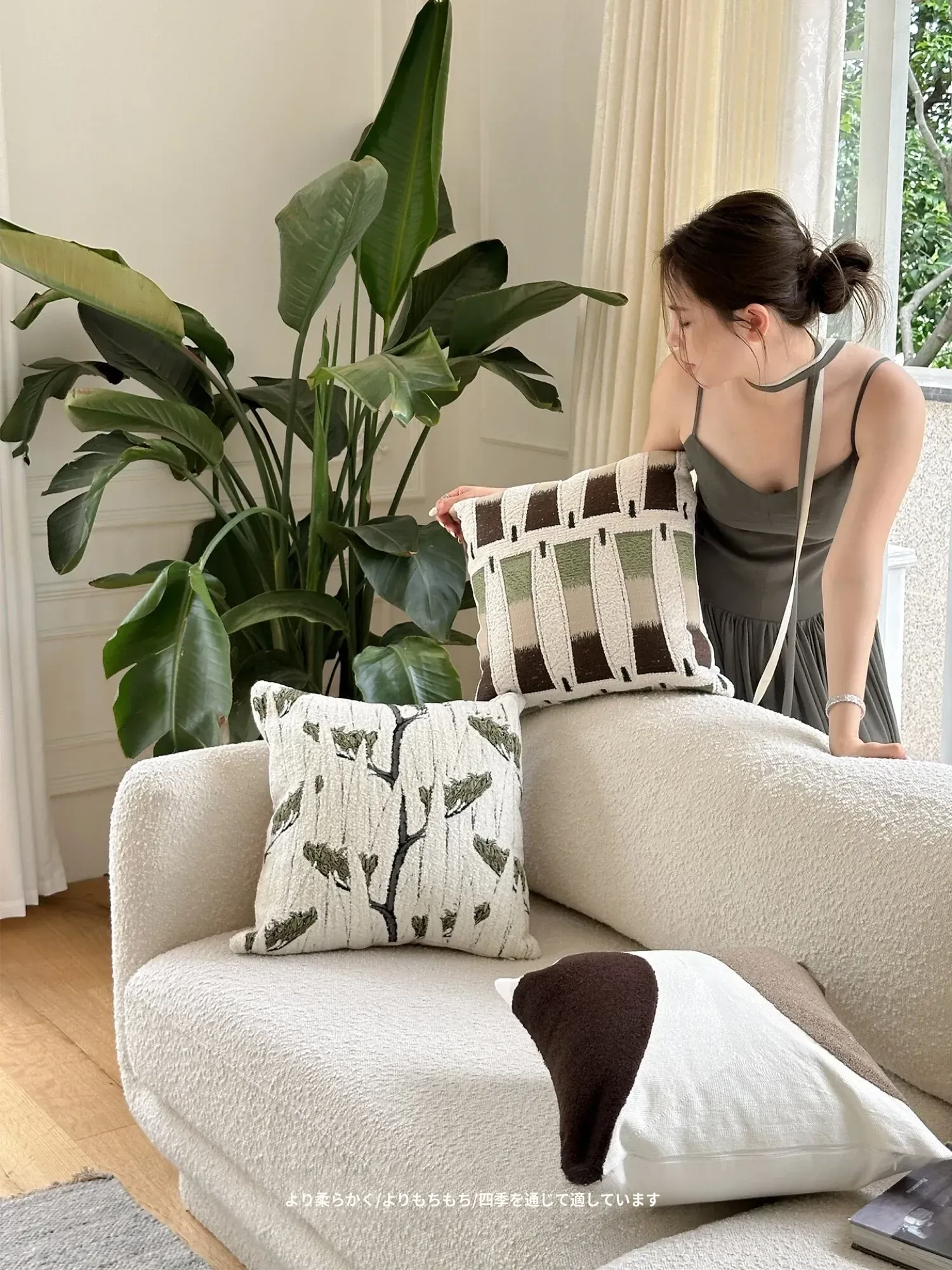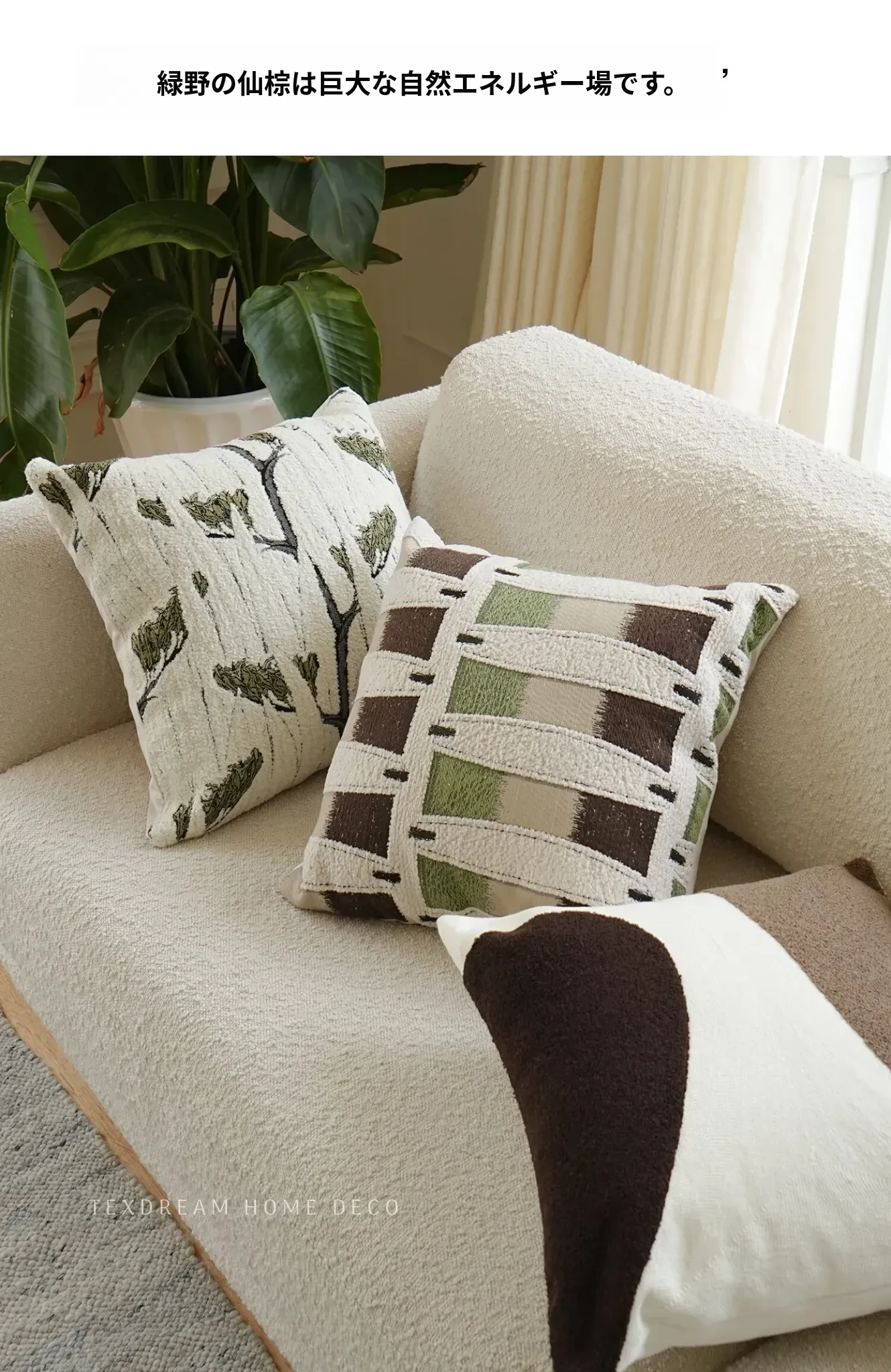TEXDREAM ナチュラルブレス 抱き枕|おしゃれなインテリアにぴったりなフレンチビンテージスタイルのソファクッション|心地よいリラックス空間を演出する、寝室やリビングに最適なアイテム!