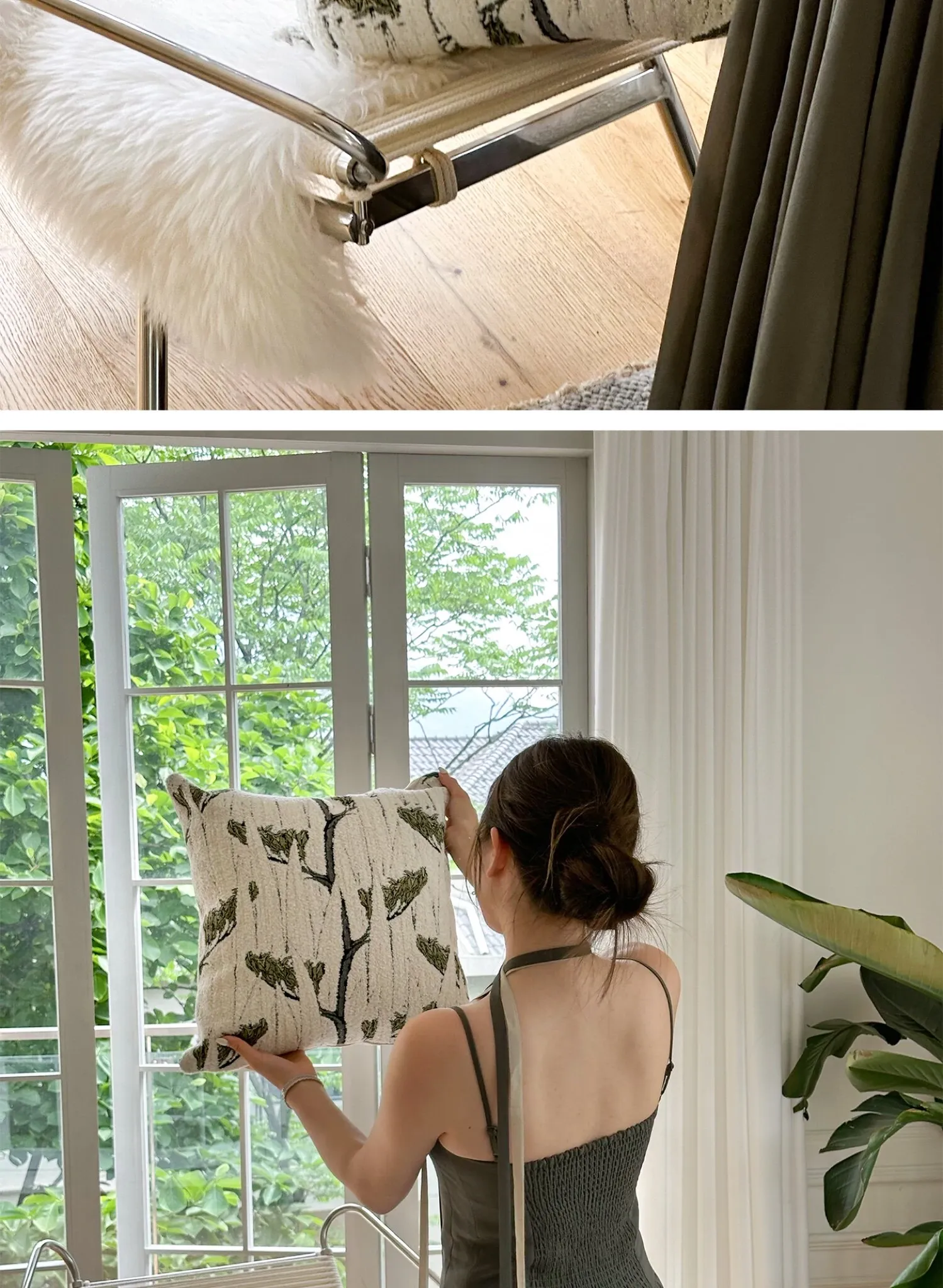 【ブラウンブルーのジャングルクッション】