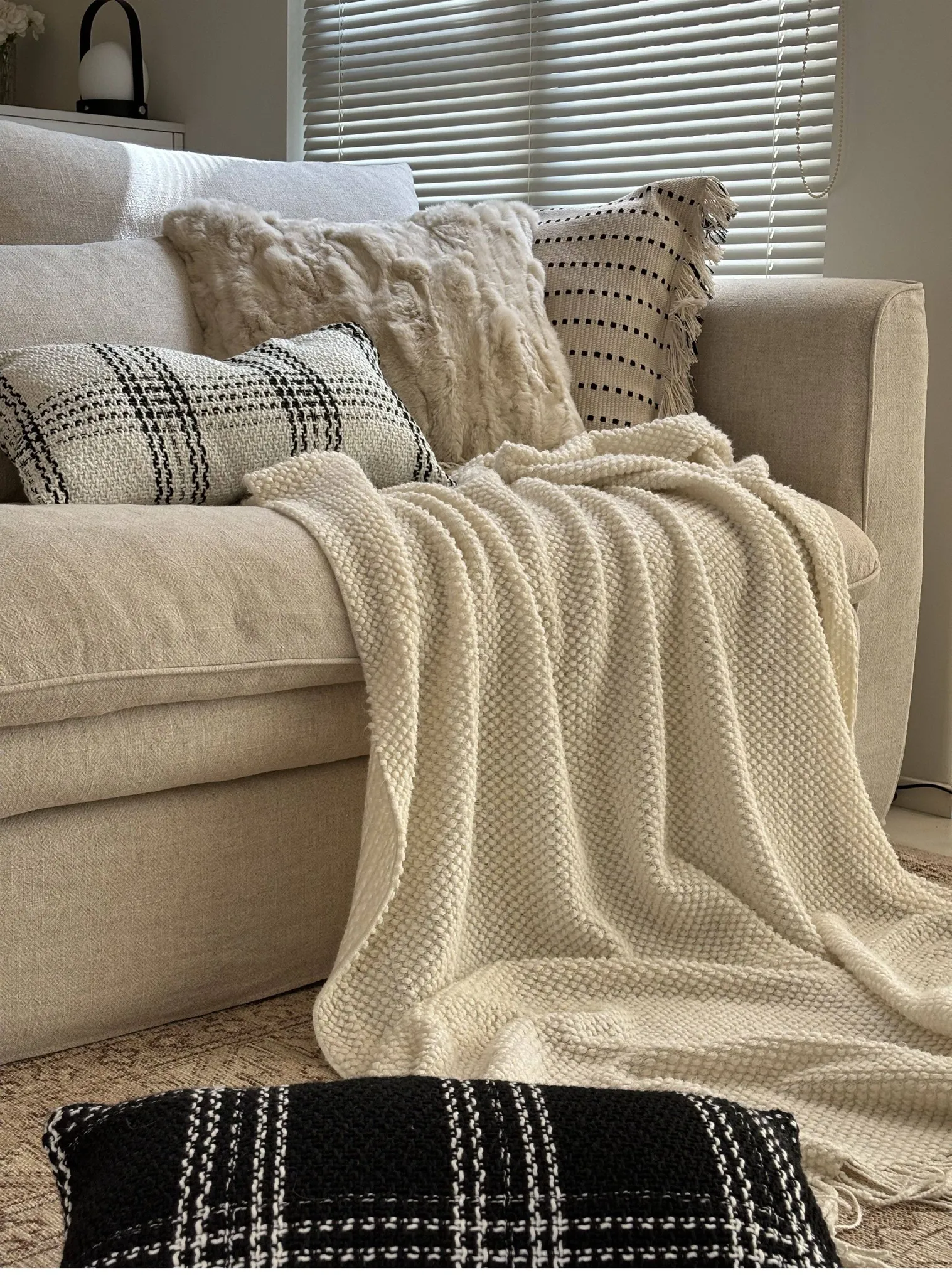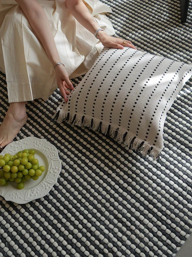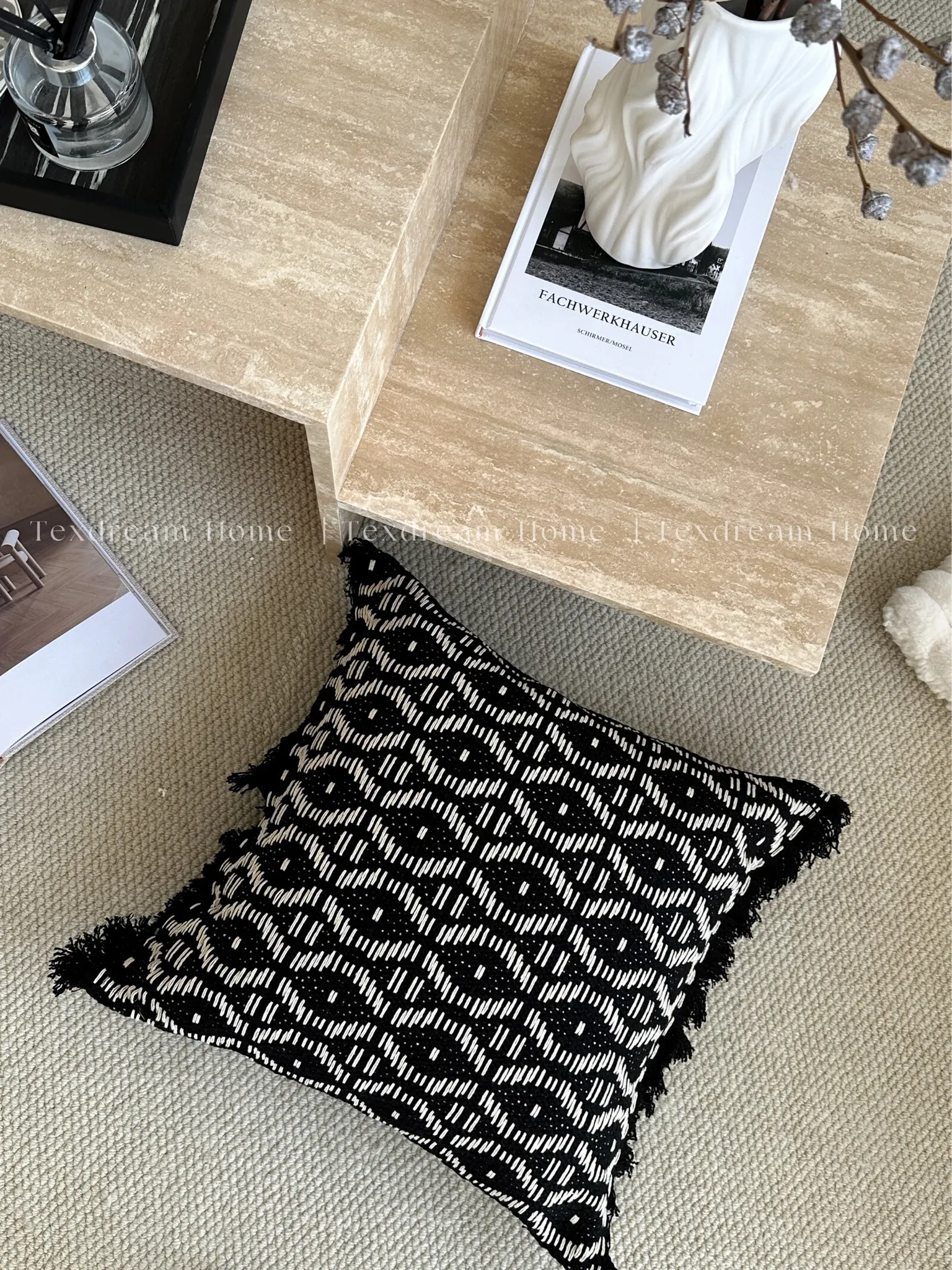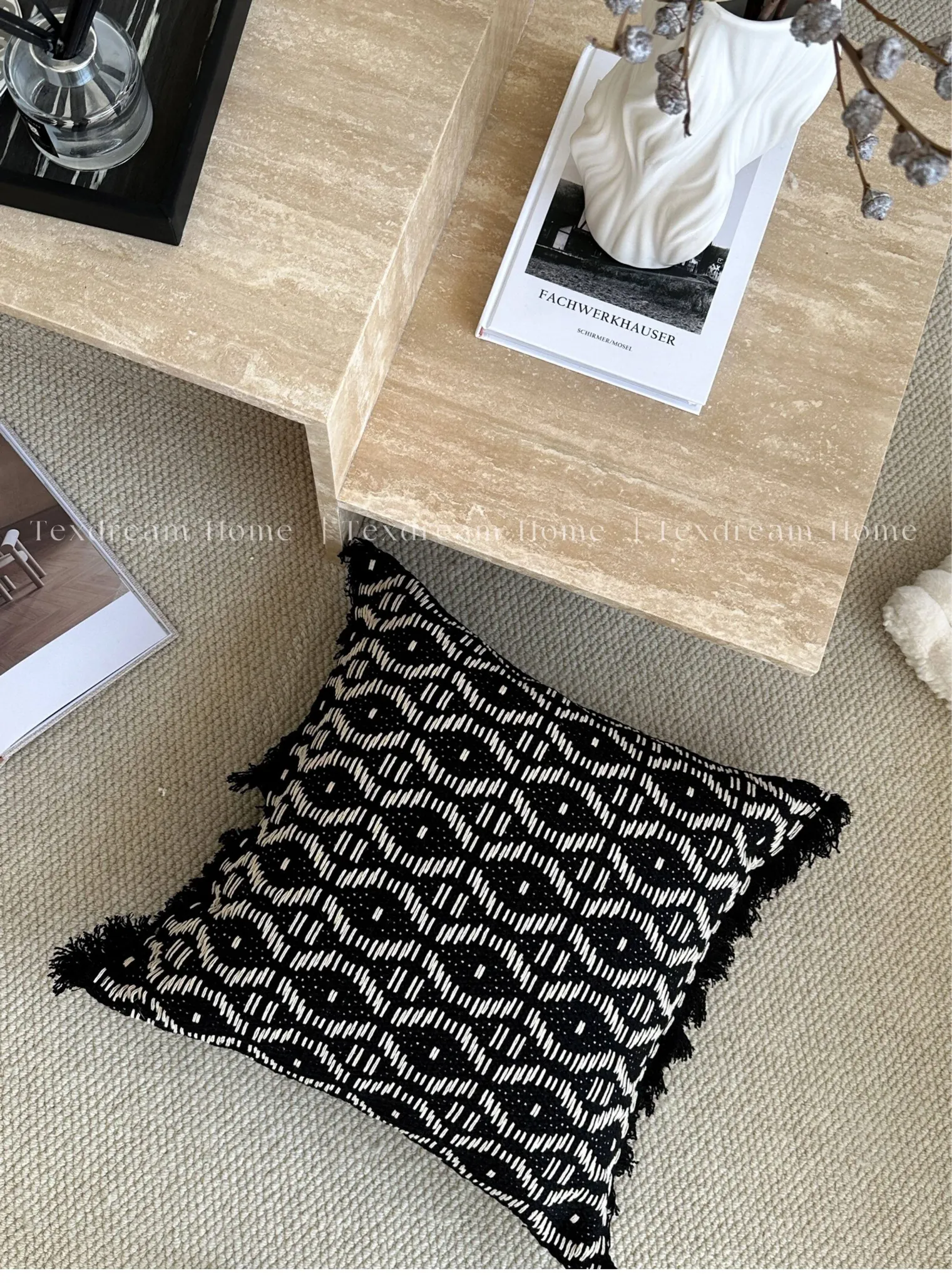 Texdreamの侘び寂び風リネンブラックホワイトミニマリストソファクッションカバー、上質な寝室用クッション付き!シンプルながらも洗練されたデザインで、あなたの空間を引き立てます。