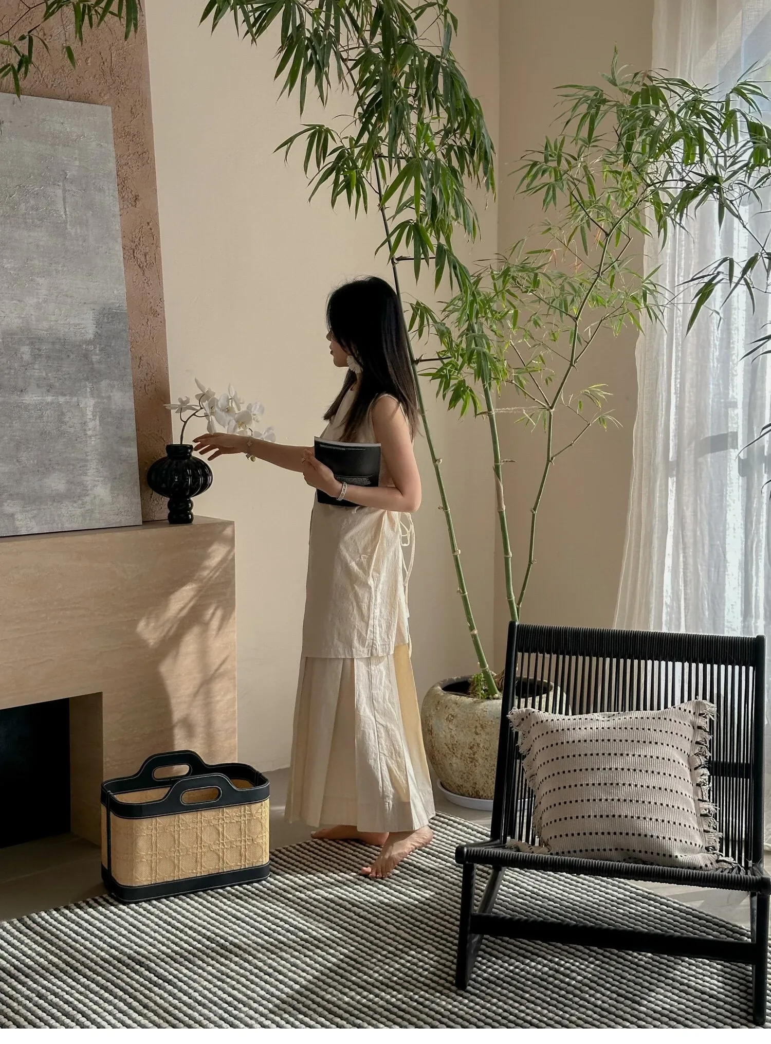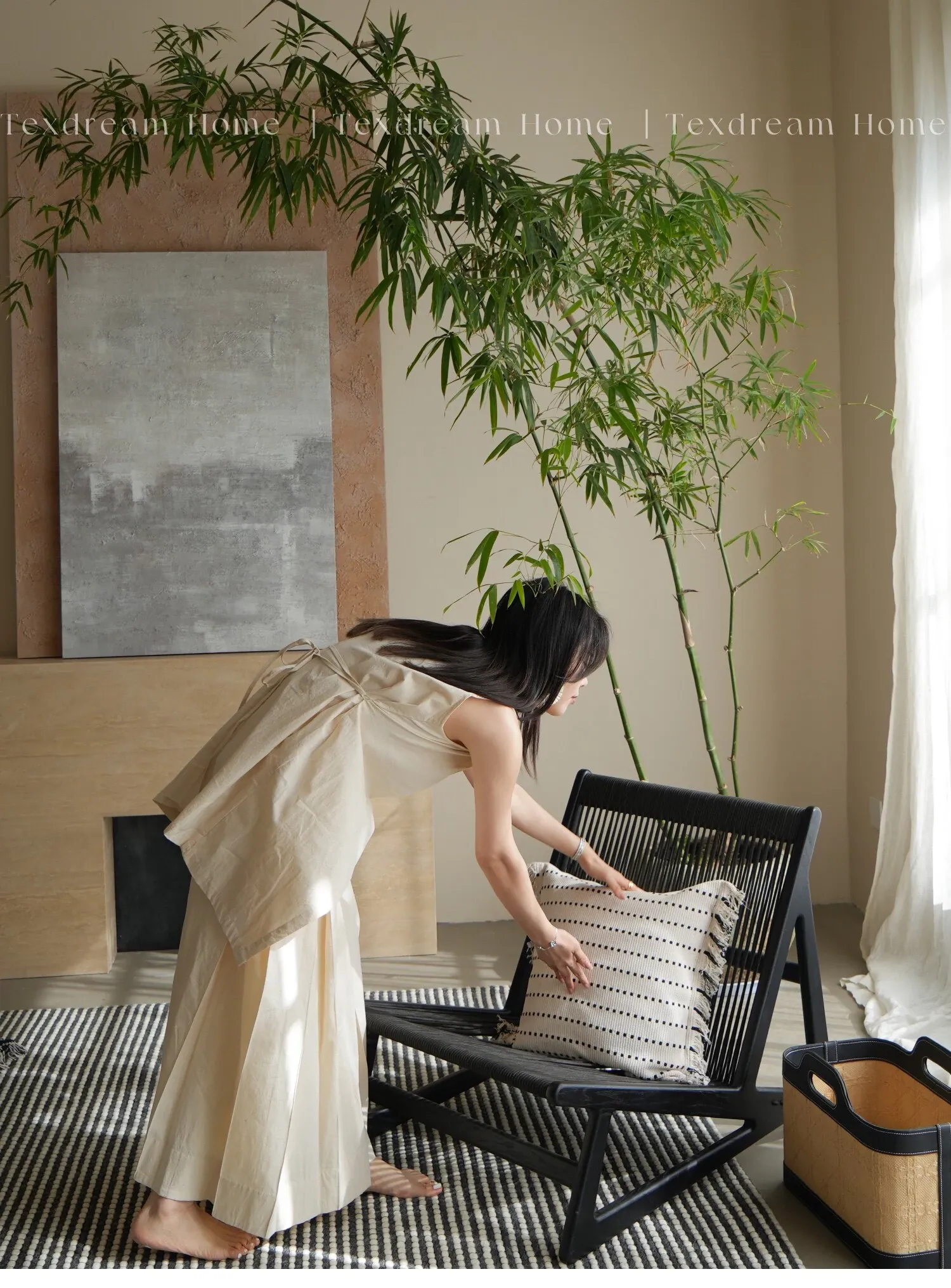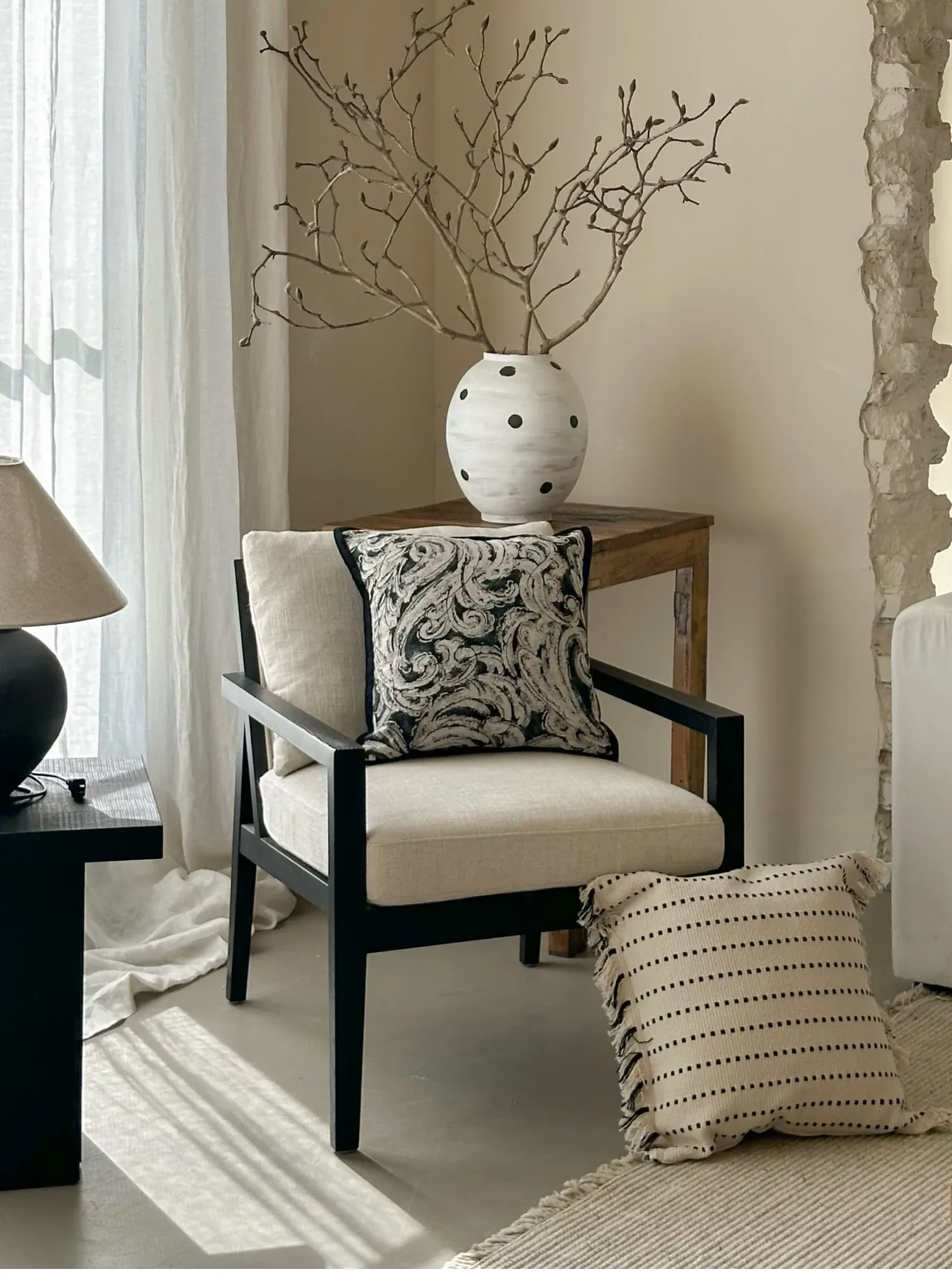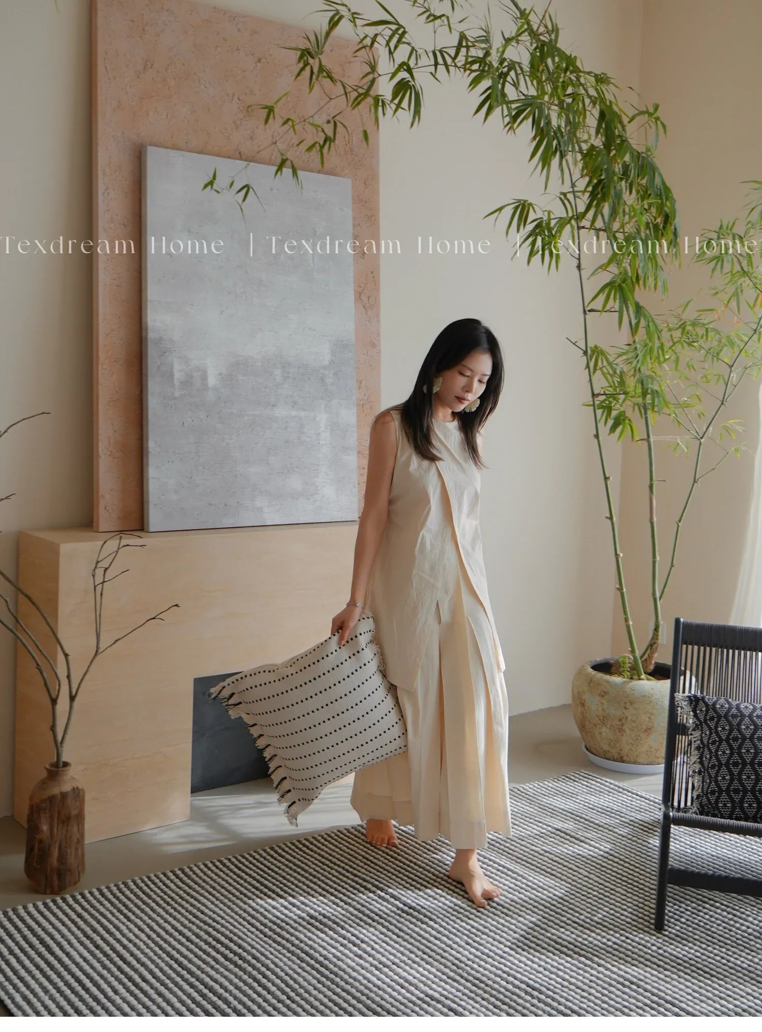 Texdreamの侘び寂び風リネンブラックホワイトミニマリストソファクッションカバー、上質な寝室用クッション付き!シンプルながらも洗練されたデザインで、あなたの空間を引き立てます。