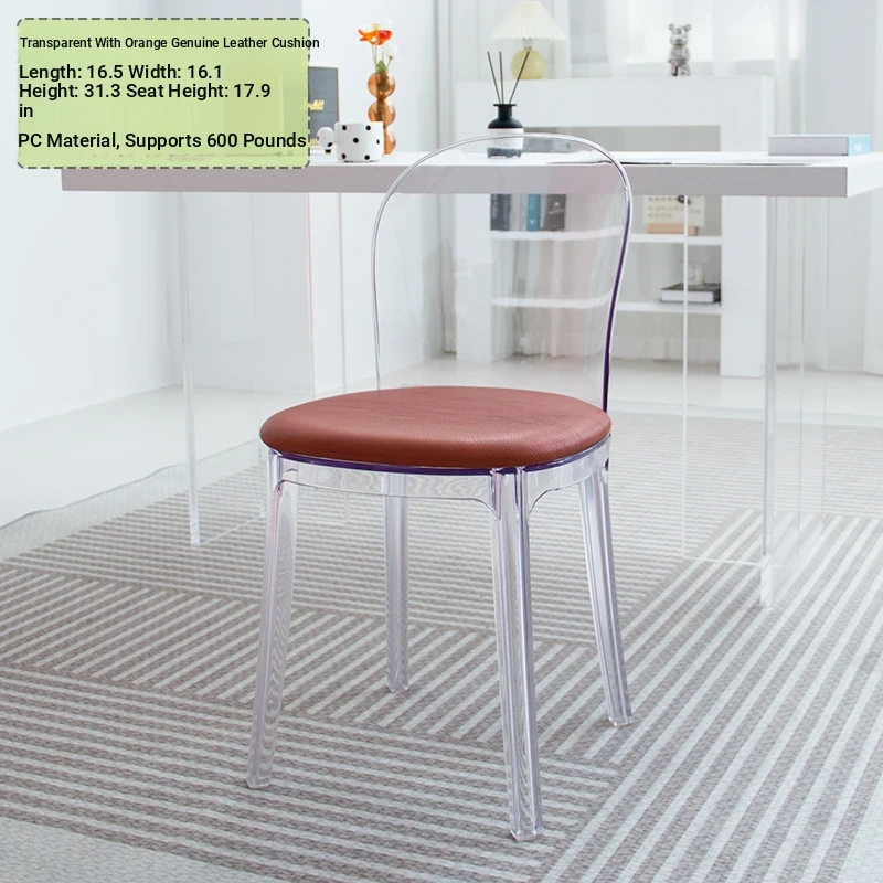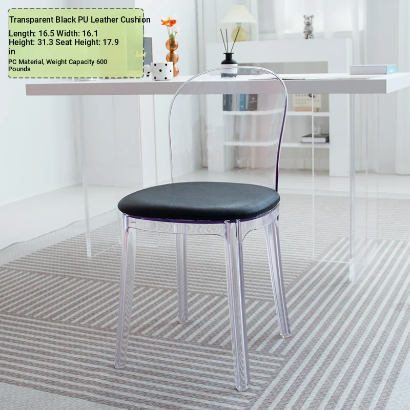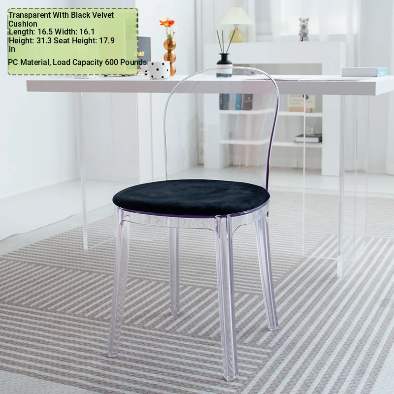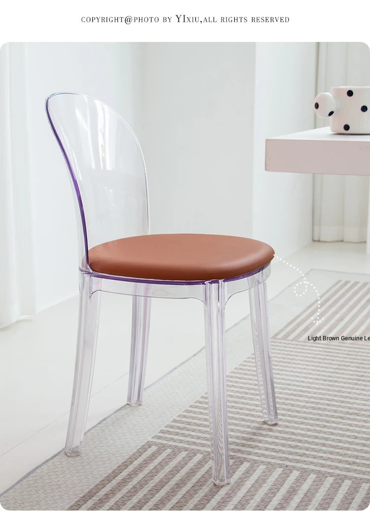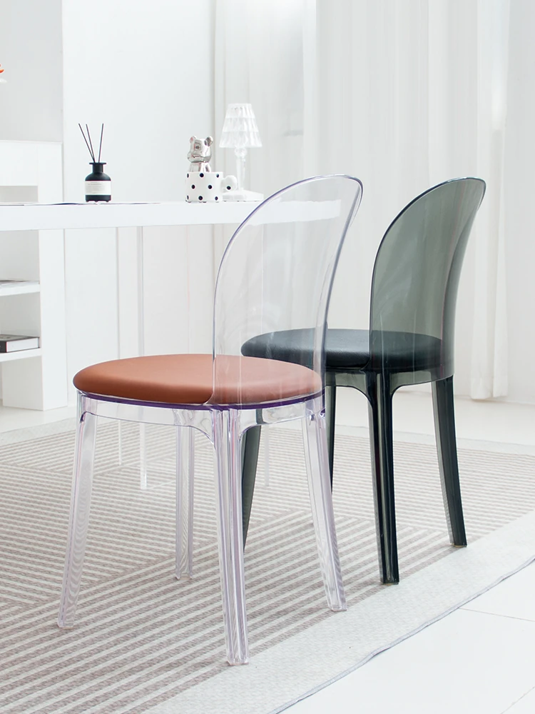 Transparent Acrylic Crystal Chair - Nordic Trendy Designer Modern Minimalist Plastic Back Dining Chair for Home Island Bar