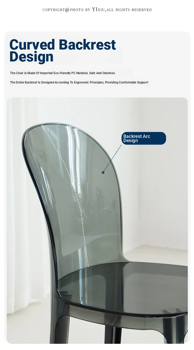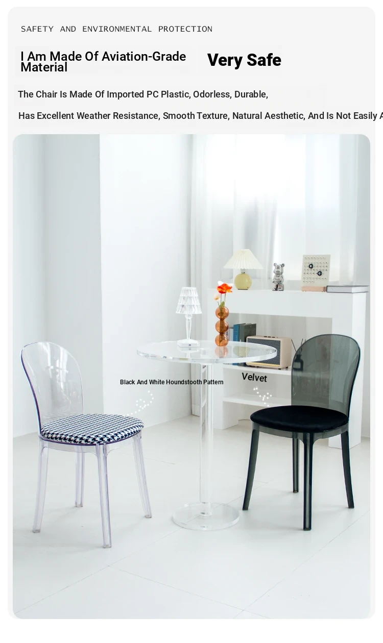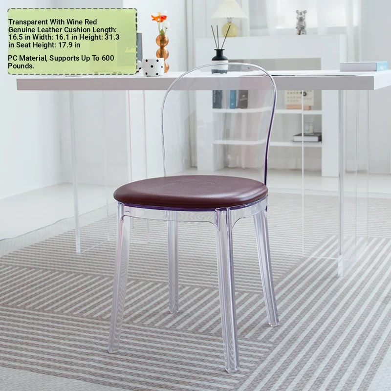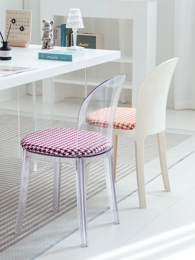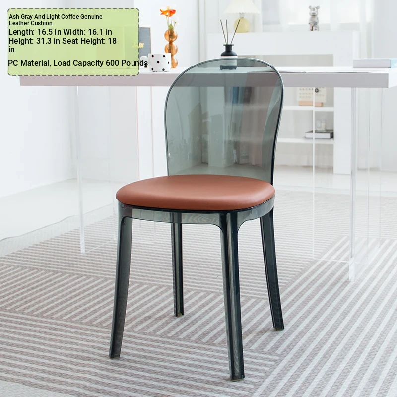 Transparent Acrylic Crystal Chair - Nordic Trendy Designer Modern Minimalist Plastic Back Dining Chair for Home Island Bar