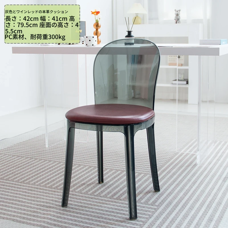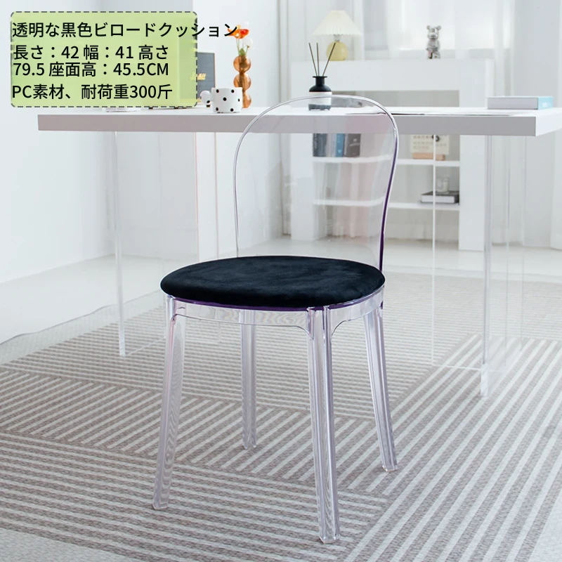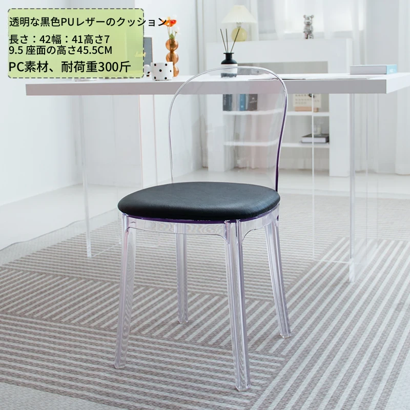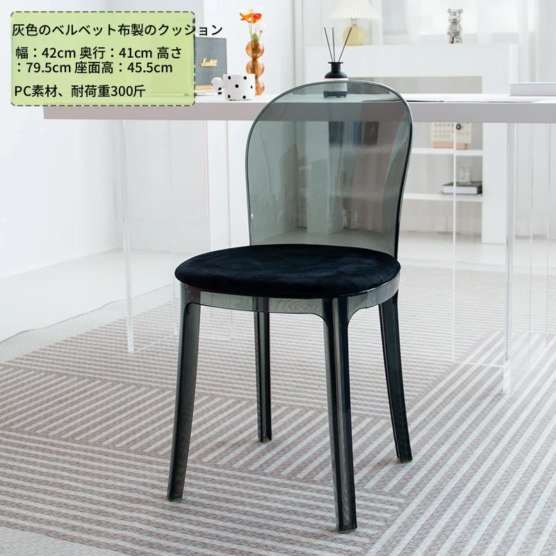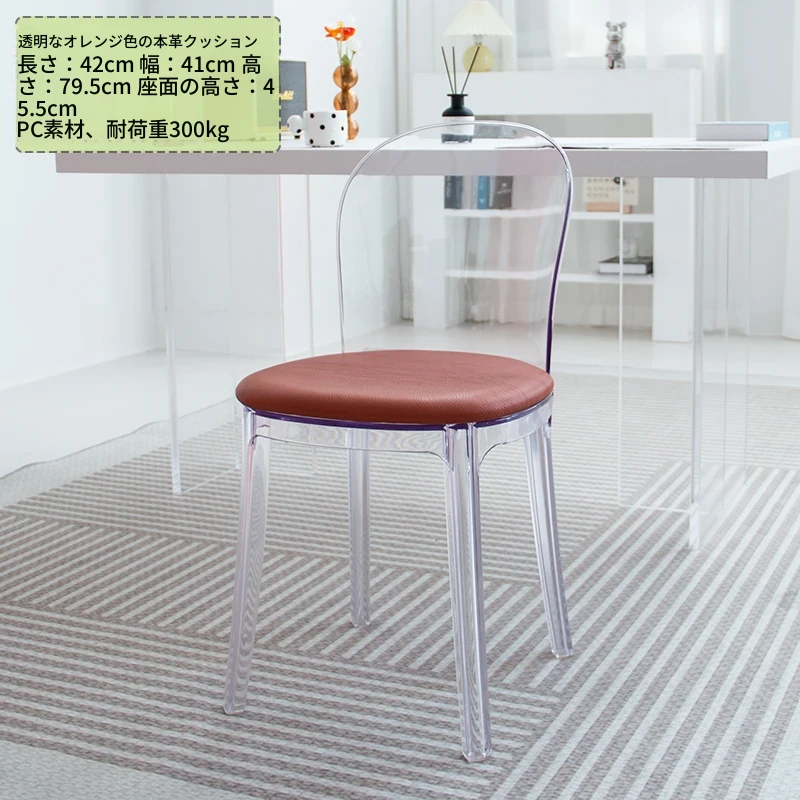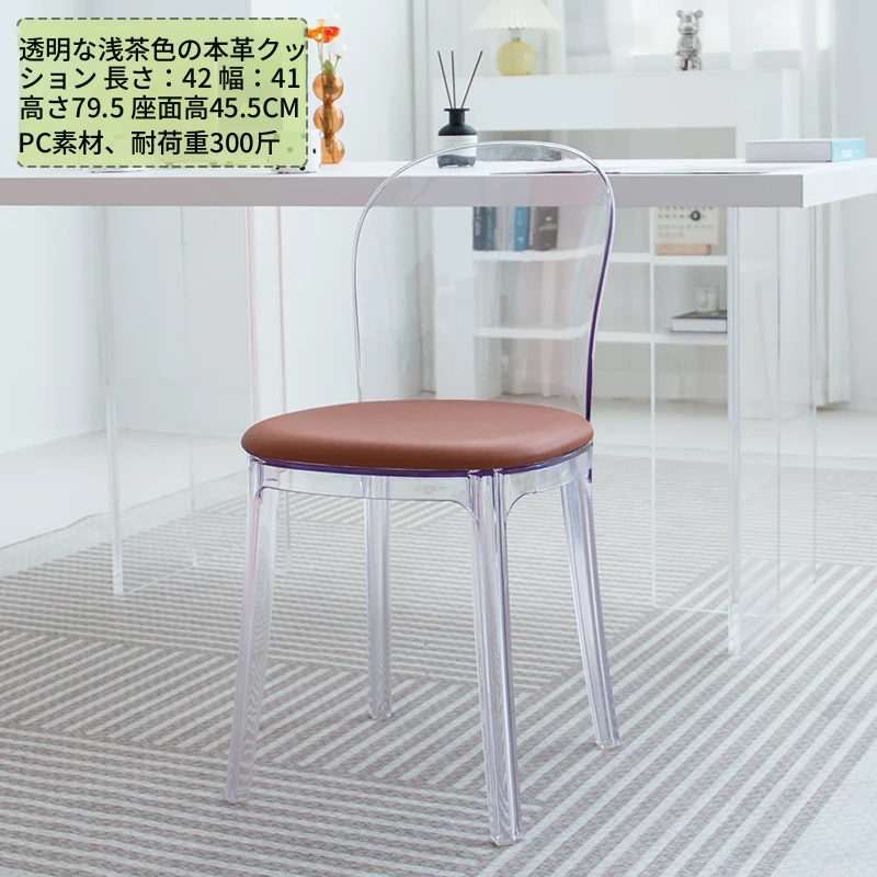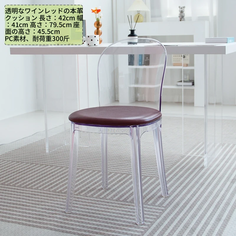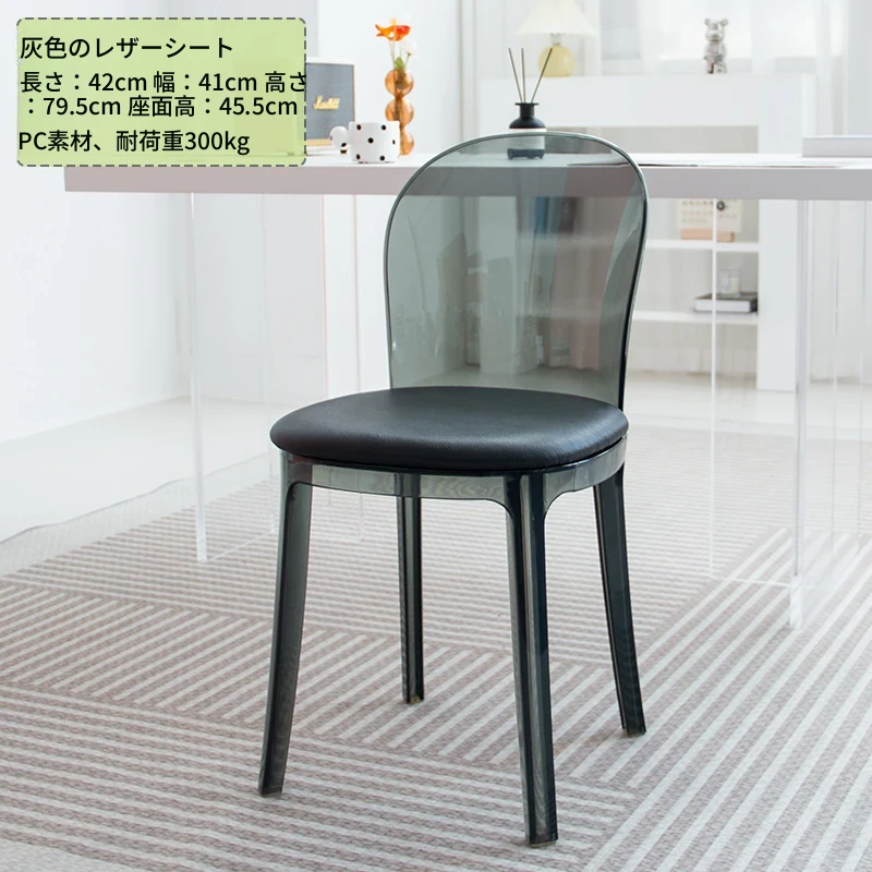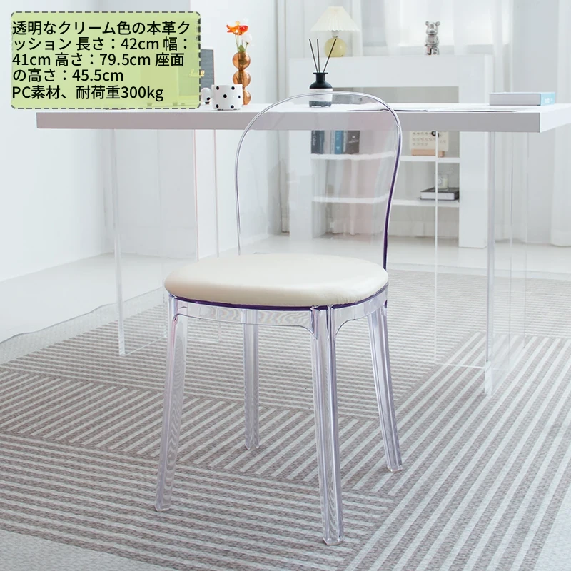 北欧風デザインの透明アクリルクリスタルチェア - モダンでシンプルな家用ダイニング椅子、スタイリッシュなプラスチックバックレスト付き!インテリアを引き立てるアイテム!