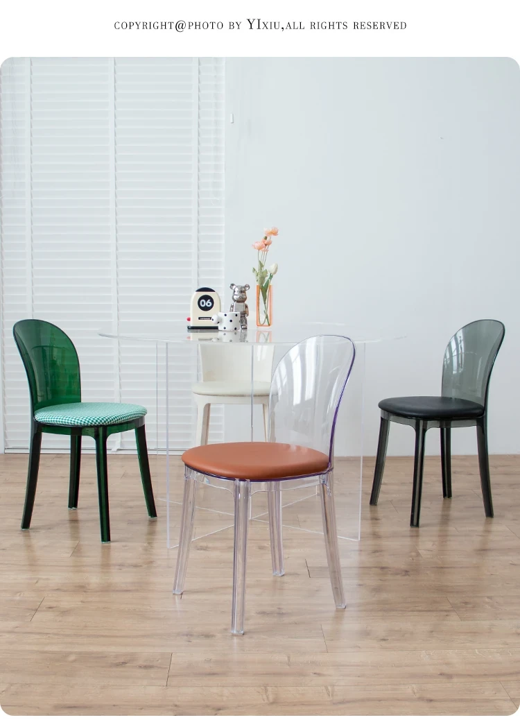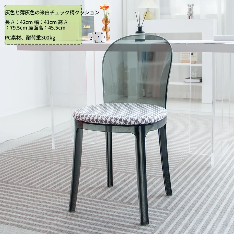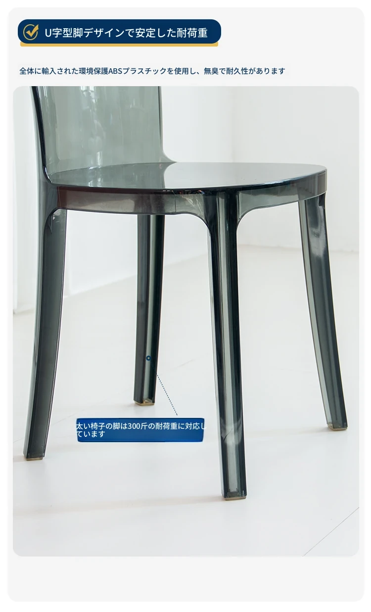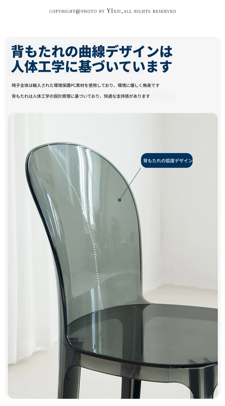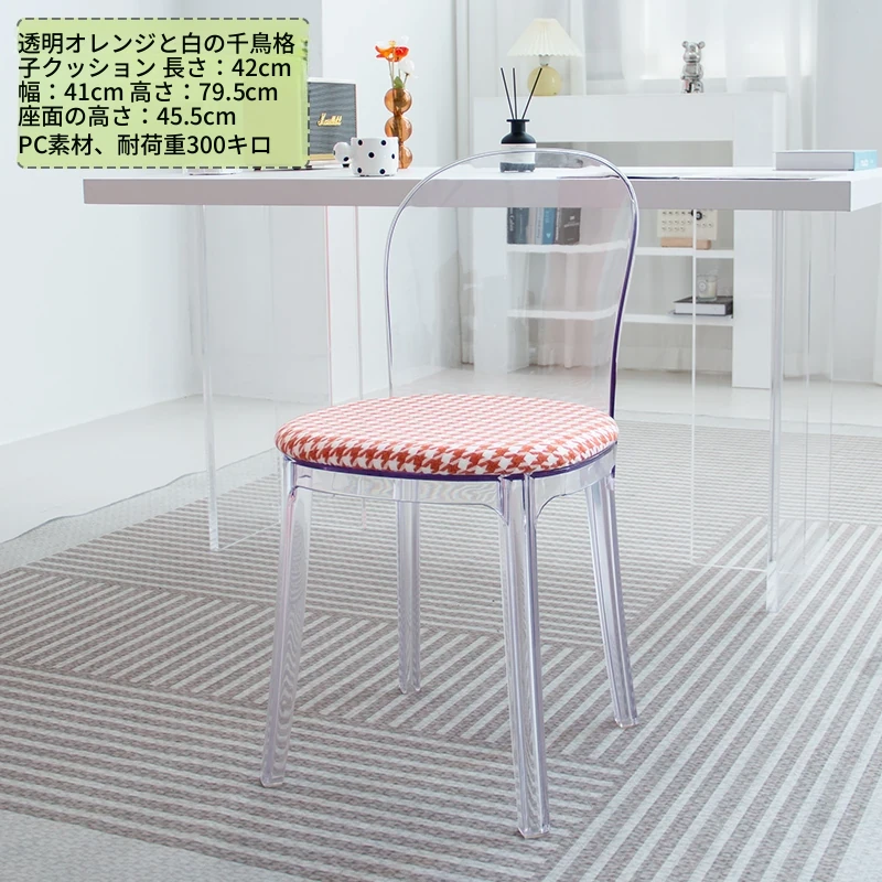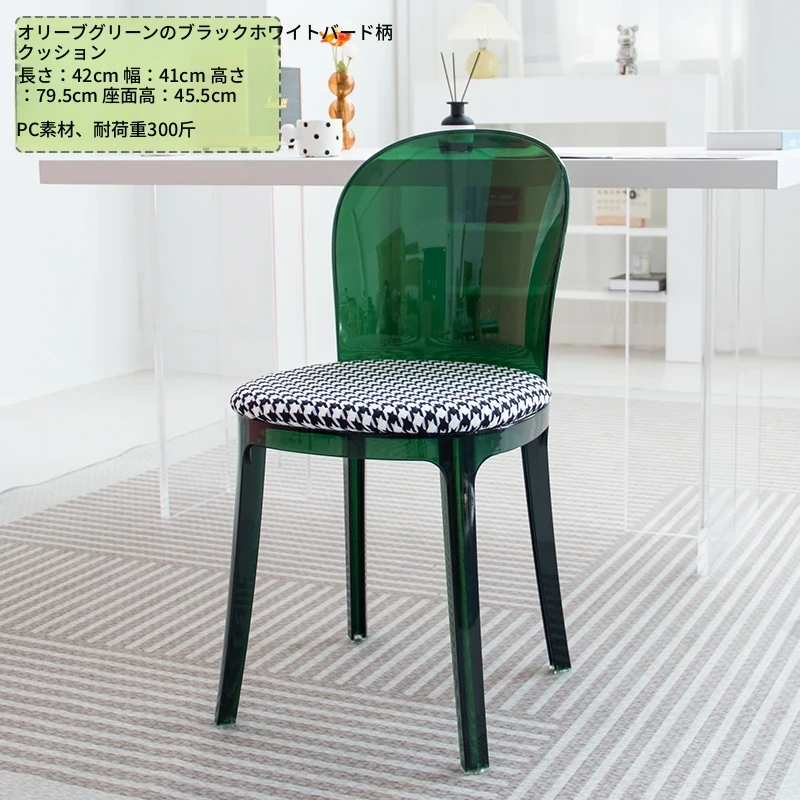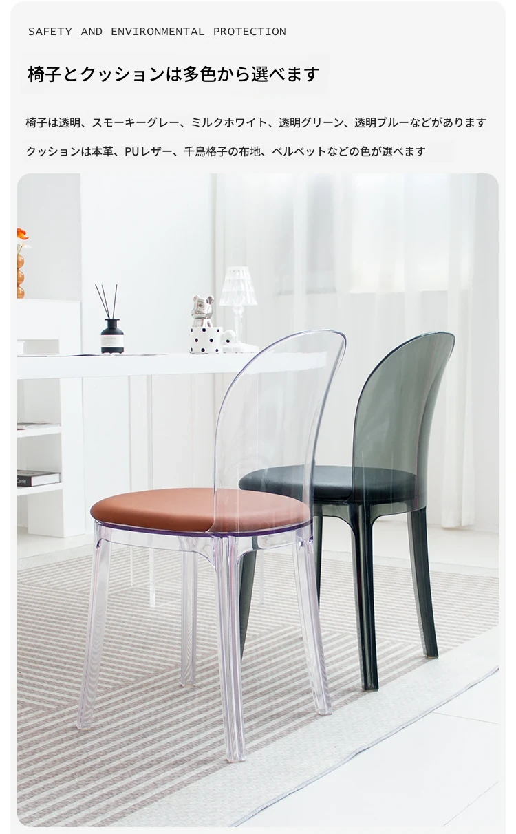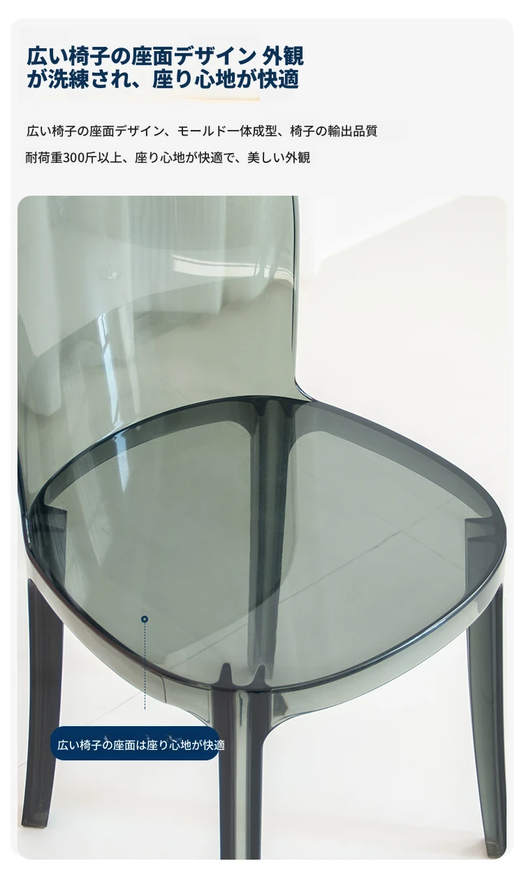 北欧風デザインの透明アクリルクリスタルチェア - モダンでシンプルな家用ダイニング椅子、スタイリッシュなプラスチックバックレスト付き!インテリアを引き立てるアイテム!