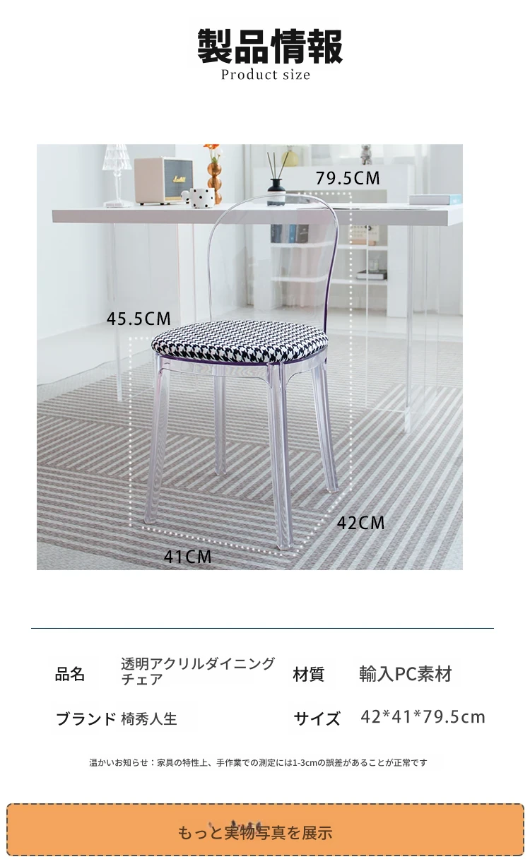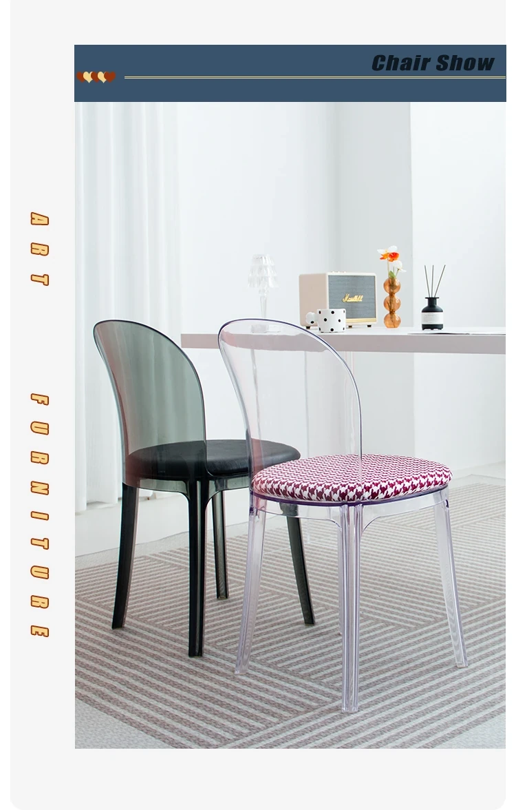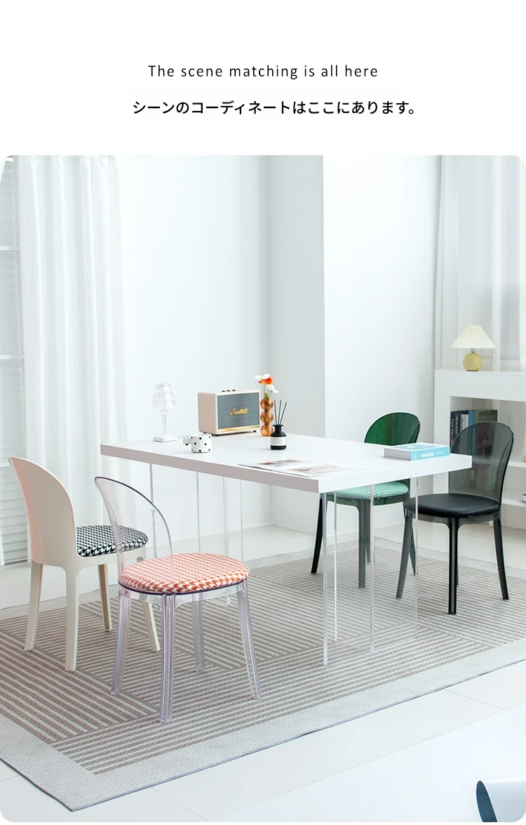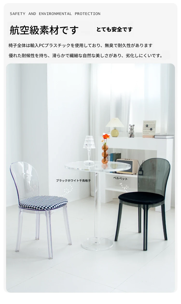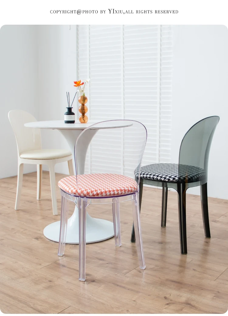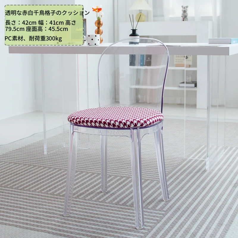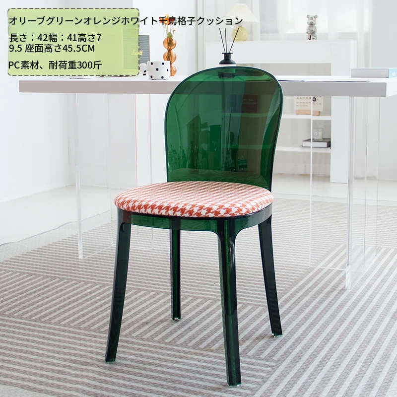 北欧風デザインの透明アクリルクリスタルチェア - モダンでシンプルな家用ダイニング椅子、スタイリッシュなプラスチックバックレスト付き!インテリアを引き立てるアイテム!