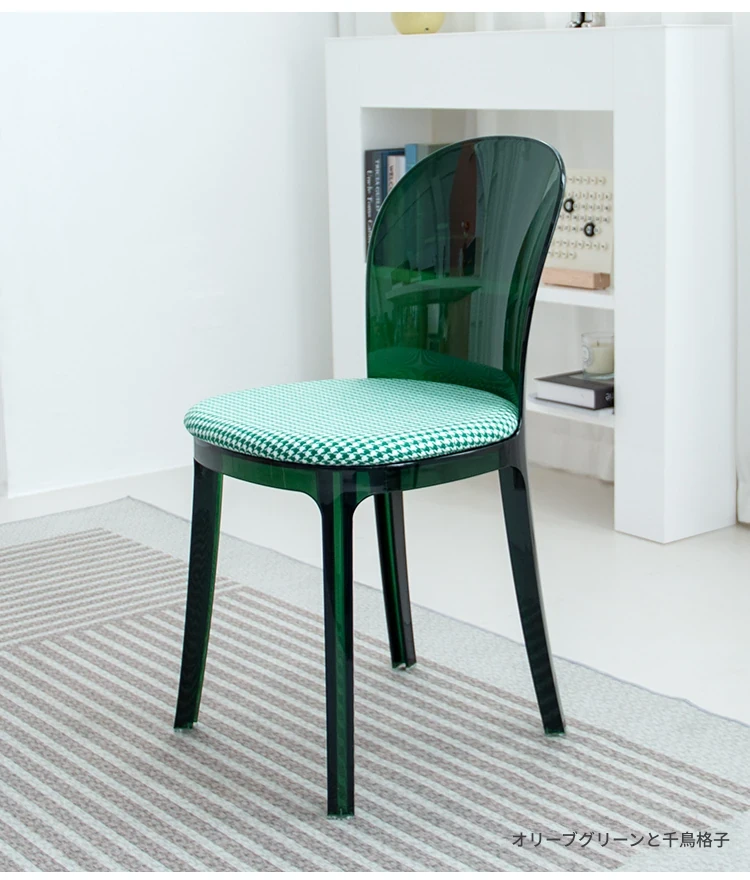 透明な緑と白の千鳥格子座面