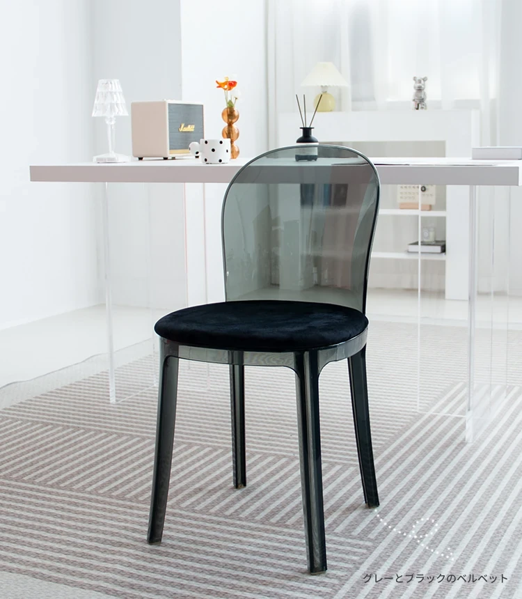 透明な色と薄灰のベルベット座面