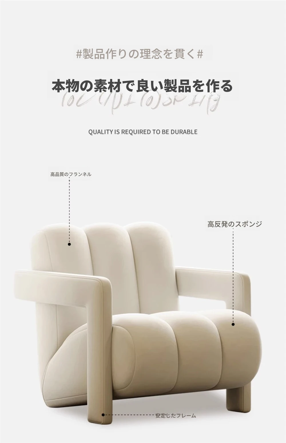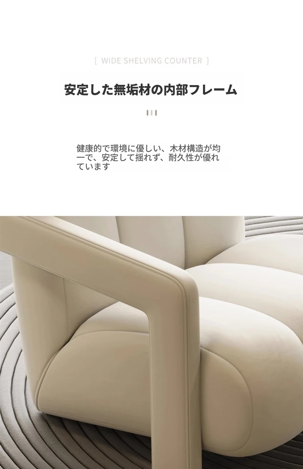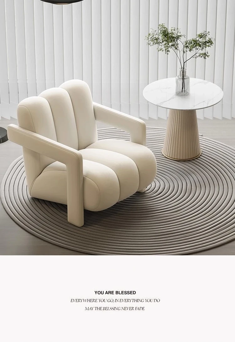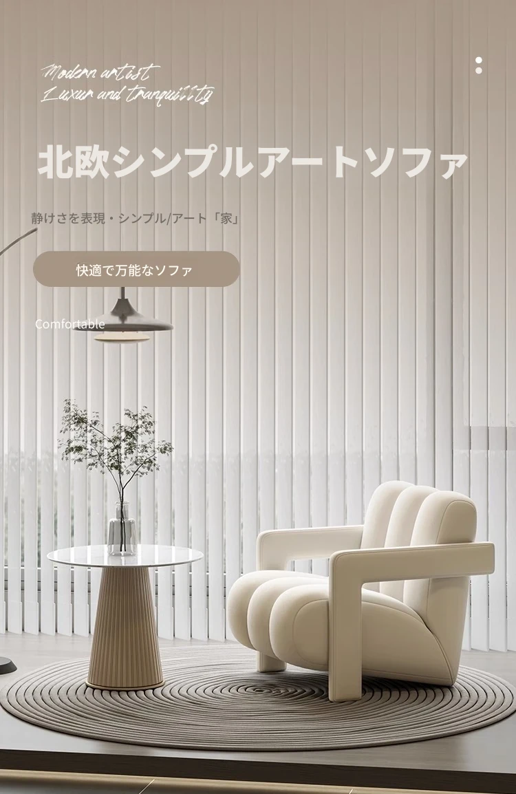 インフルエンサー推奨!軽やかなラグジュアリー感漂うクリームカラーの一人掛けソファ。小さなお部屋にもぴったりで、リラックスできる医療美容院の休憩スペースや接客エリアに最適です。おしゃれで心地よい空間を演出します!