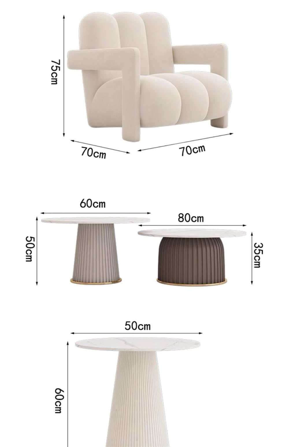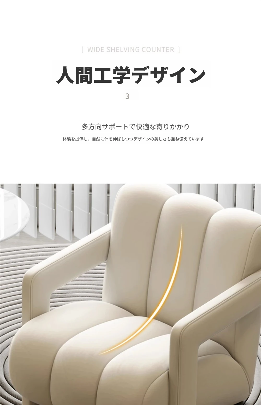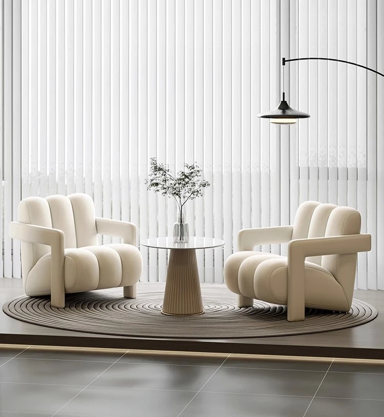 インフルエンサー推奨!軽やかなラグジュアリー感漂うクリームカラーの一人掛けソファ。小さなお部屋にもぴったりで、リラックスできる医療美容院の休憩スペースや接客エリアに最適です。おしゃれで心地よい空間を演出します!