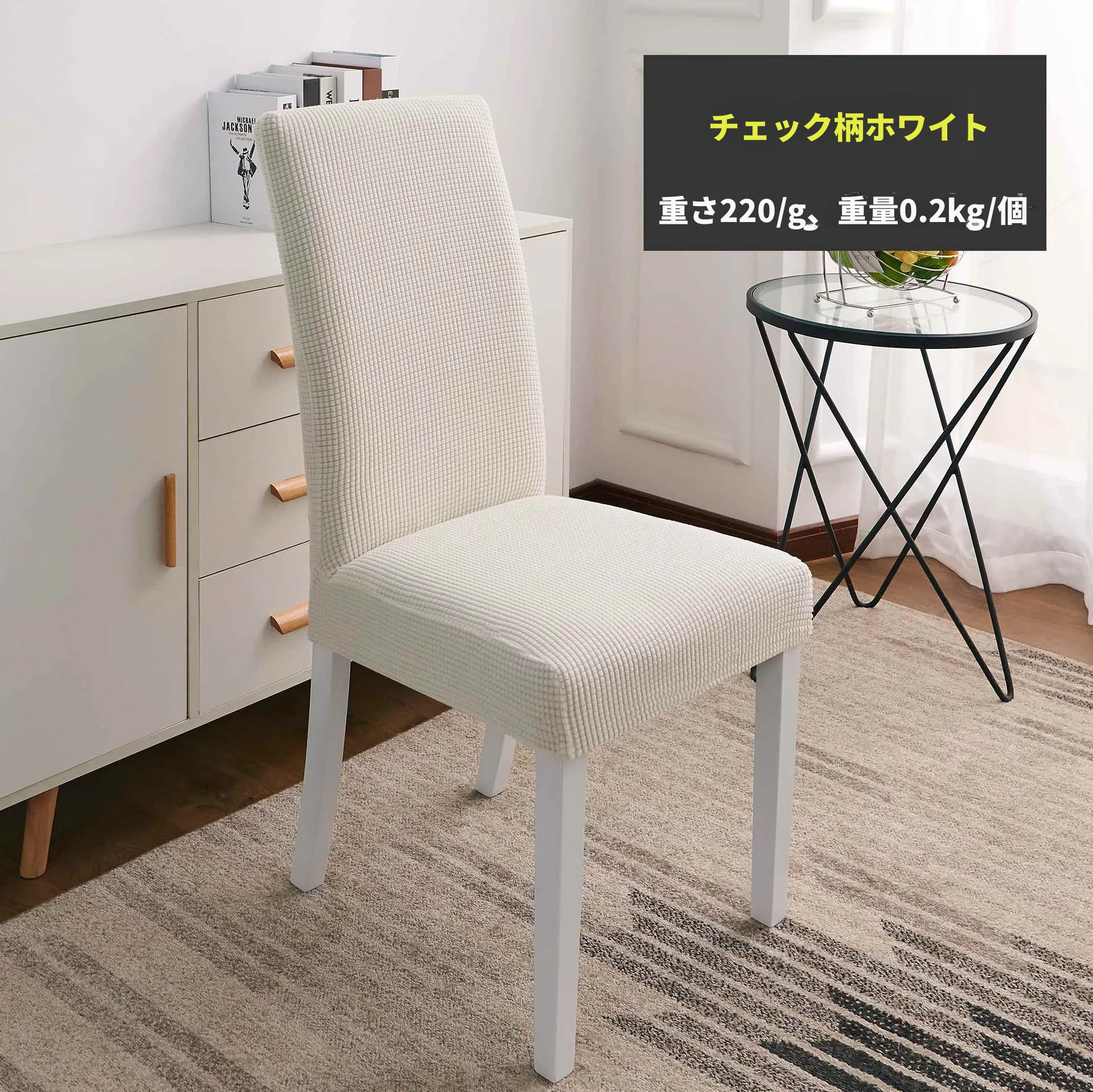 格子米白、高背カバー【45-55cm】単品重量:0.15kg