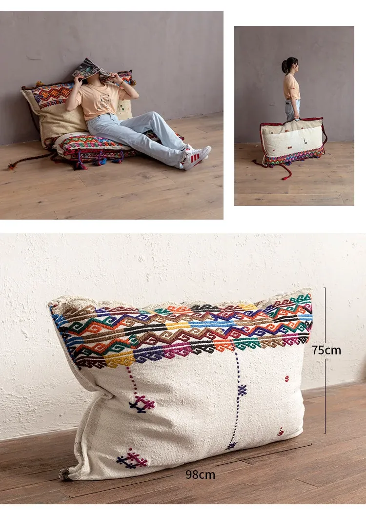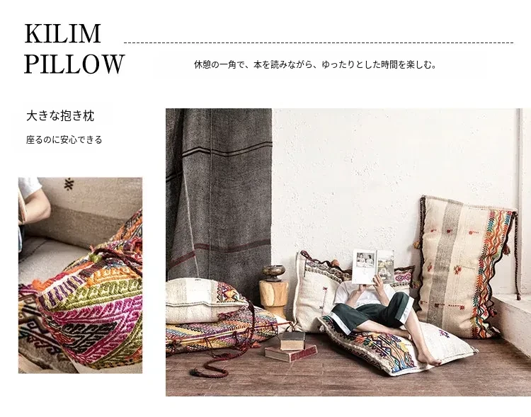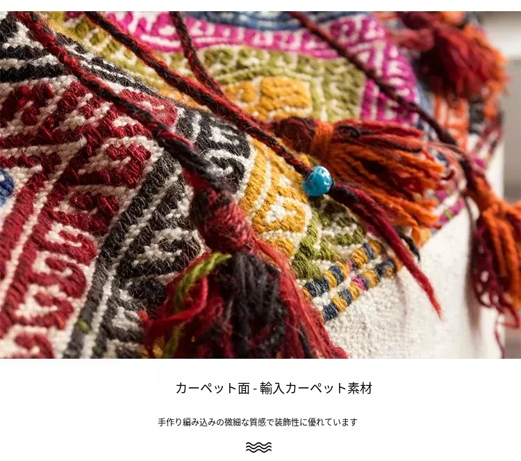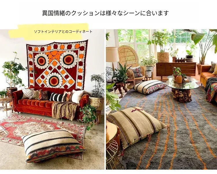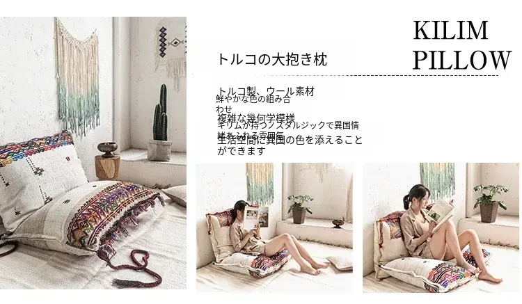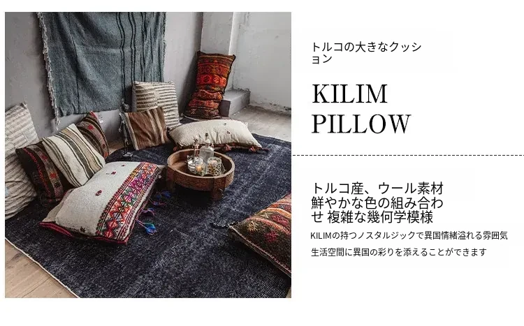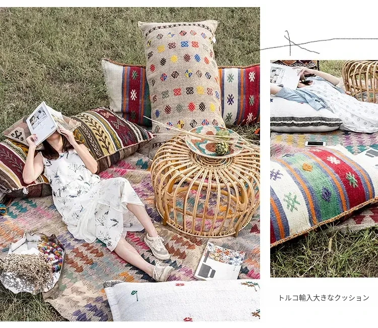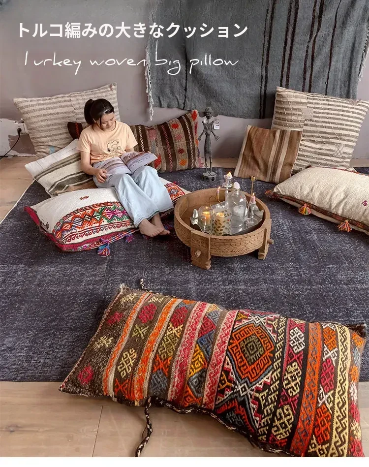 トルコ直輸入の手作りウールビッグクッション!タタミスタイルの民宿にぴったりな、魅力的なデザインのクッションマット&壁掛け装飾。居心地の良い空間を演出し、視覚と味覚を楽しむアイテムです!