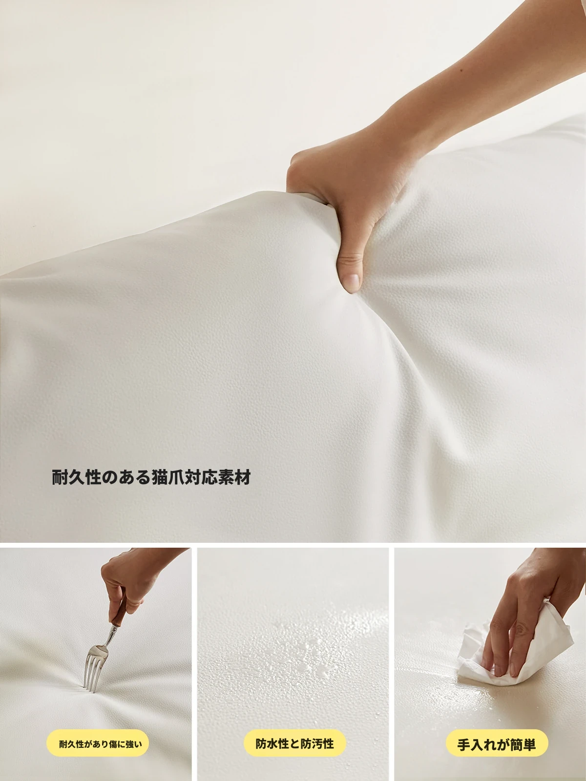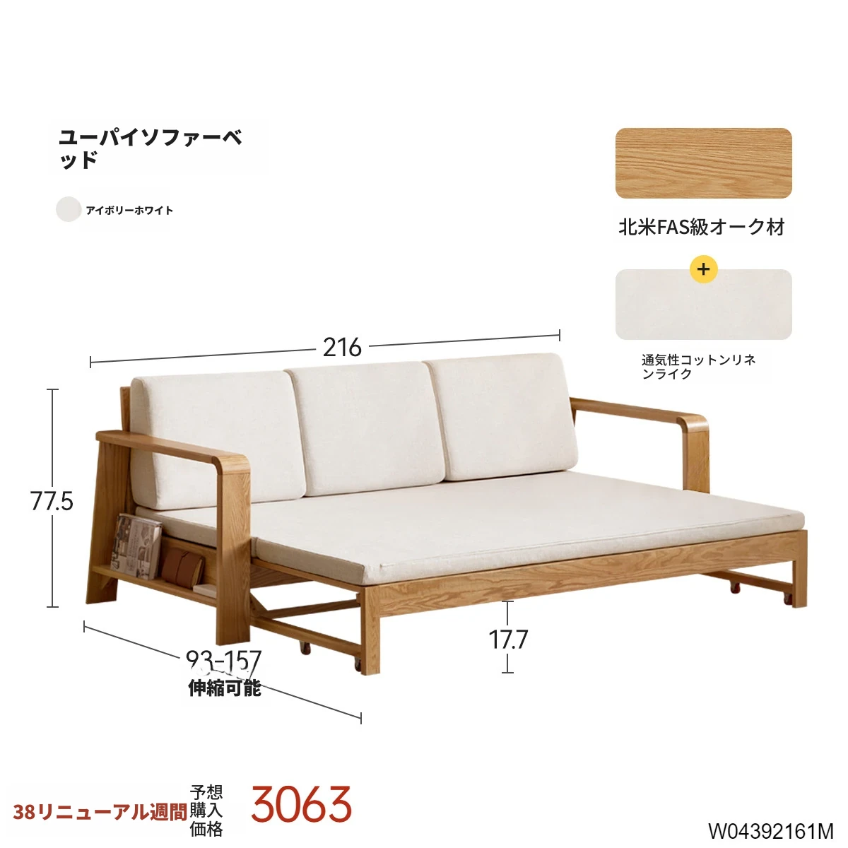 2.16mソファベッド(クリームホワイト)2160*(930-1570)*775mm