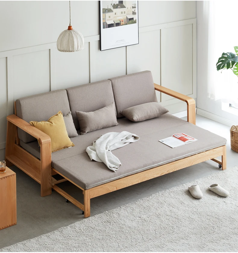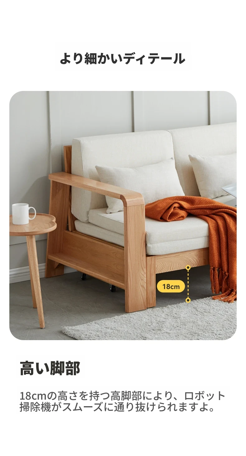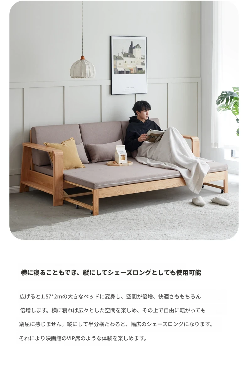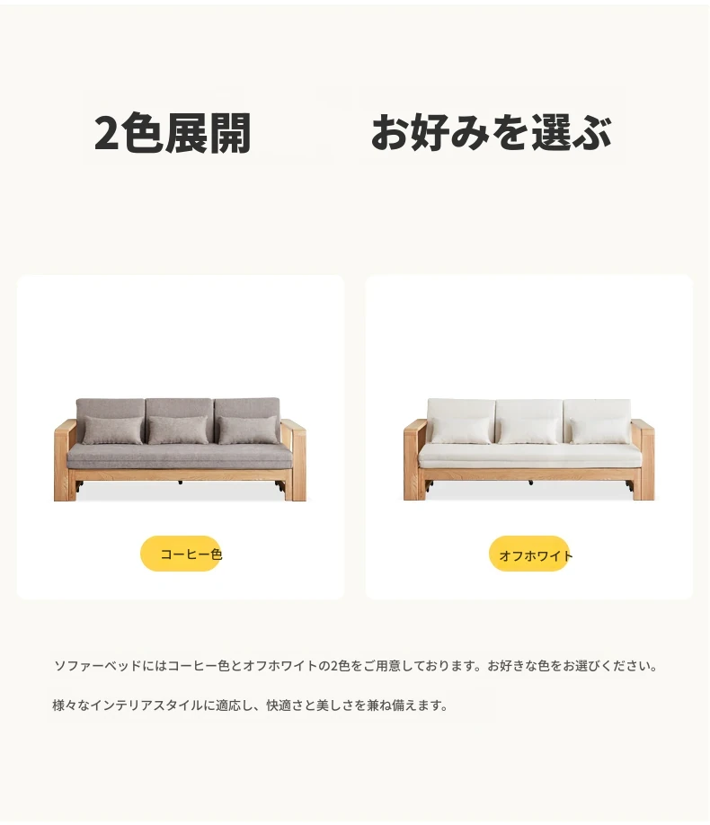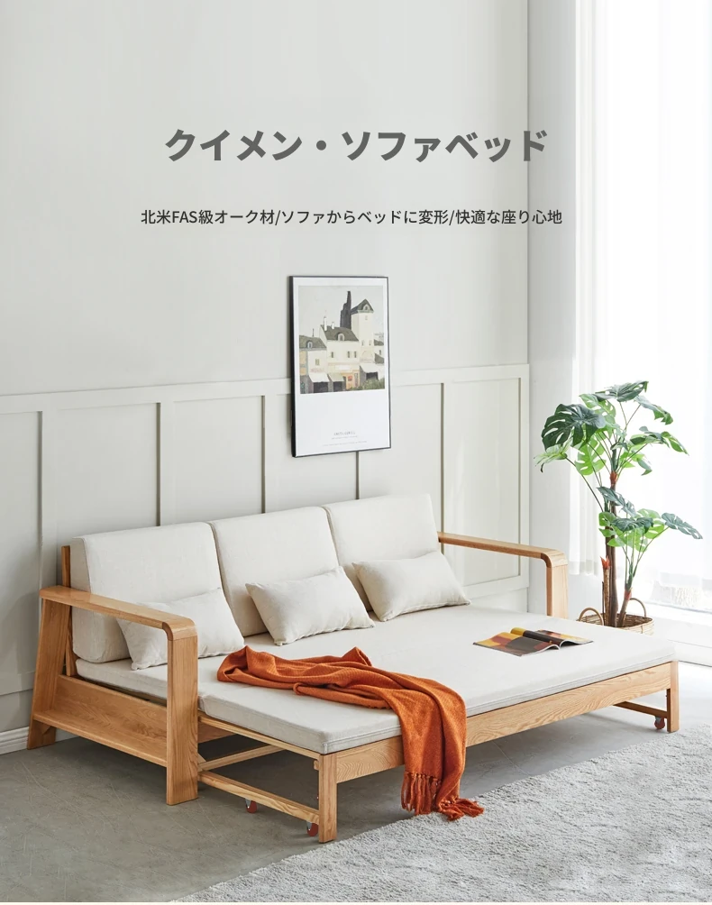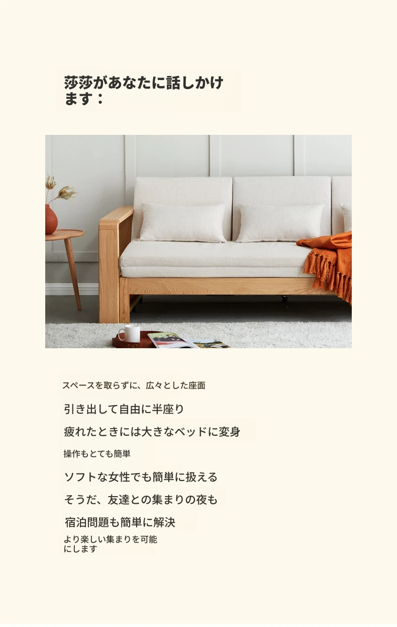 ヴィサ天然木製ソファベッド、多機能折りたたみ式、省スペース設計、伸縮可能なソファ&プルアウトベッド、オーク材使用、コンパクトリビングにぴったりのダブルソファ、快適でスタイリッシュな空間を演出。