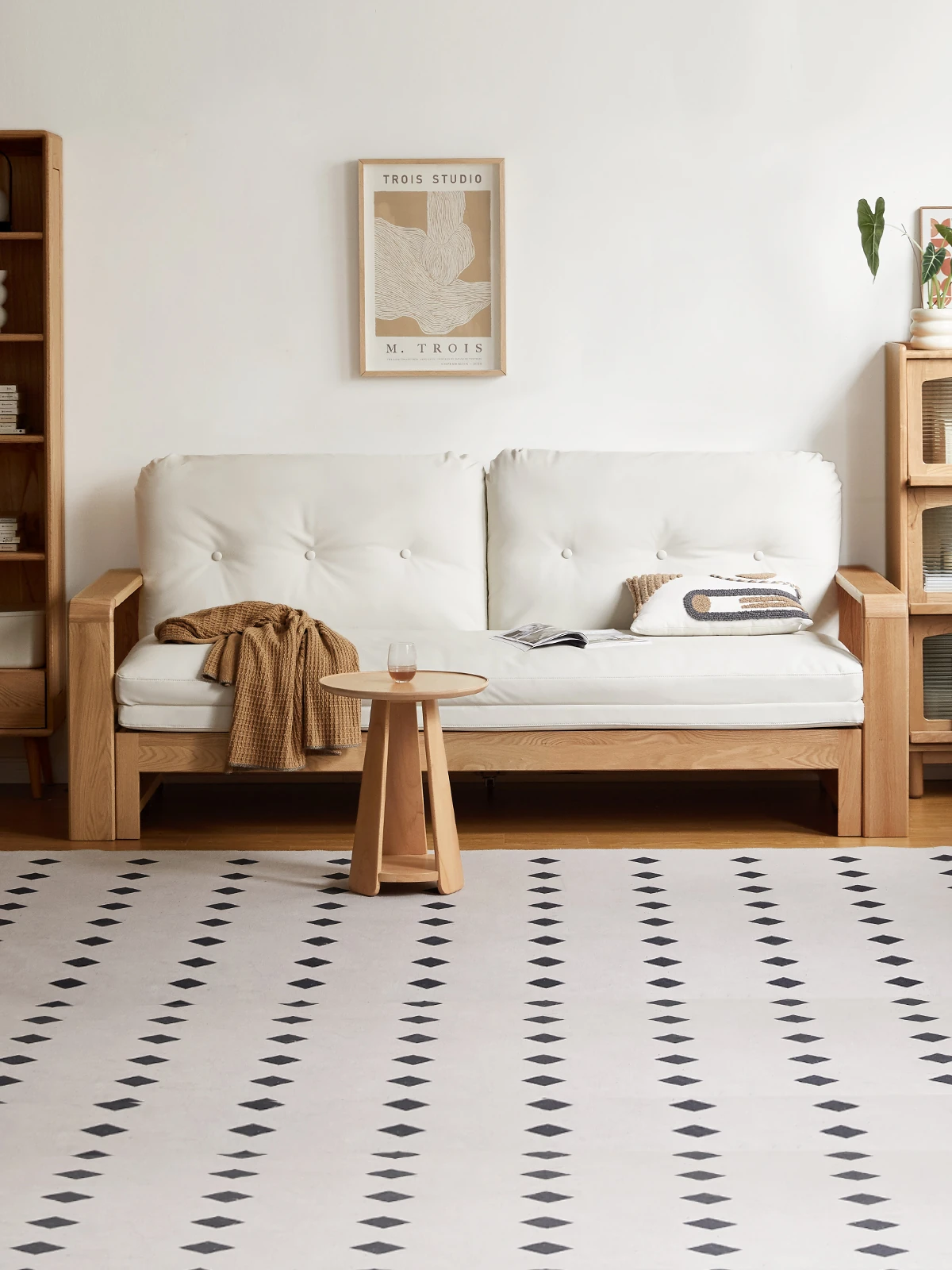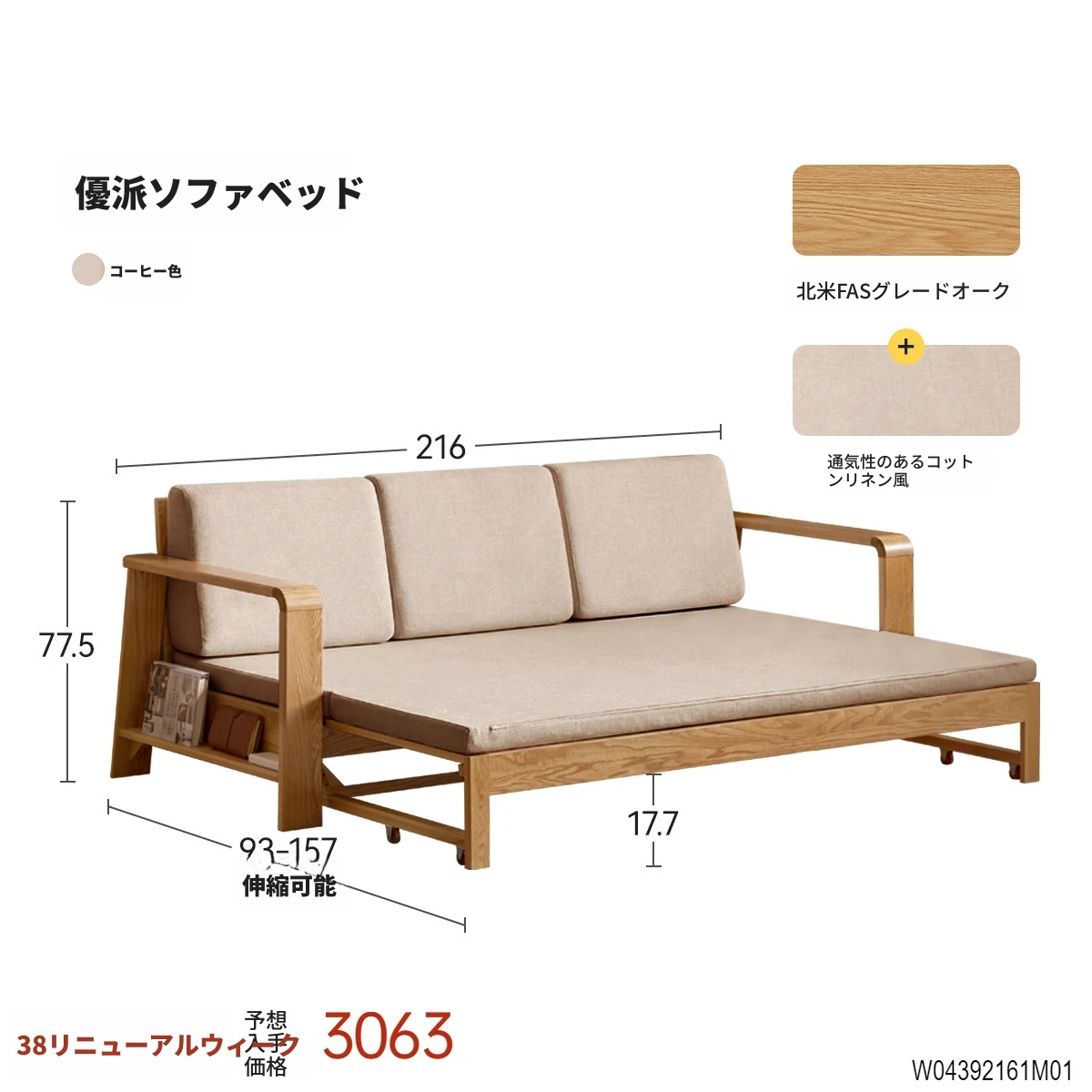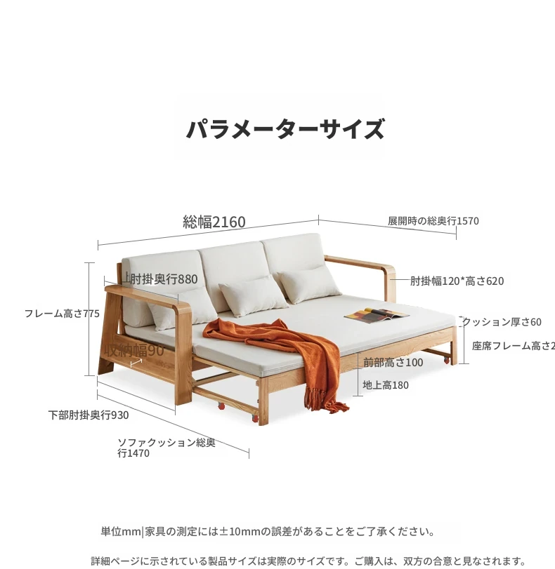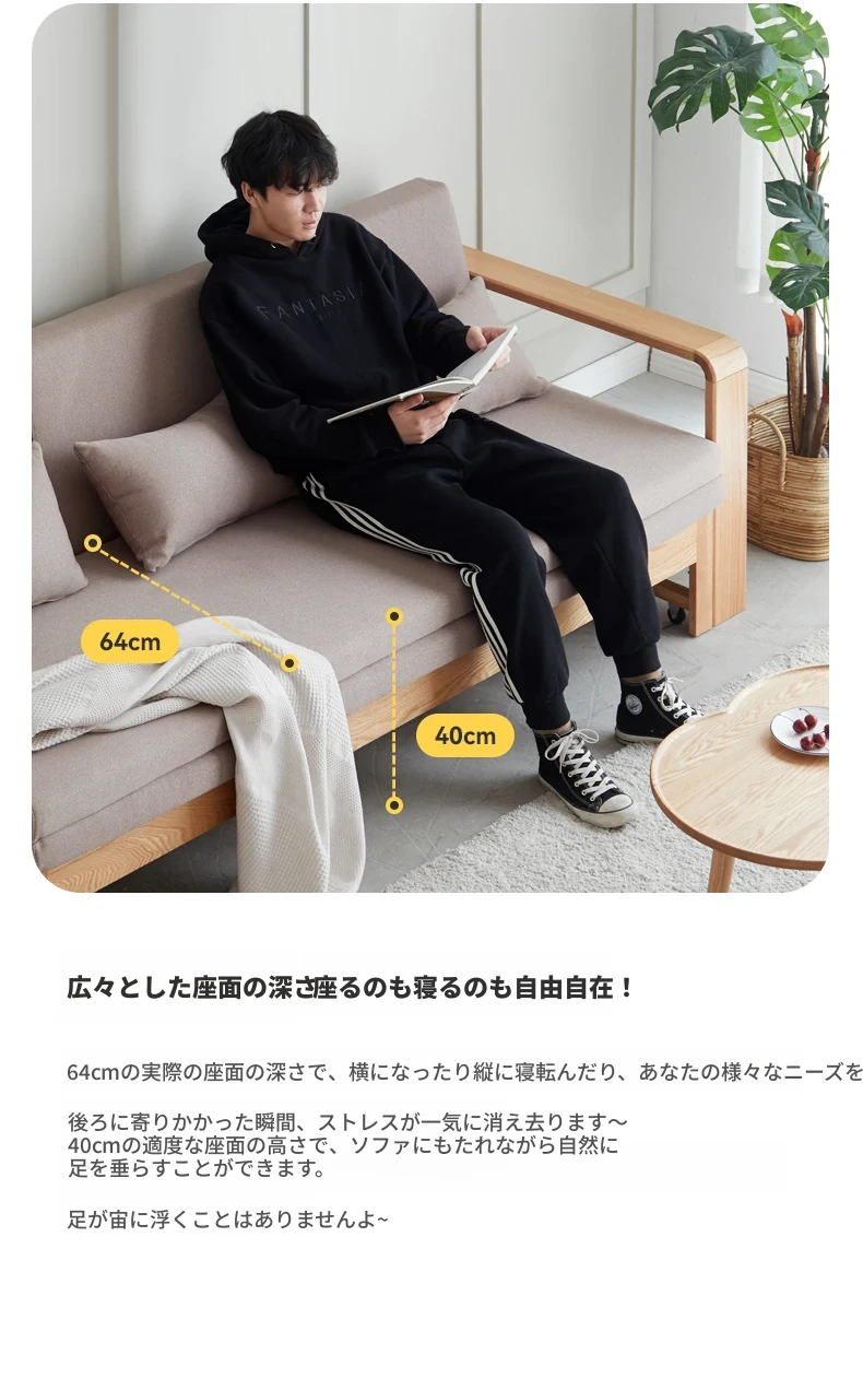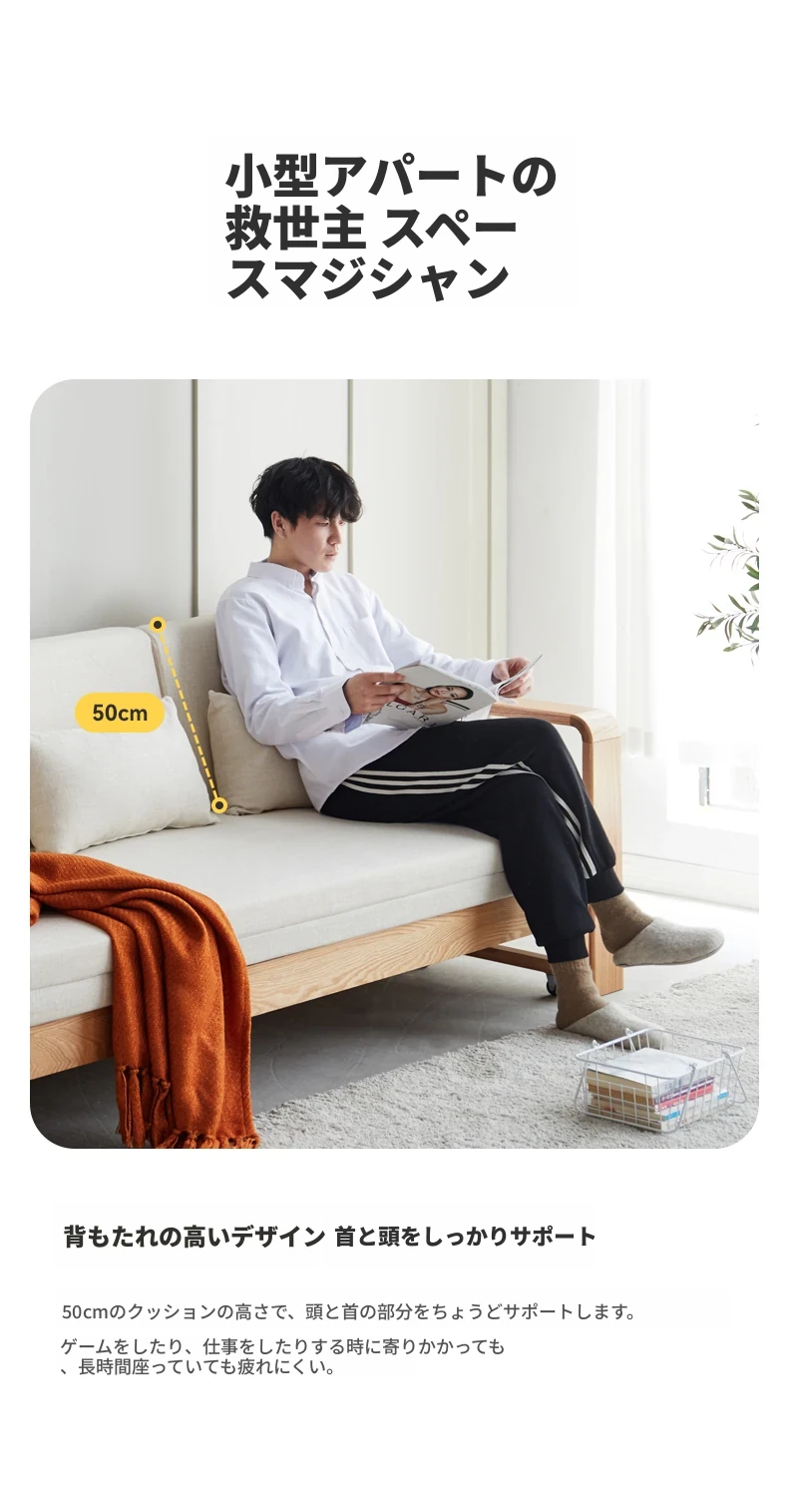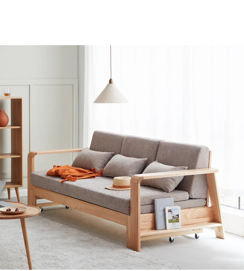 ヴィサ天然木製ソファベッド、多機能折りたたみ式、省スペース設計、伸縮可能なソファ&プルアウトベッド、オーク材使用、コンパクトリビングにぴったりのダブルソファ、快適でスタイリッシュな空間を演出。