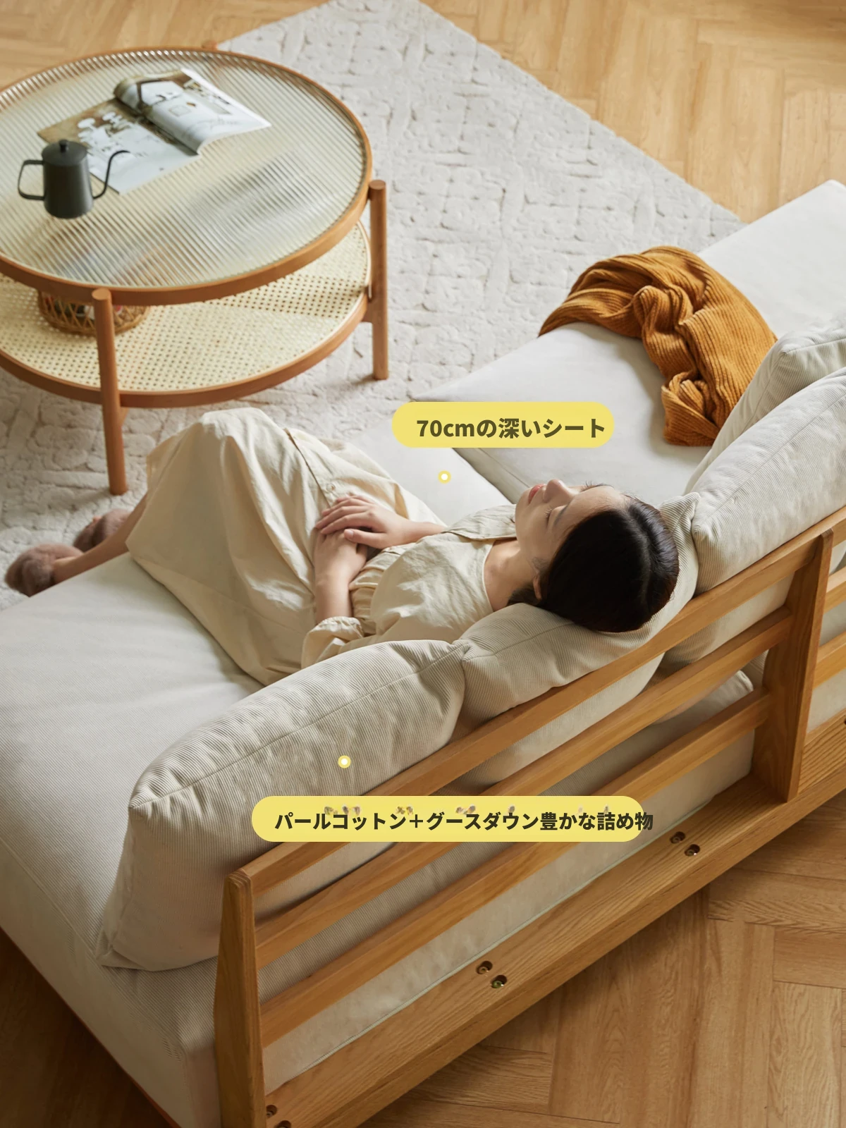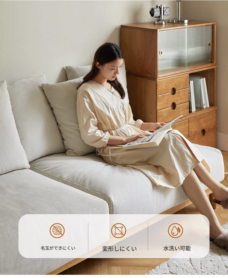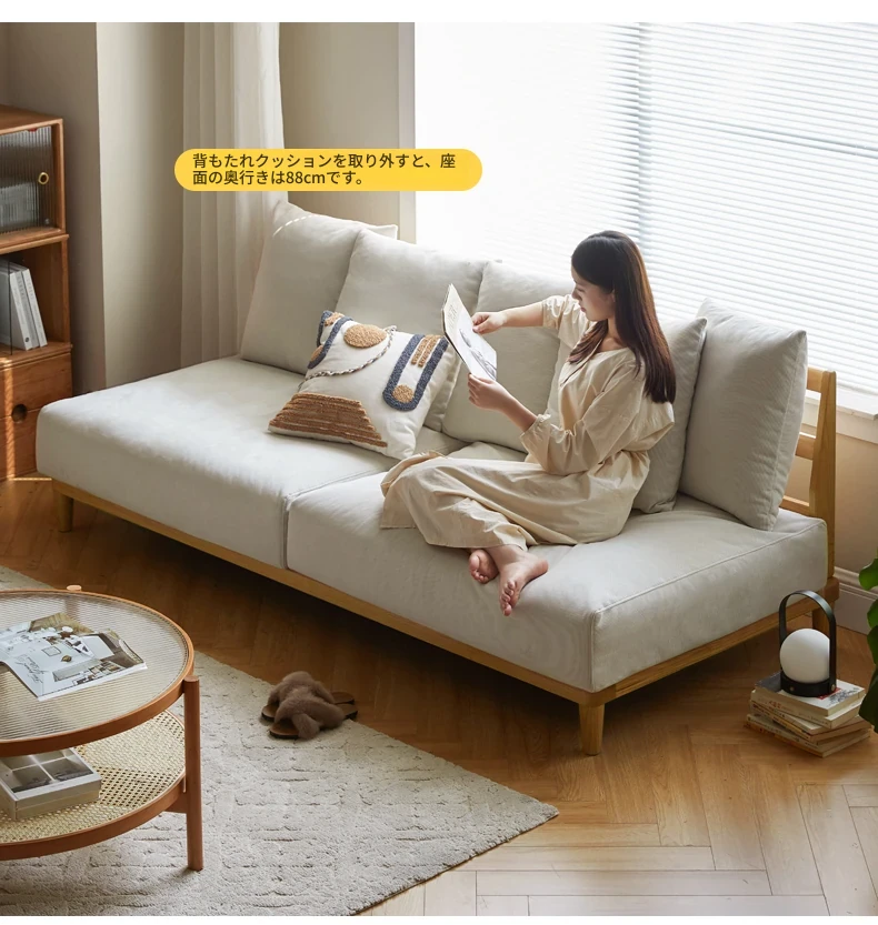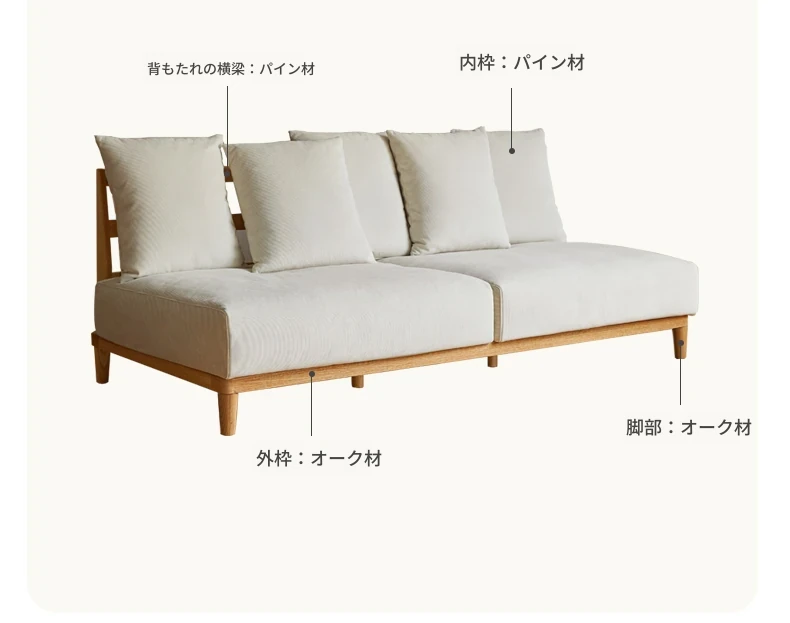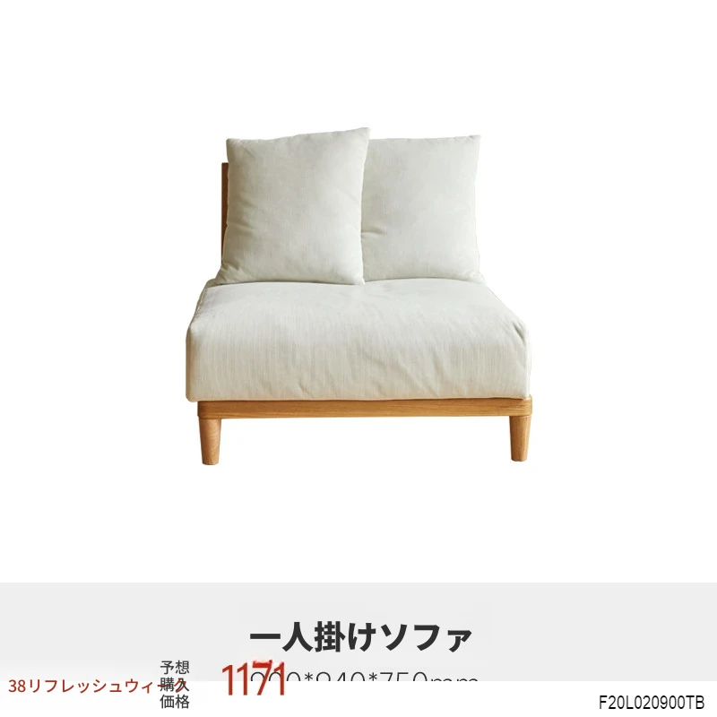 【魅力の一人掛け】天然木使用のVISSAモダン北欧風オーク製ソファー - 小さなリビングに最適な布張りアームレスデザイン!