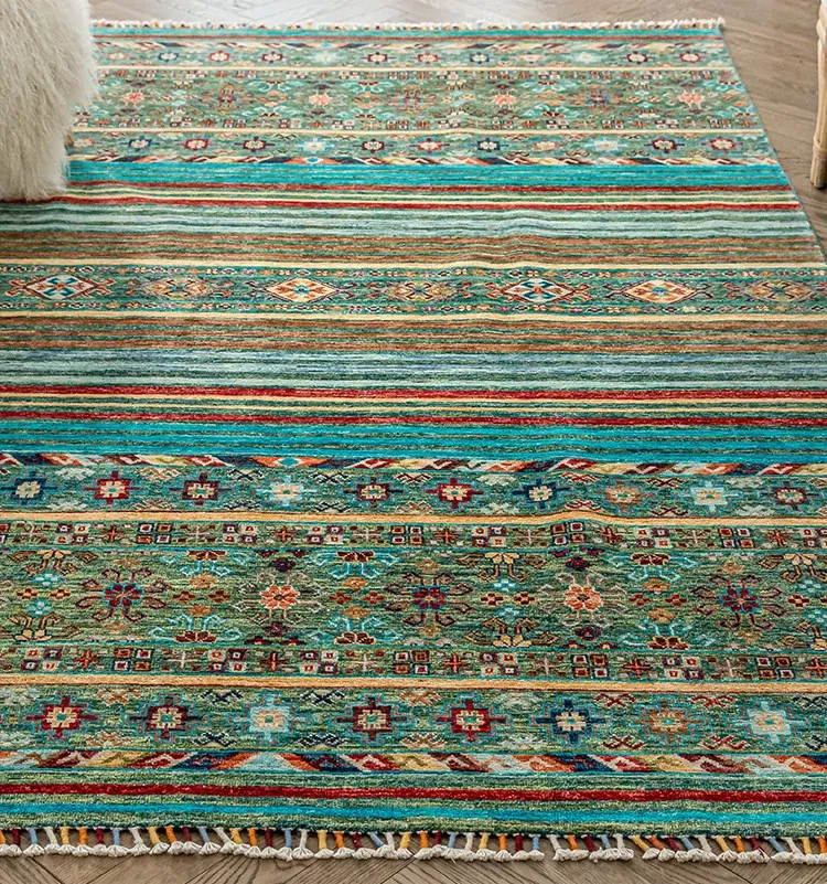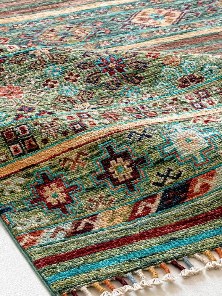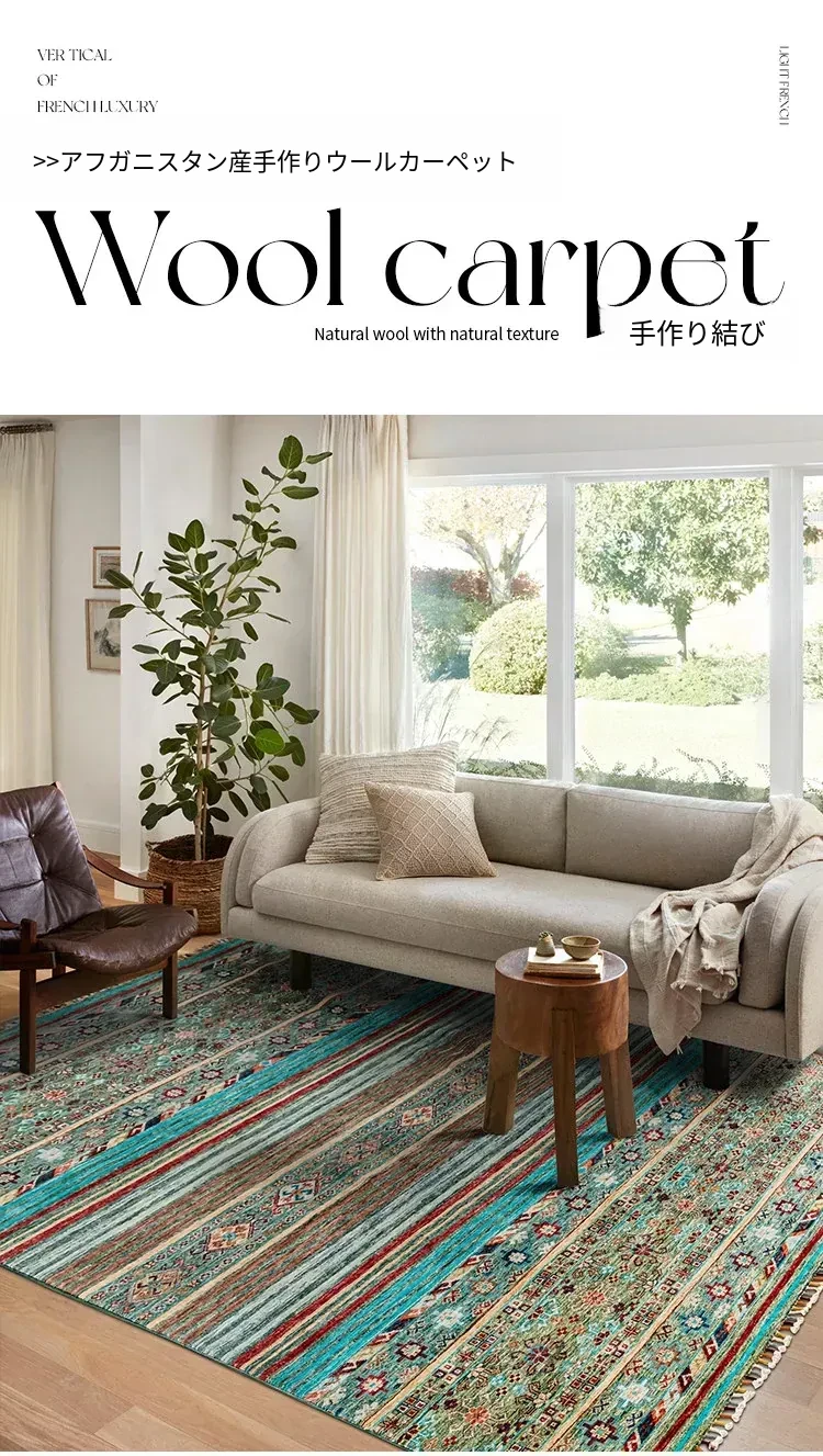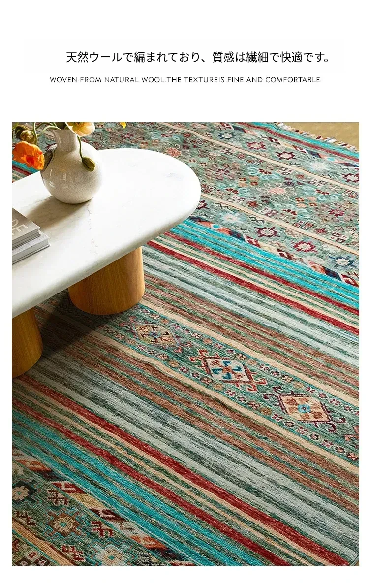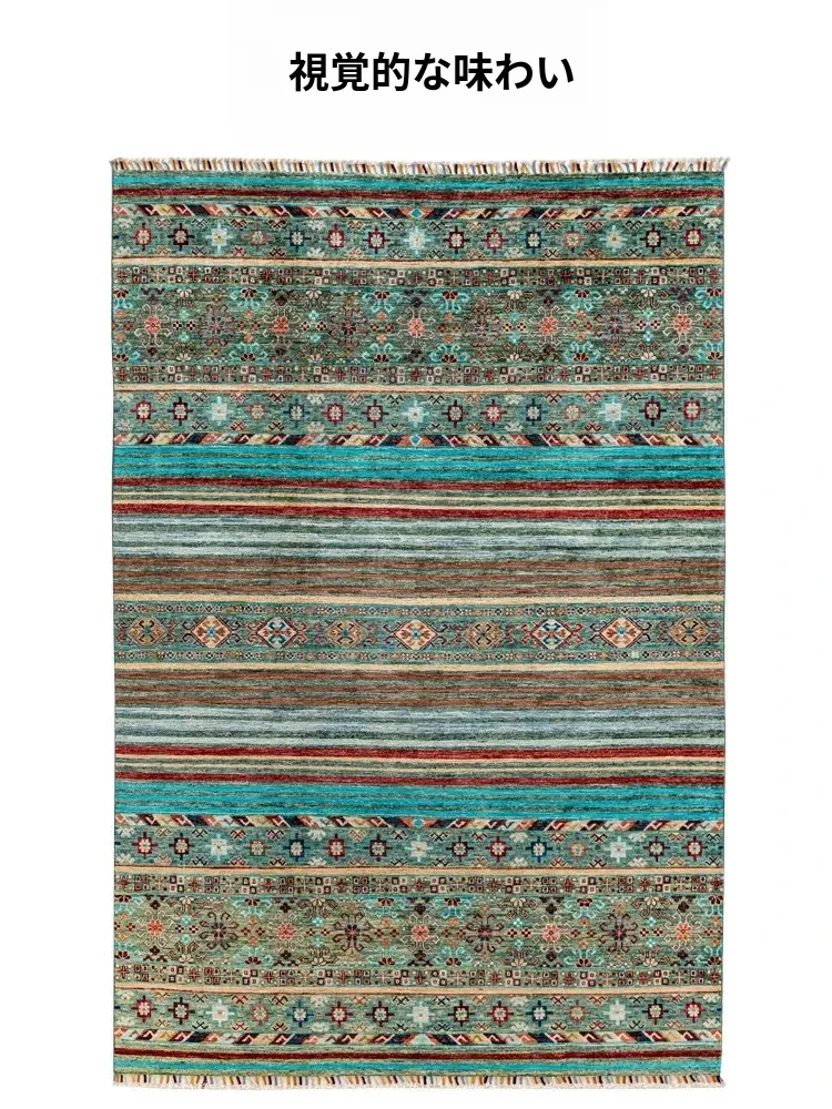 視覚と味覚の融合 アフガニスタン直輸入 ペルシャ風ヴィンテージアメリカンラグ 高級ウールリビングカーペット グリーン系 おしゃれで落ち着いた空間を演出!