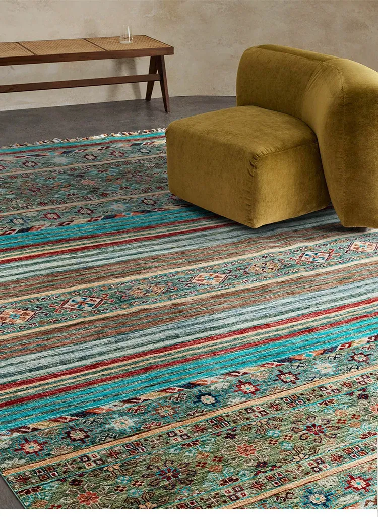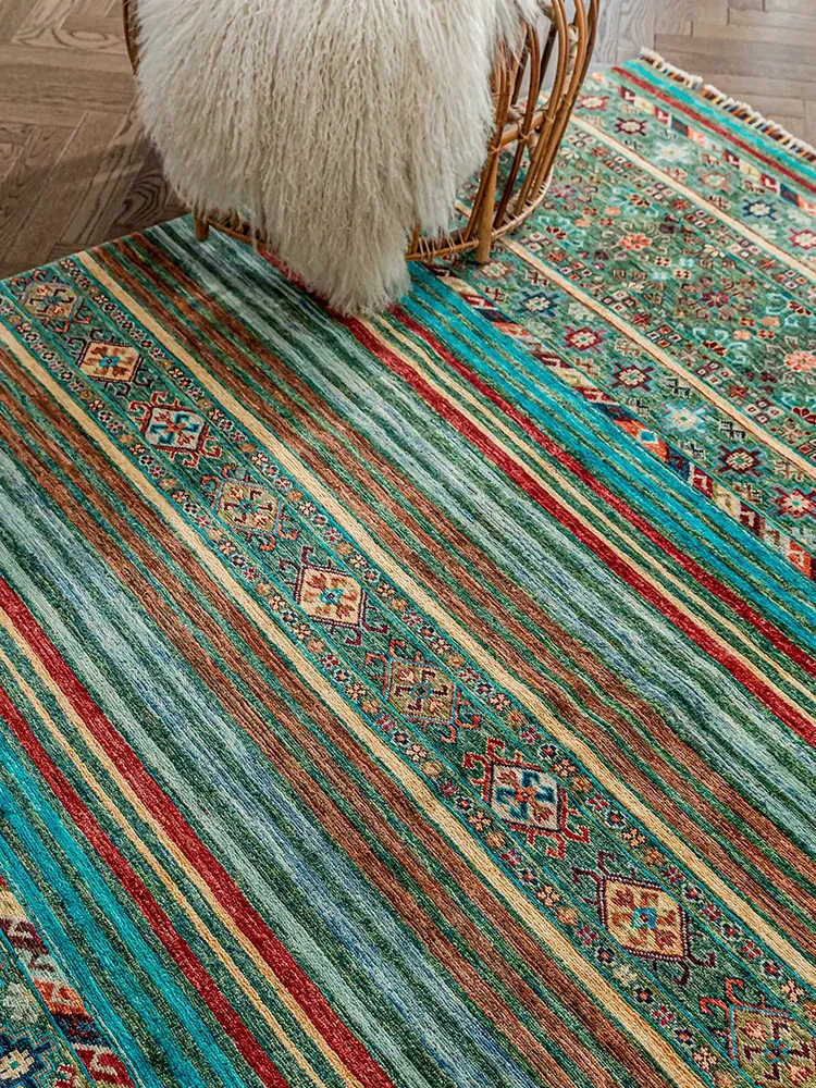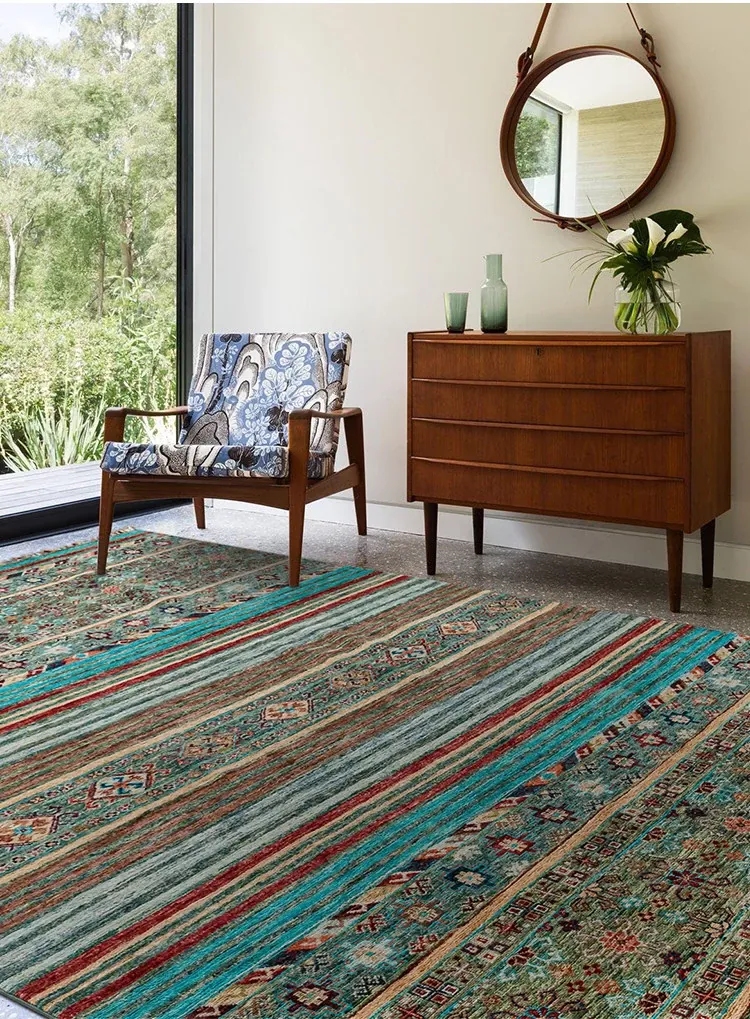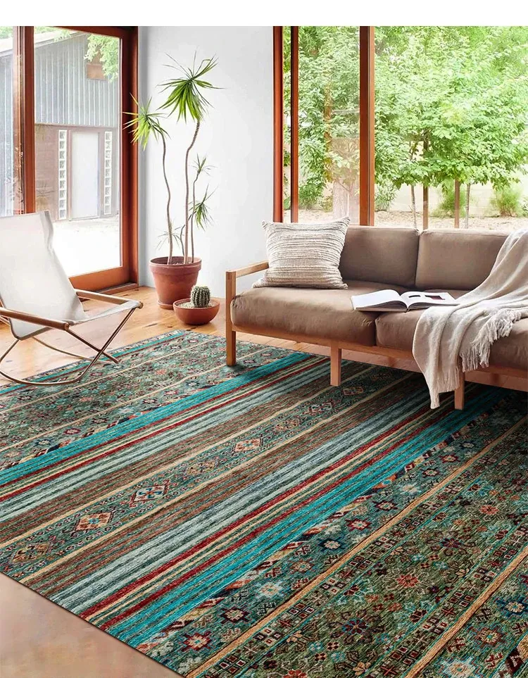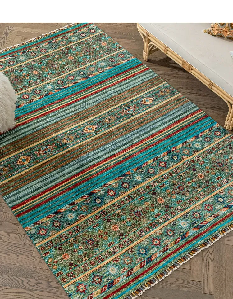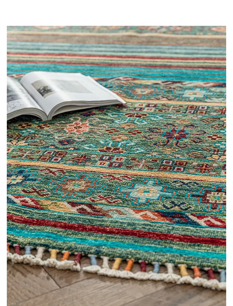 視覚と味覚の融合 アフガニスタン直輸入 ペルシャ風ヴィンテージアメリカンラグ 高級ウールリビングカーペット グリーン系 おしゃれで落ち着いた空間を演出!