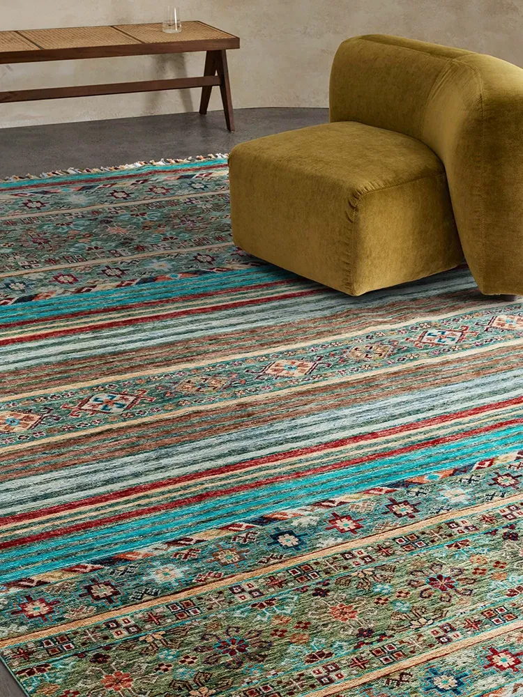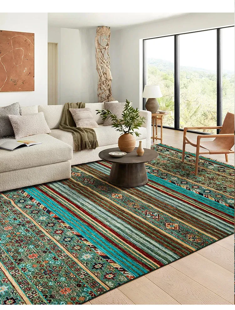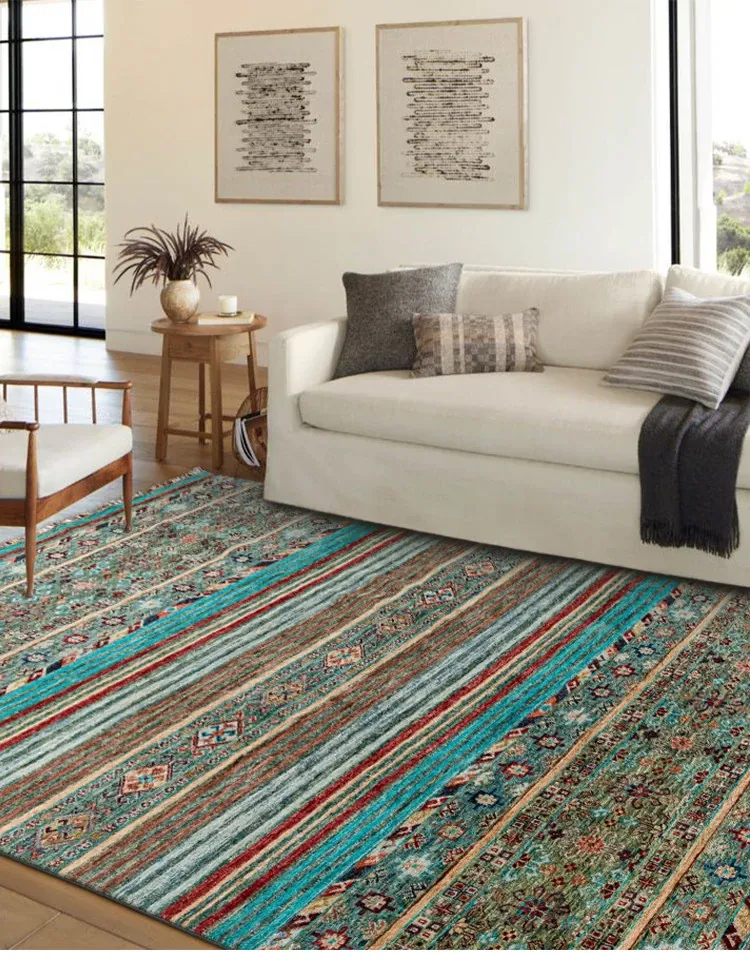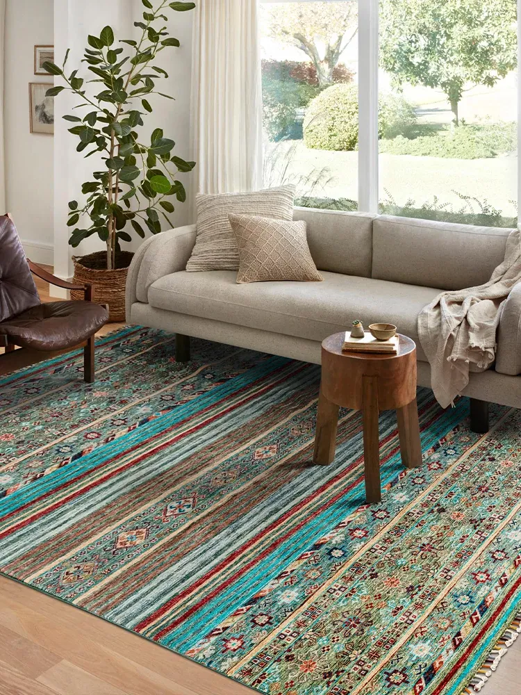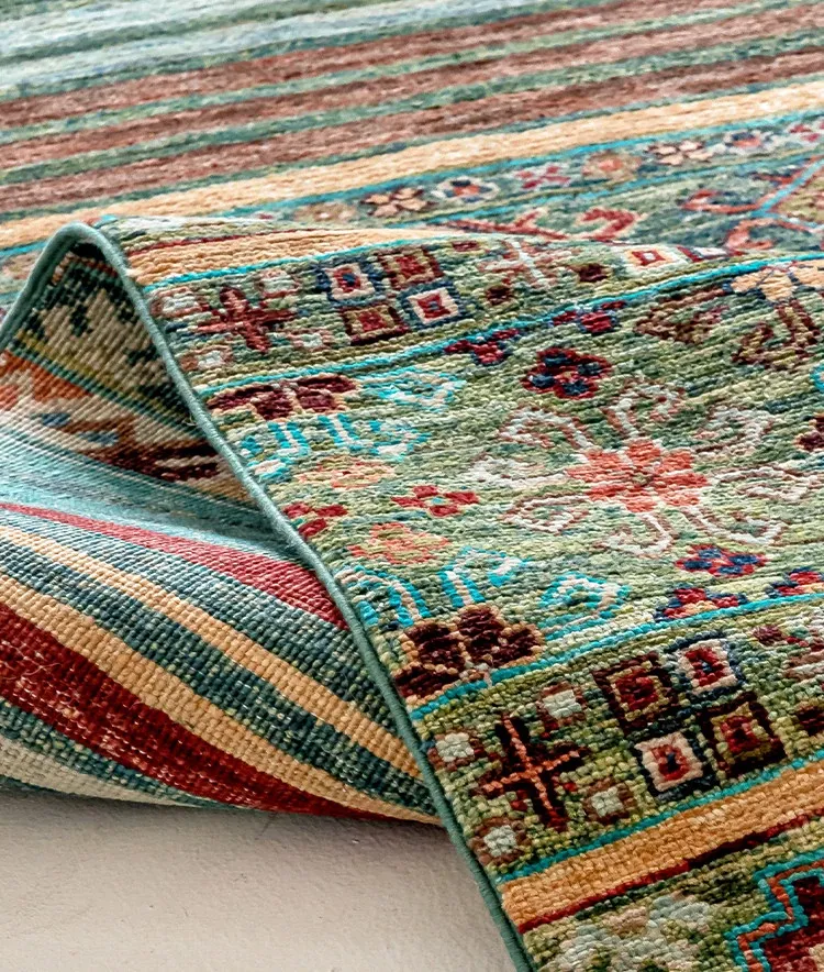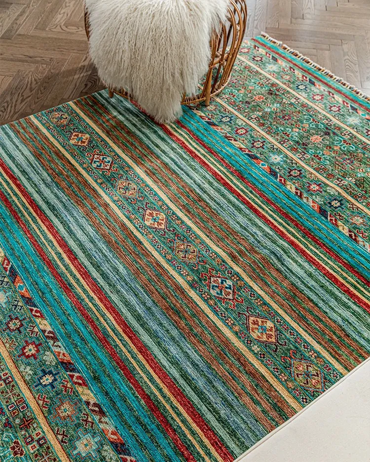 視覚と味覚の融合 アフガニスタン直輸入 ペルシャ風ヴィンテージアメリカンラグ 高級ウールリビングカーペット グリーン系 おしゃれで落ち着いた空間を演出!
