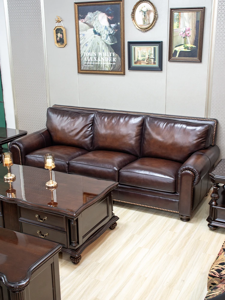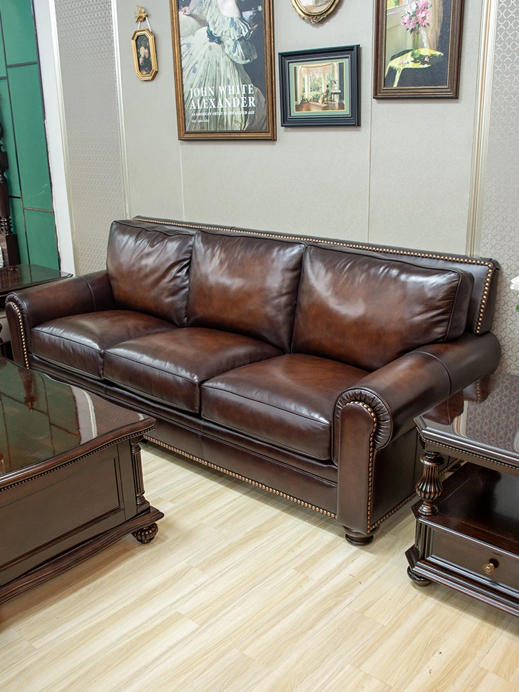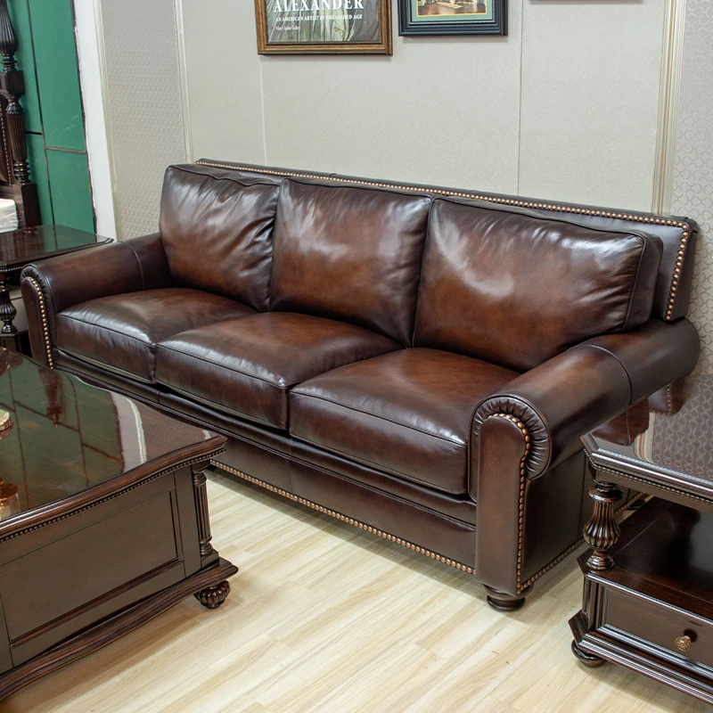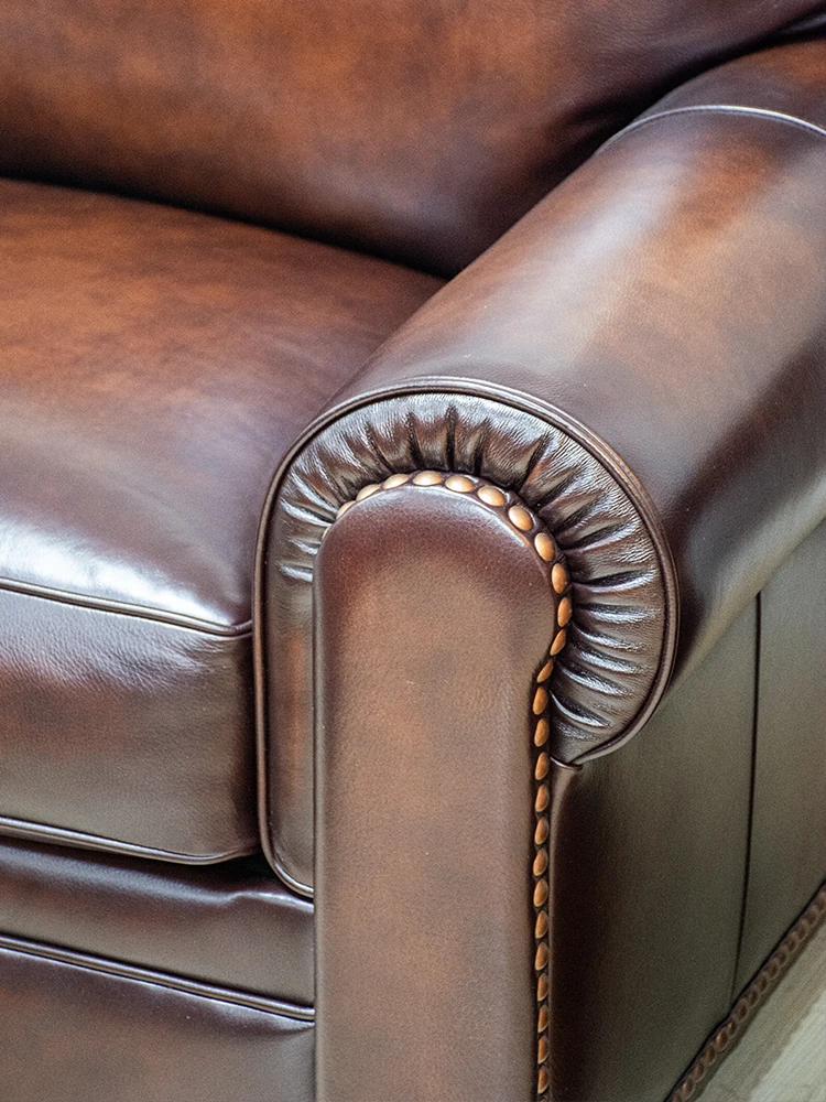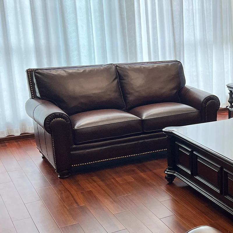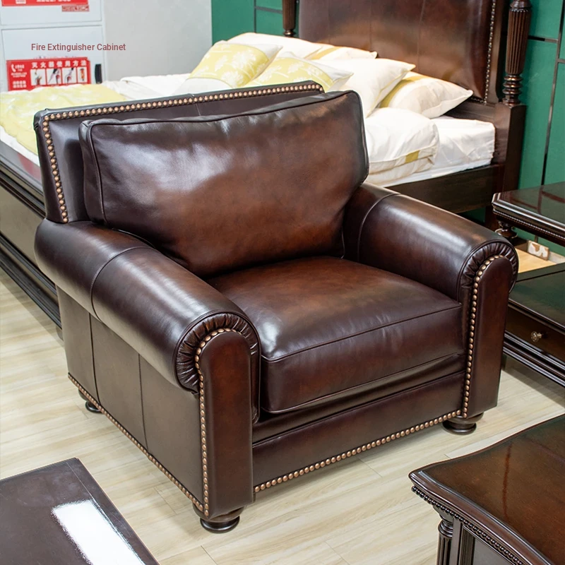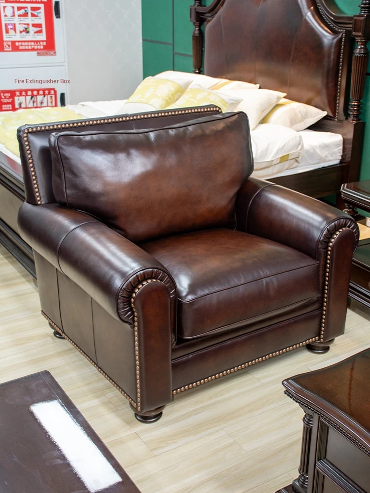 Vintage American Leather Sofa - High-Quality Top-Grain Cowhide, Single and Three-Seater Options for Living Room, Brown Retro Style, Perfect for Modern Homes